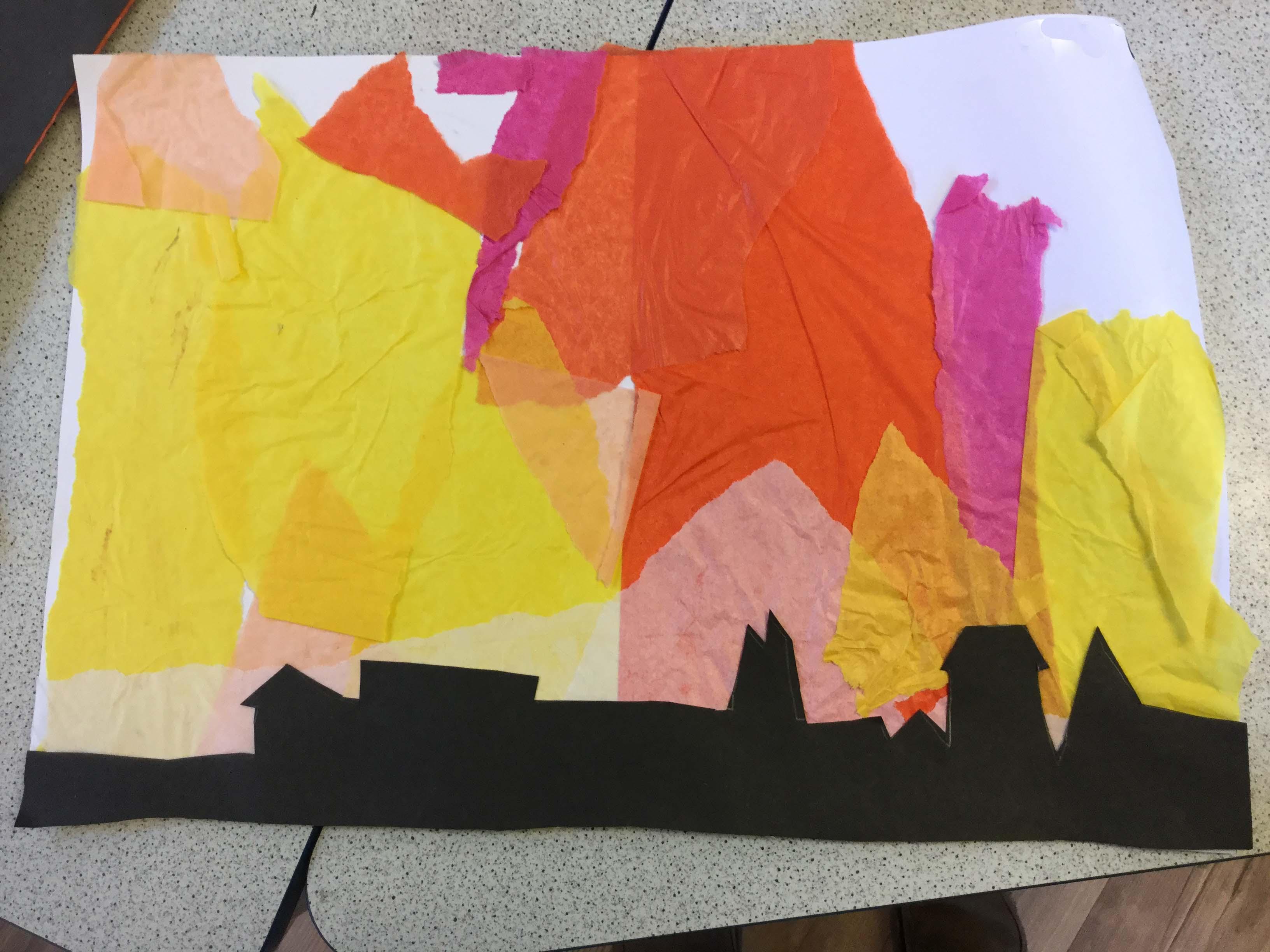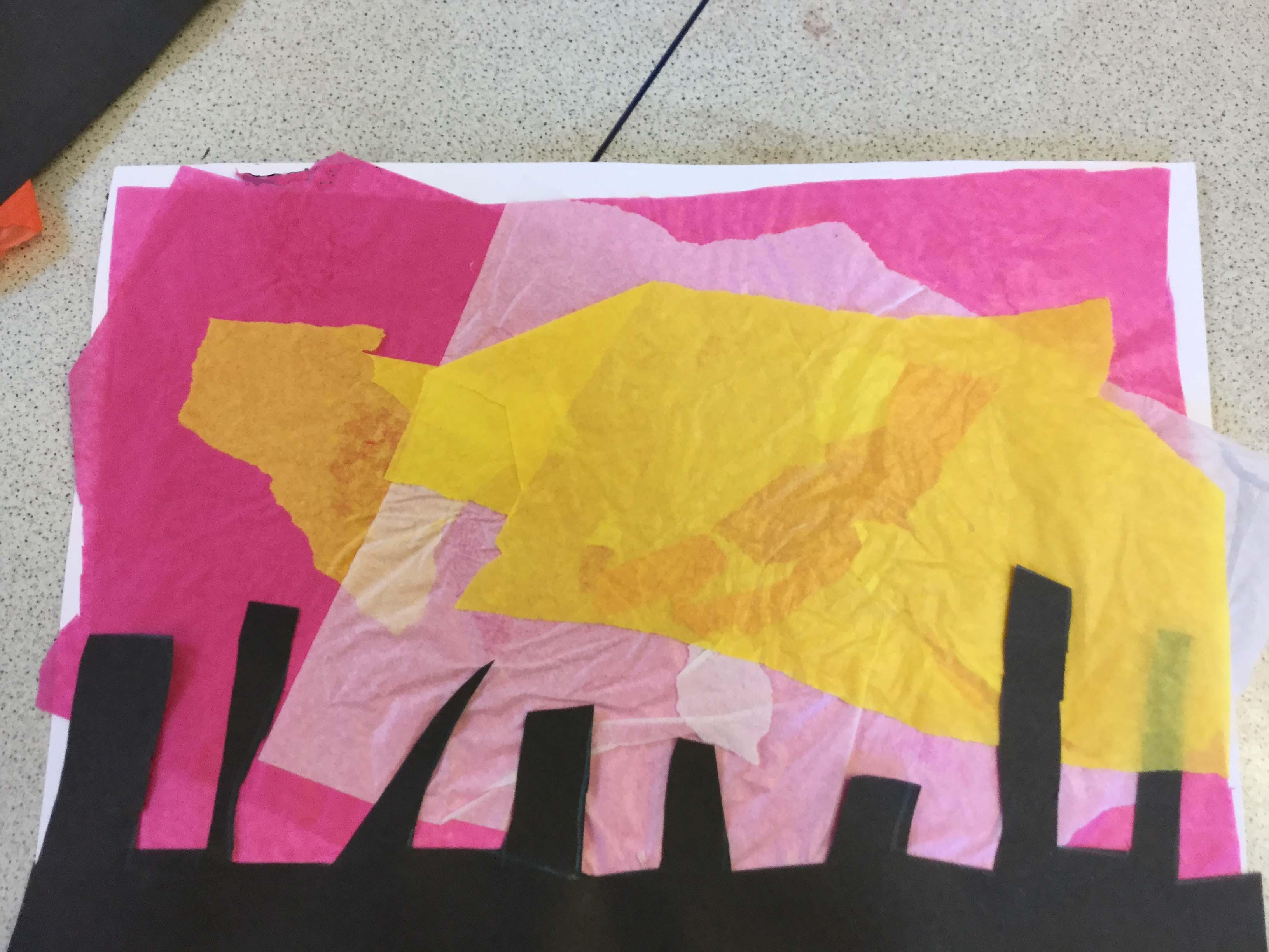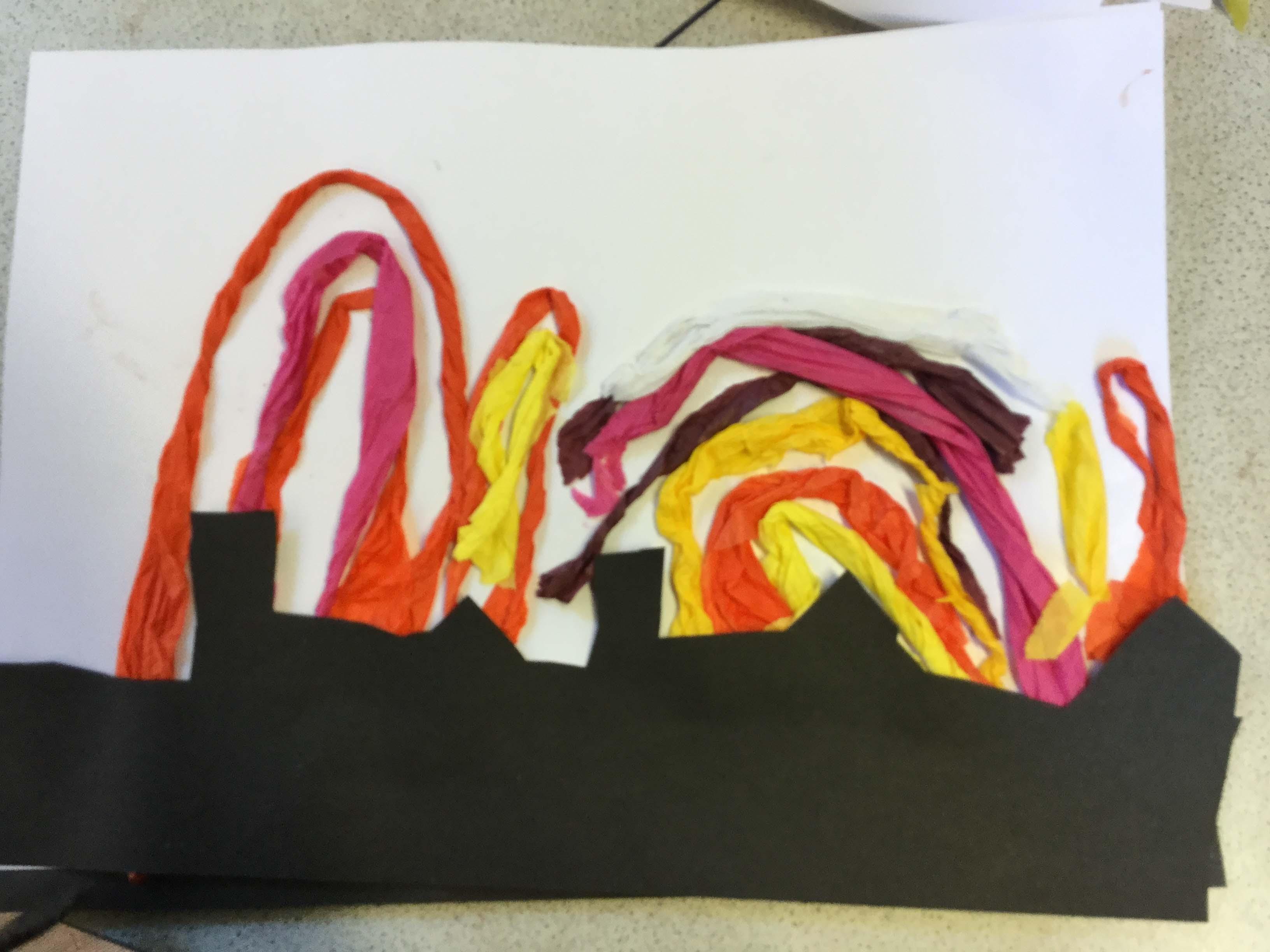 Here are the children's art works from last term , for one of the lessons we used black card and tissue paper and for the other one we used chalk pastels.