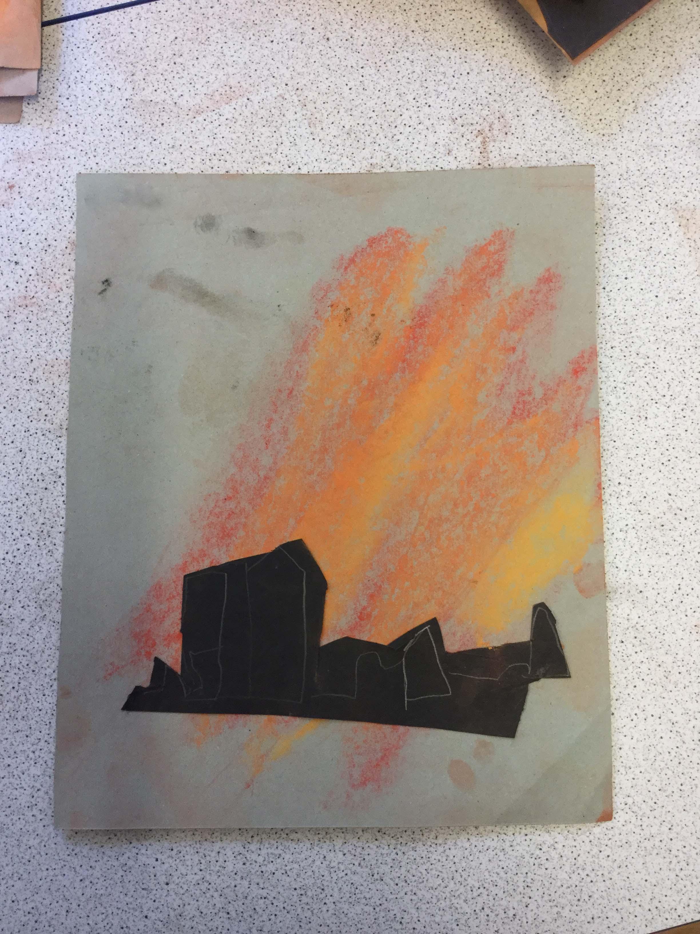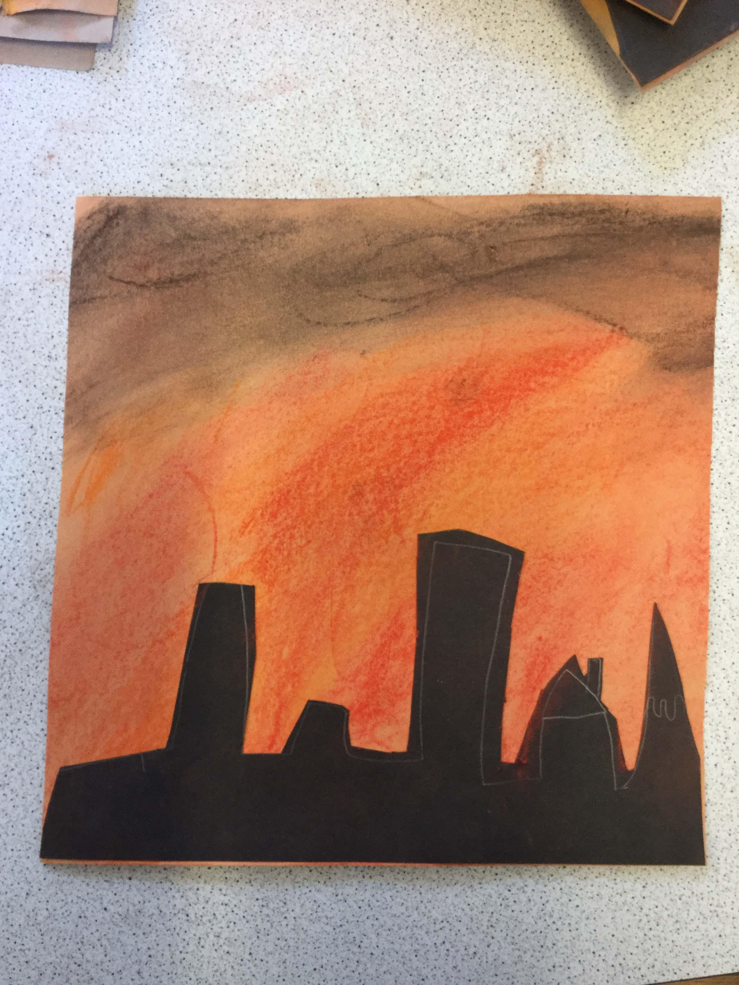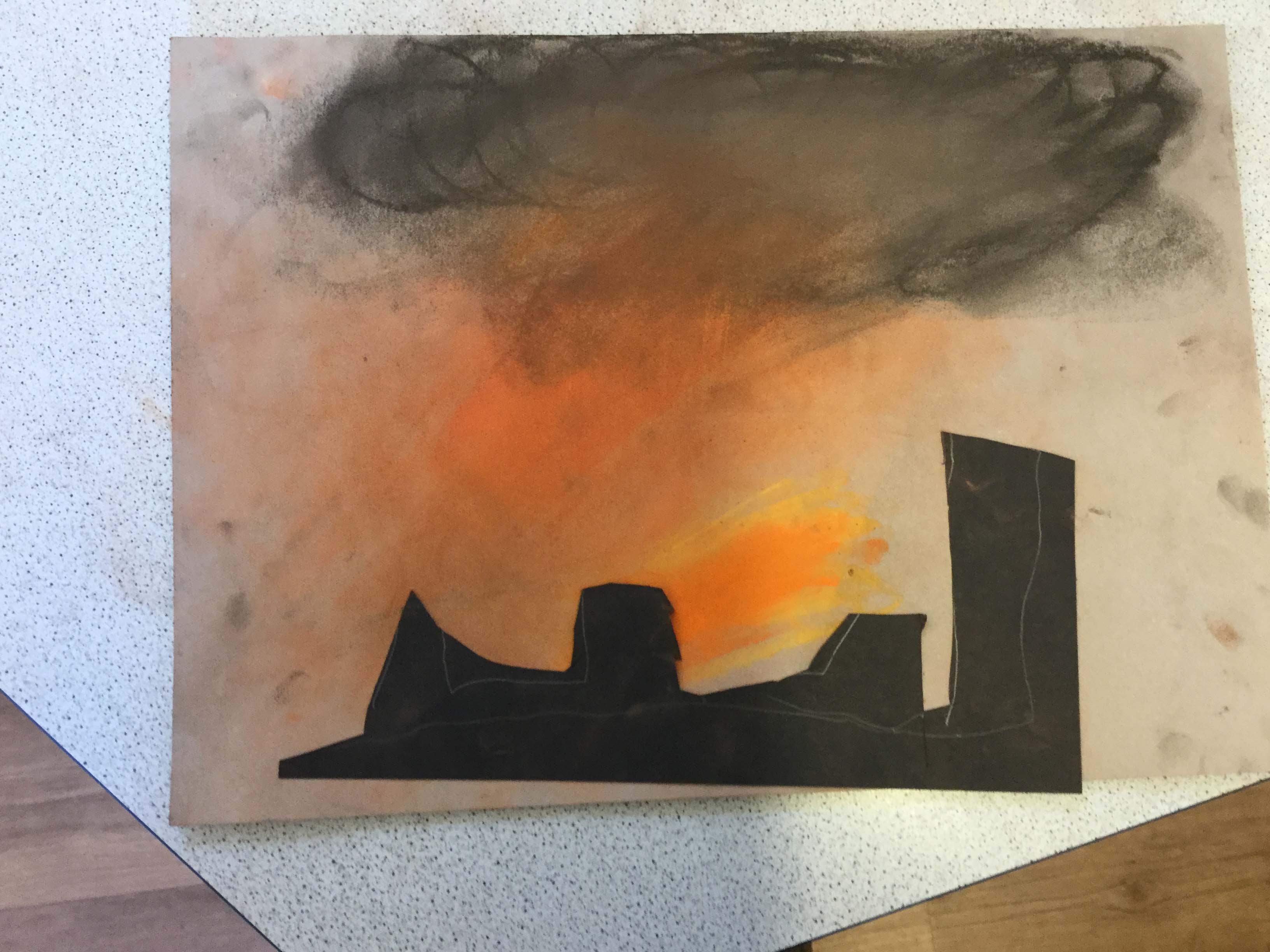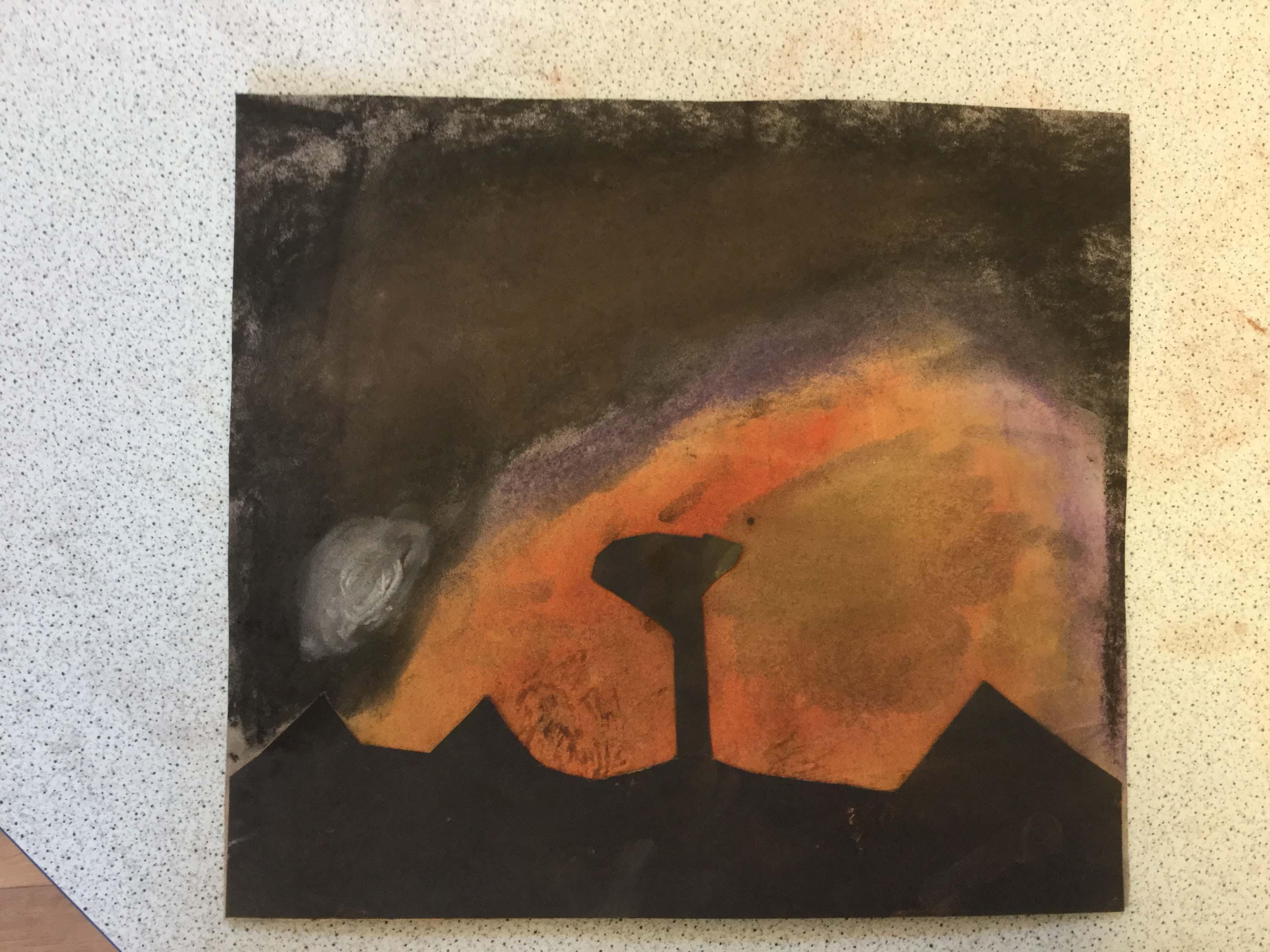 Here are the children's art works from last term , for one of the lessons we used black card and tissue paper and for the other one we used chalk pastels.