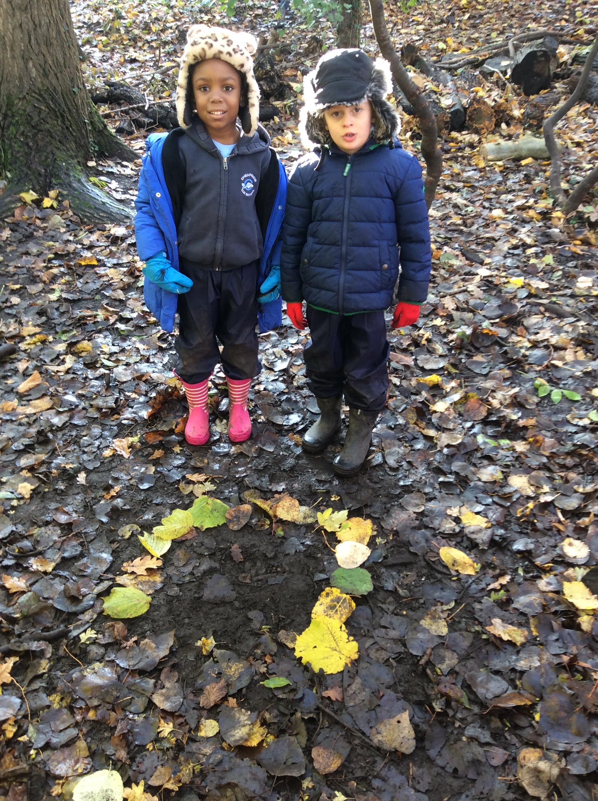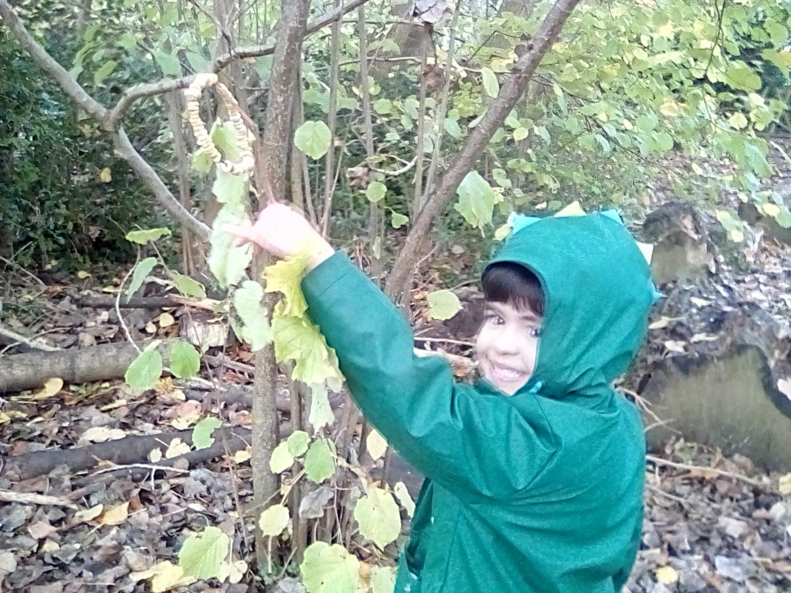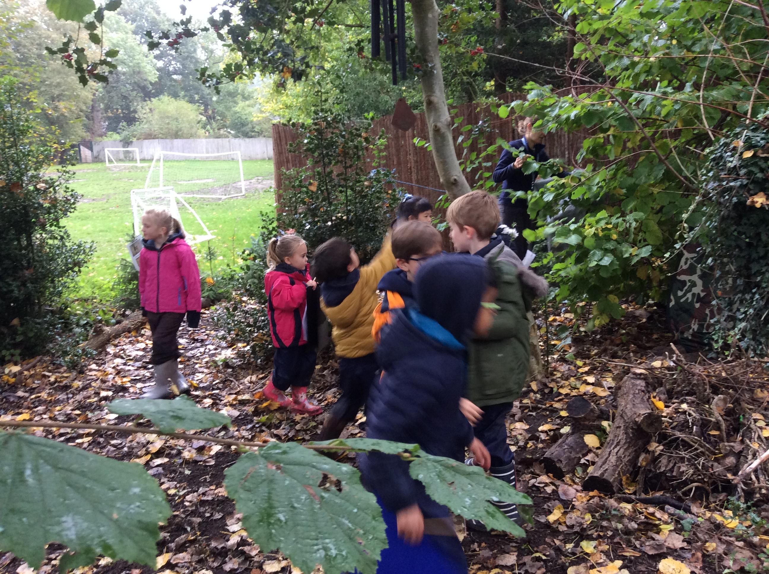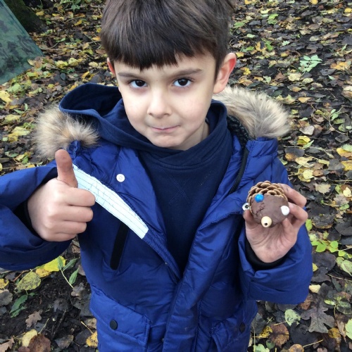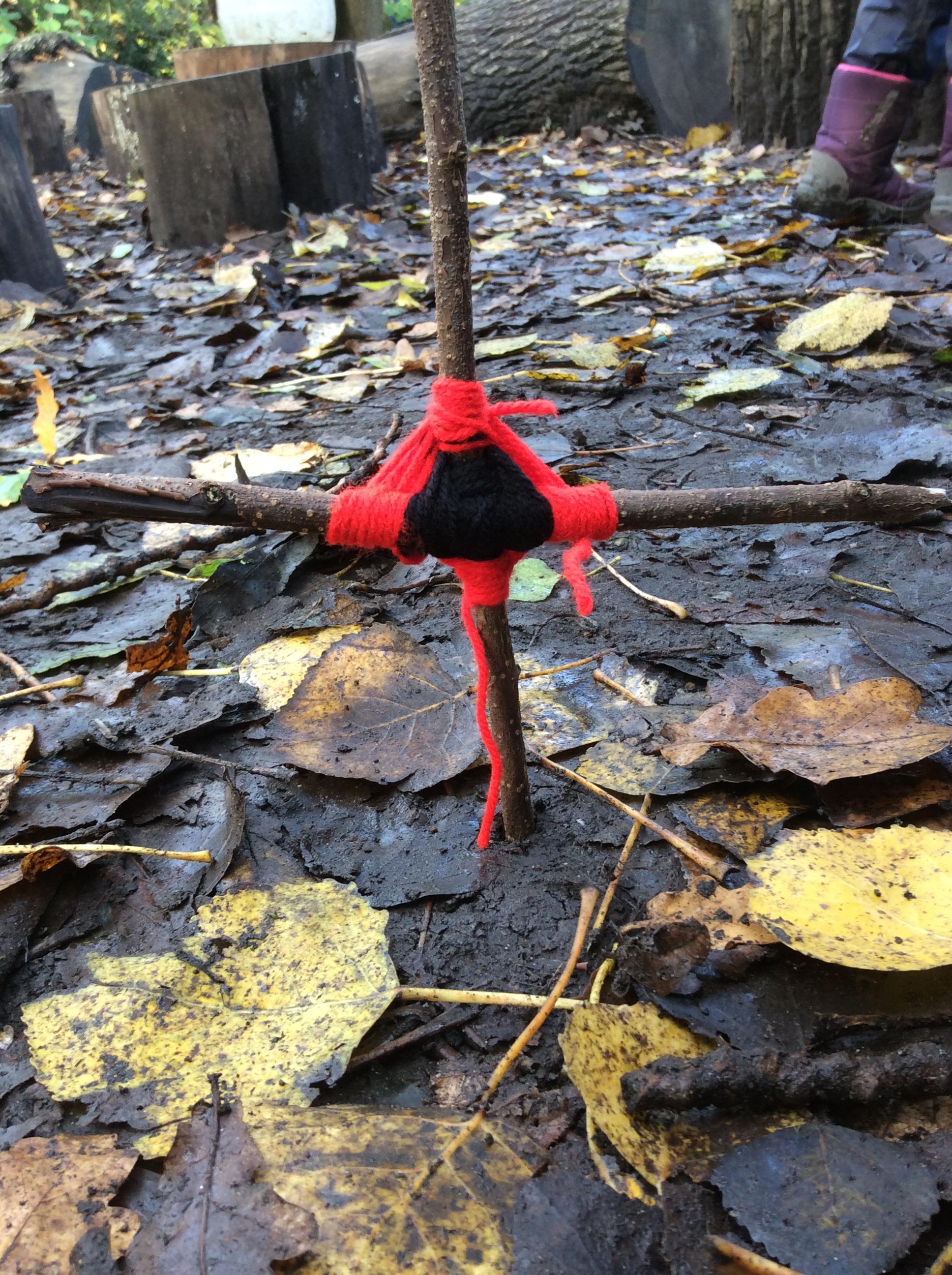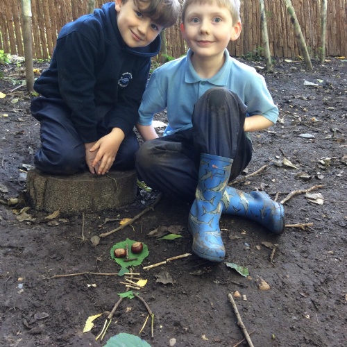 Forest school began on a wet note this week, with pouring rain for our session on Wednesday. Wrens Class went on a rainy leaf hunt collecting colourful leaves which they threaded onto string. We also ran into some puddles on our leaf hunt and so had to stop for some well deserved splashing! We used the leaves to create some beautiful leaf lanterns which the children took home. On Thursday Nightingales were focusing on the upcoming Armistice Day and we made poppies by joining together 2 sticks using a clove hitch and square lashing. We also talked about how WW1 was fought in trenches and recreated trench scenes from the Western Front. The session ended really poignantly by planting the poppies in 'no man's land' and hearing the poem In Flanders Field. Kestrels and Owls spent the afternoon carrying out a survey of the birds in the area. Both groups were delighted to spot Red Kites in flight ! Friday was conker craft day with Doves and Robins as they used conker drills to create fantastic conker creatures and some amazing conker caterpillars. Well done everyone!