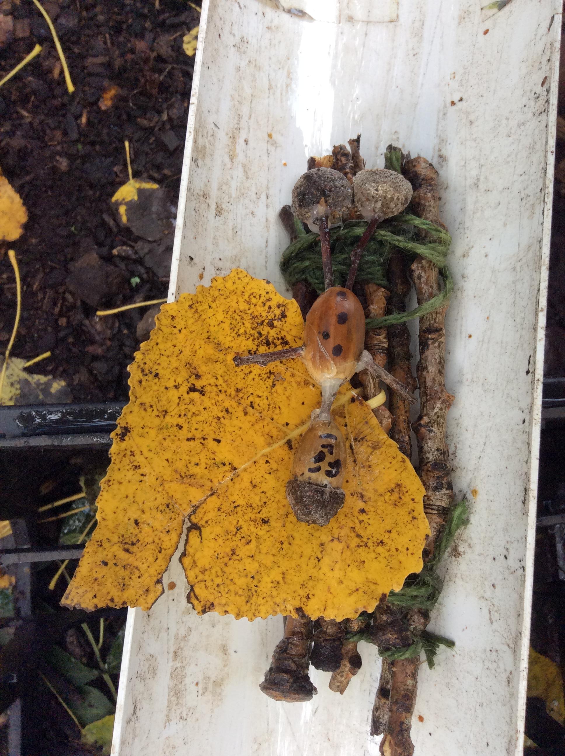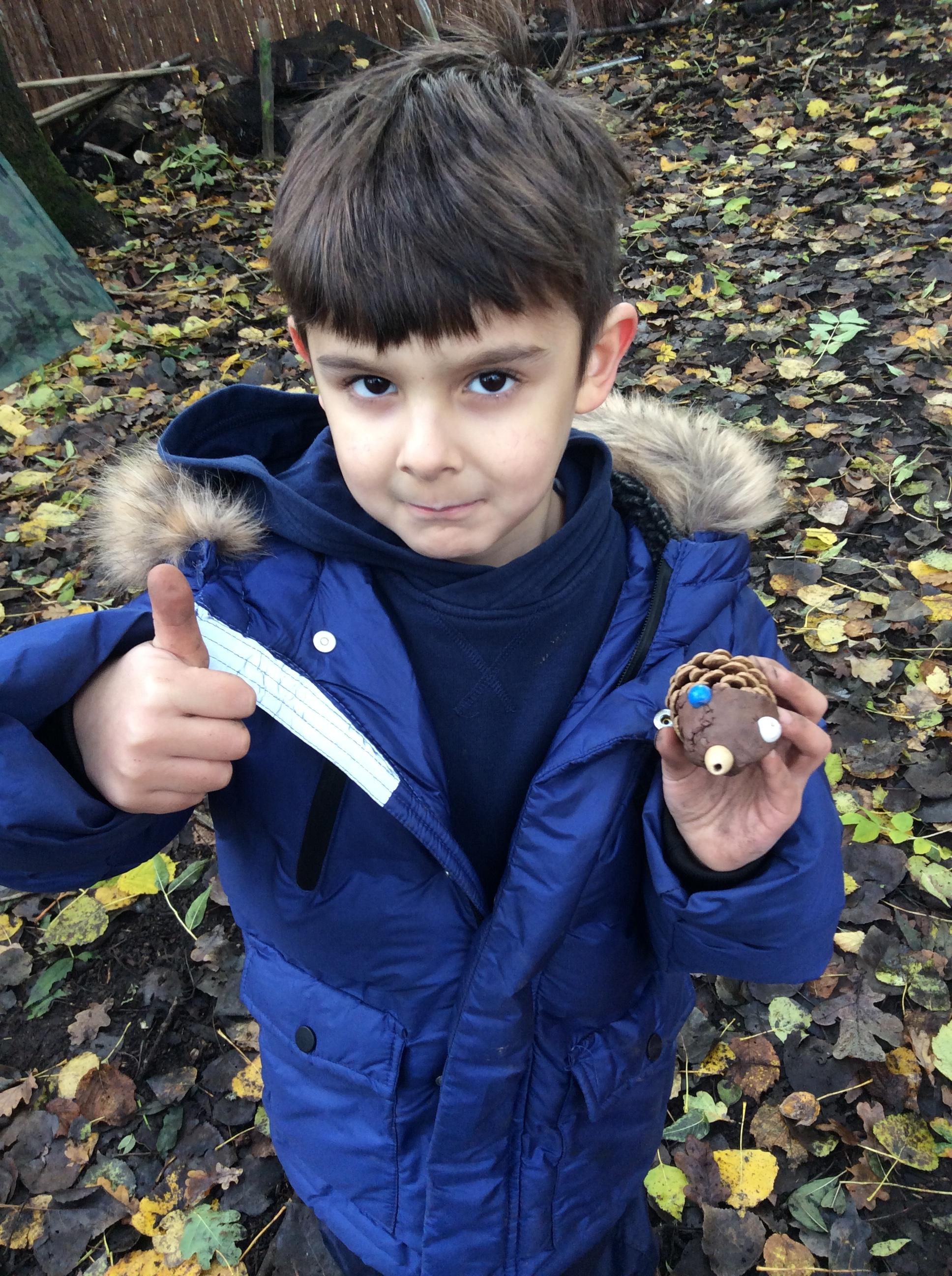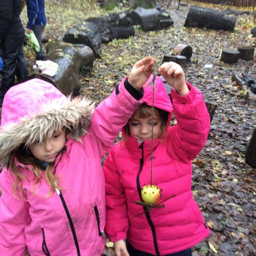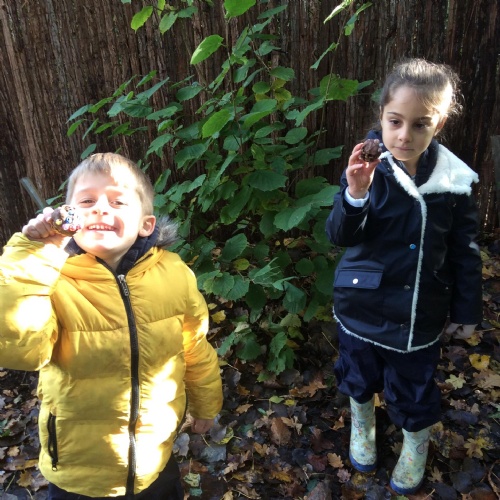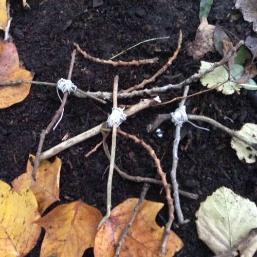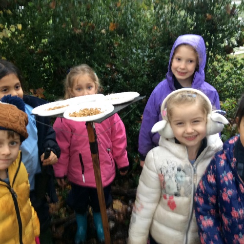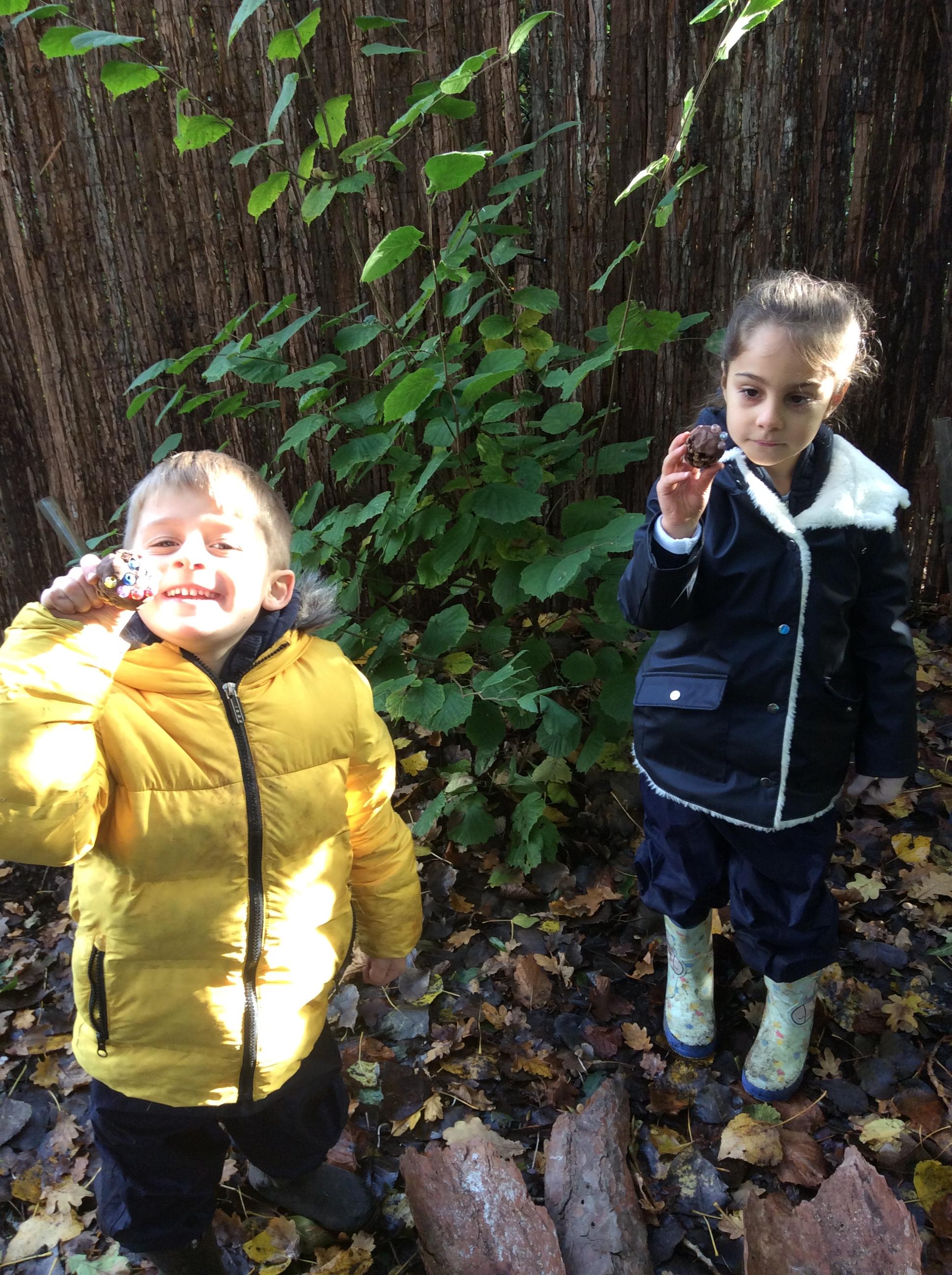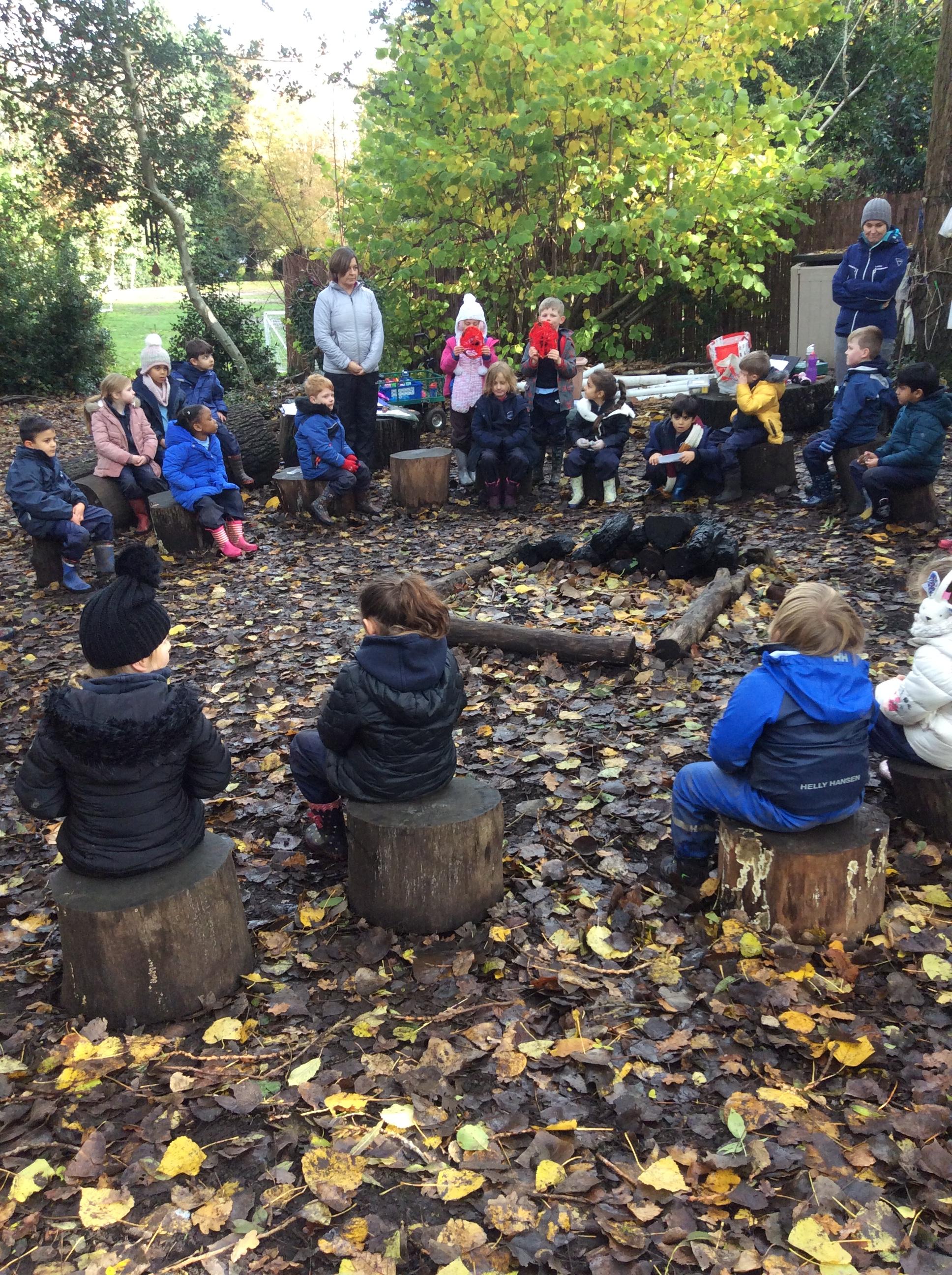 Forest school began on a wet note this week, with pouring rain for our session on Wednesday. Wrens Class went on a rainy leaf hunt collecting colourful leaves which they threaded onto string. We also ran into some puddles on our leaf hunt and so had to stop for some well deserved splashing! We used the leaves to create some beautiful leaf lanterns which the children took home. On Thursday Nightingales were focusing on the upcoming Armistice Day and we made poppies by joining together 2 sticks using a clove hitch and square lashing. We also talked about how WW1 was fought in trenches and recreated trench scenes from the Western Front. The session ended really poignantly by planting the poppies in 'no man's land' and hearing the poem In Flanders Field. Kestrels and Owls spent the afternoon carrying out a survey of the birds in the area. Both groups were delighted to spot Red Kites in flight ! Friday was conker craft day with Doves and Robins as they used conker drills to create fantastic conker creatures and some amazing conker caterpillars. Well done everyone!
