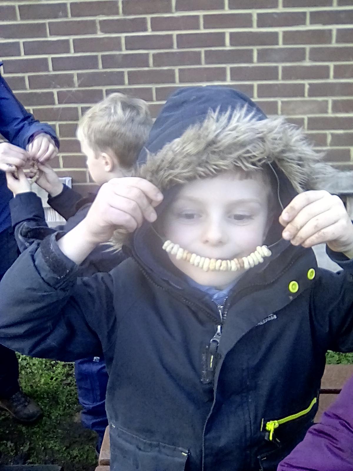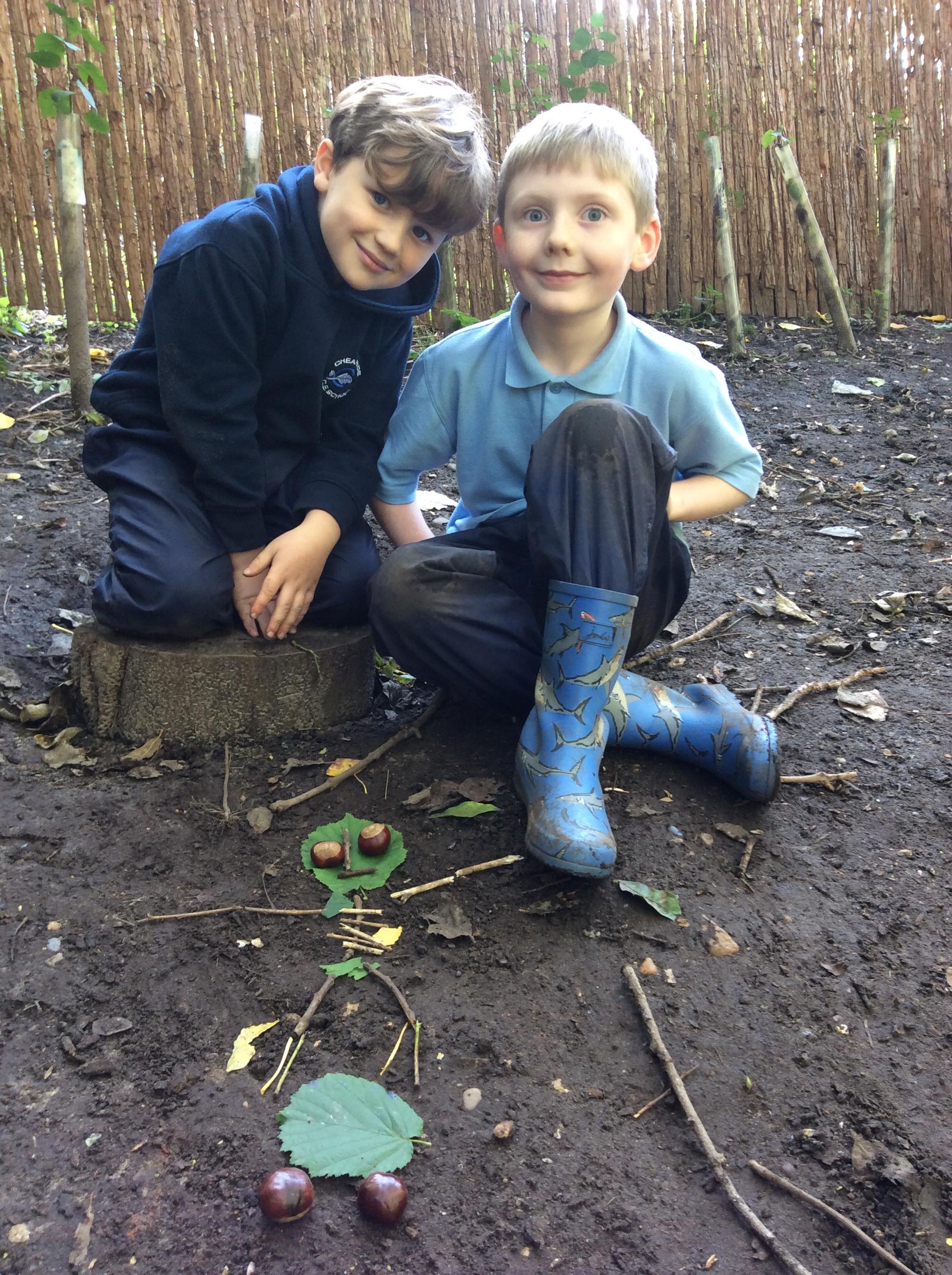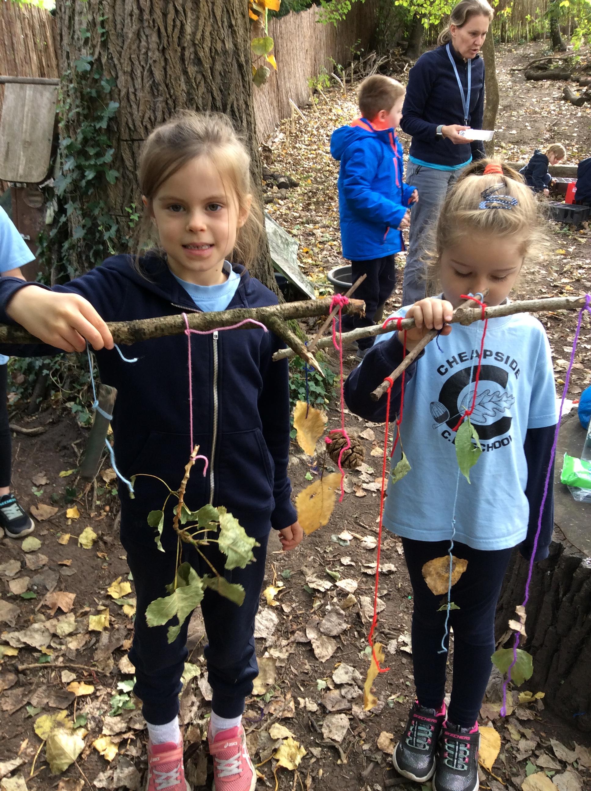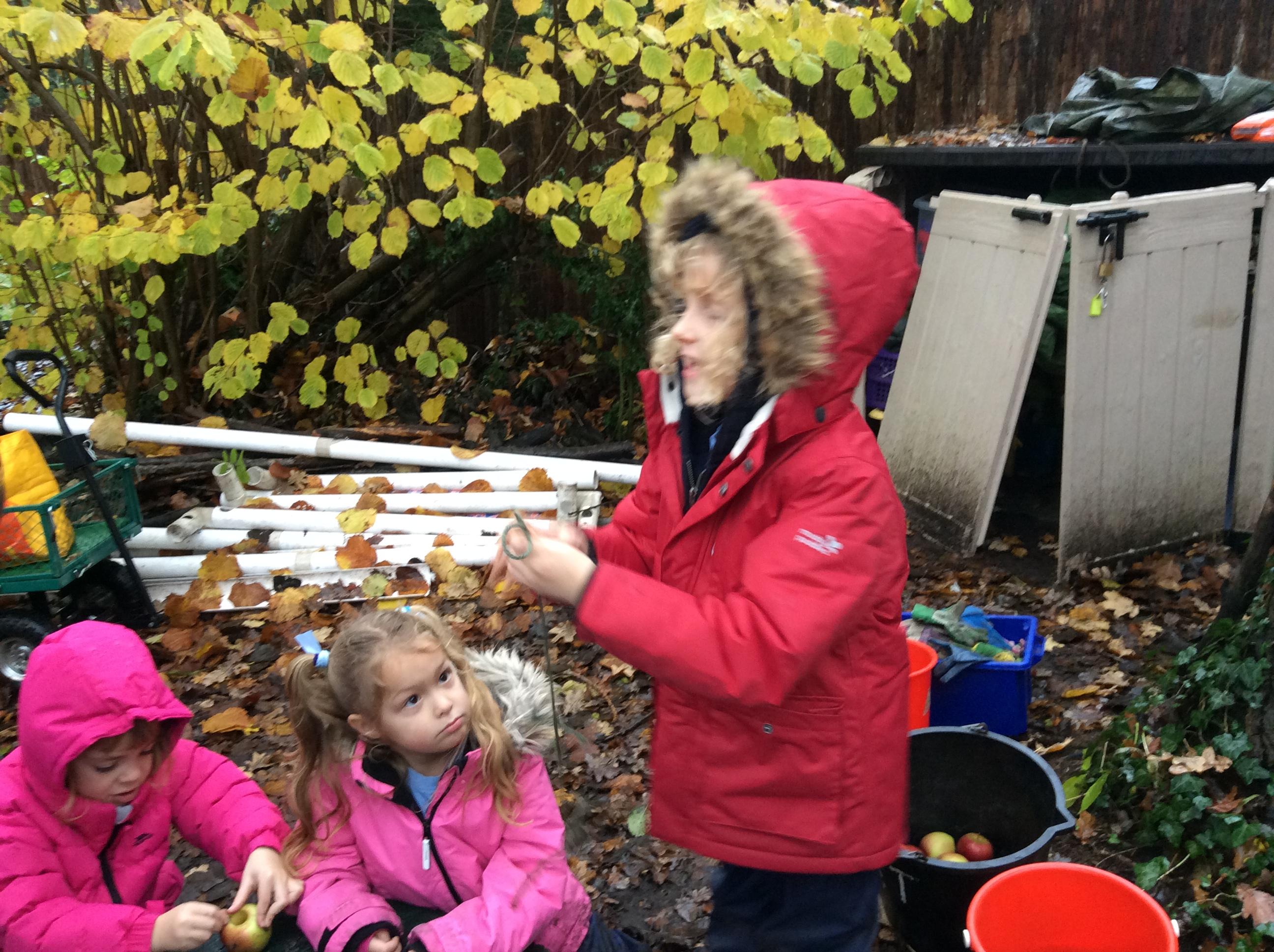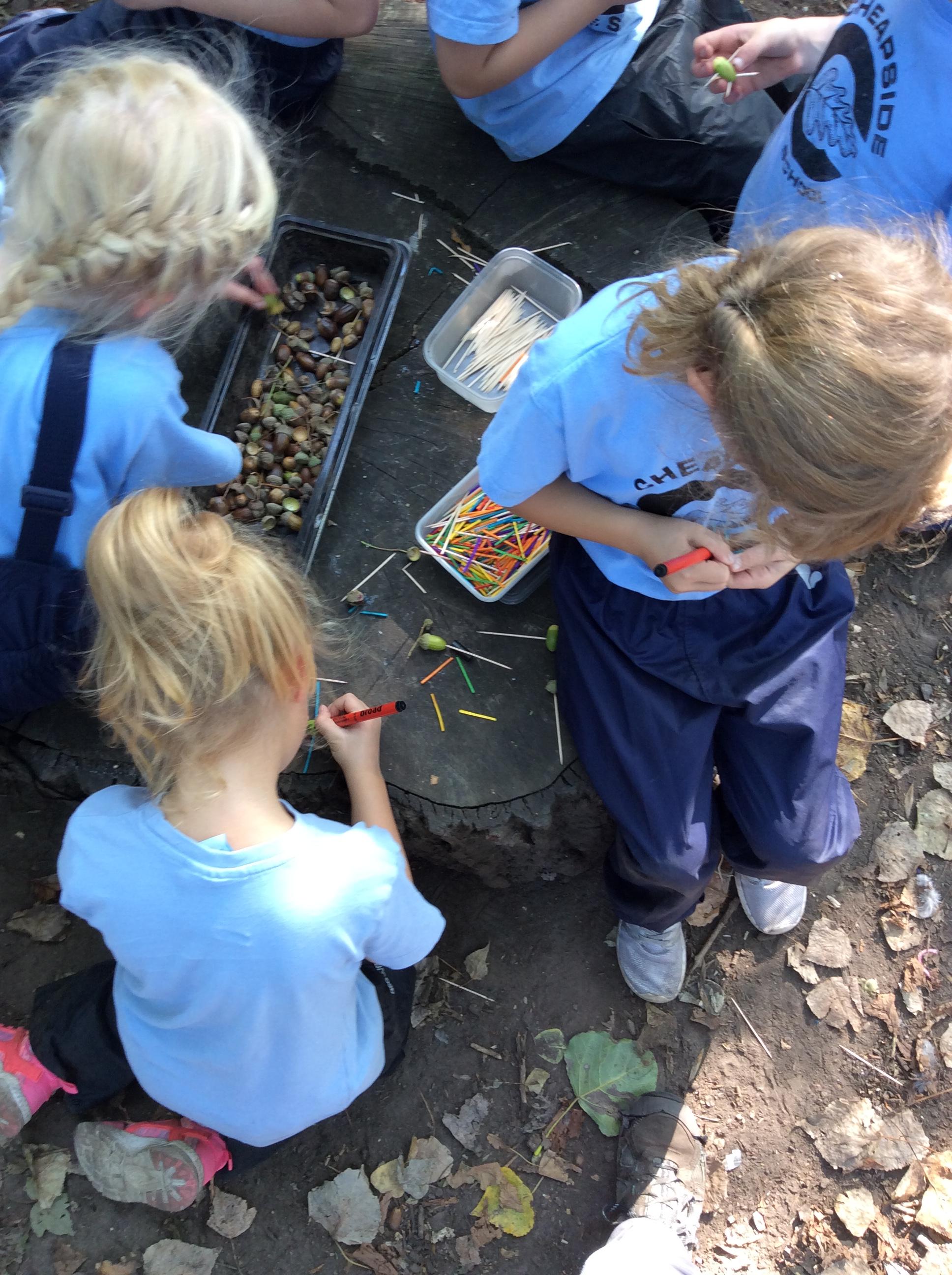 Forest school began on a wet note this week, with pouring rain for our session on Wednesday. Wrens Class went on a rainy leaf hunt collecting colourful leaves which they threaded onto string. We also ran into some puddles on our leaf hunt and so had to stop for some well deserved splashing! We used the leaves to create some beautiful leaf lanterns which the children took home. On Thursday Nightingales were focusing on the upcoming Armistice Day and we made poppies by joining together 2 sticks using a clove hitch and square lashing. We also talked about how WW1 was fought in trenches and recreated trench scenes from the Western Front. The session ended really poignantly by planting the poppies in 'no man's land' and hearing the poem In Flanders Field. Kestrels and Owls spent the afternoon carrying out a survey of the birds in the area. Both groups were delighted to spot Red Kites in flight ! Friday was conker craft day with Doves and Robins as they used conker drills to create fantastic conker creatures and some amazing conker caterpillars. Well done everyone!