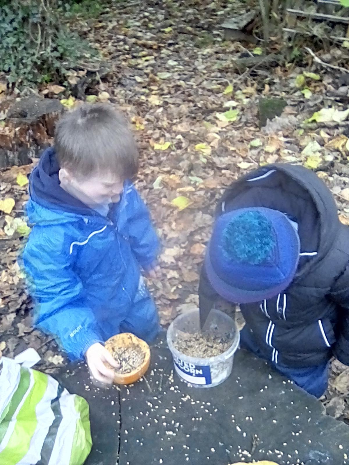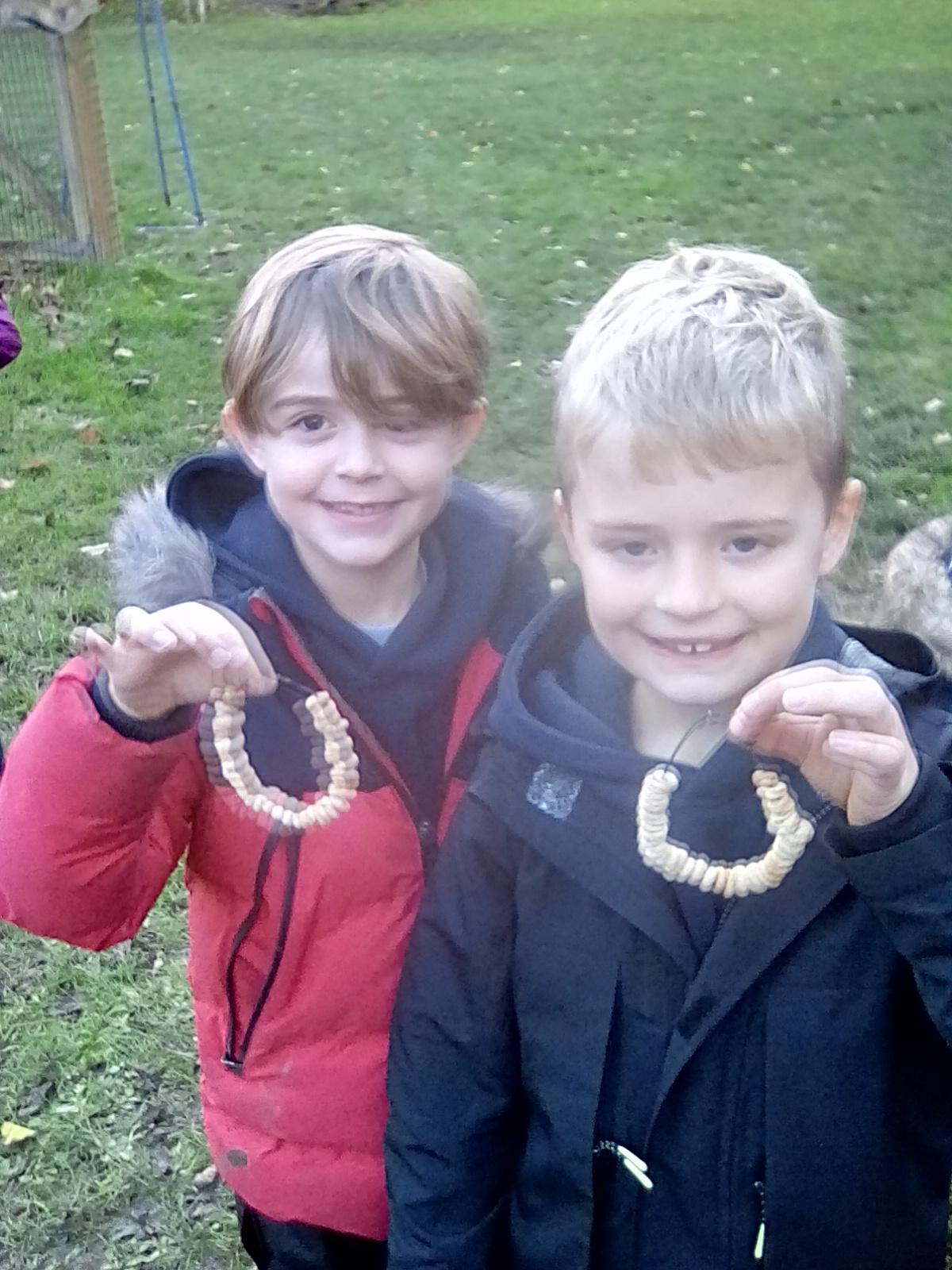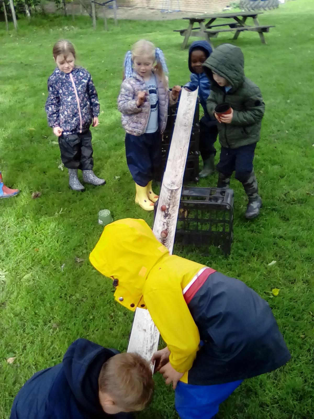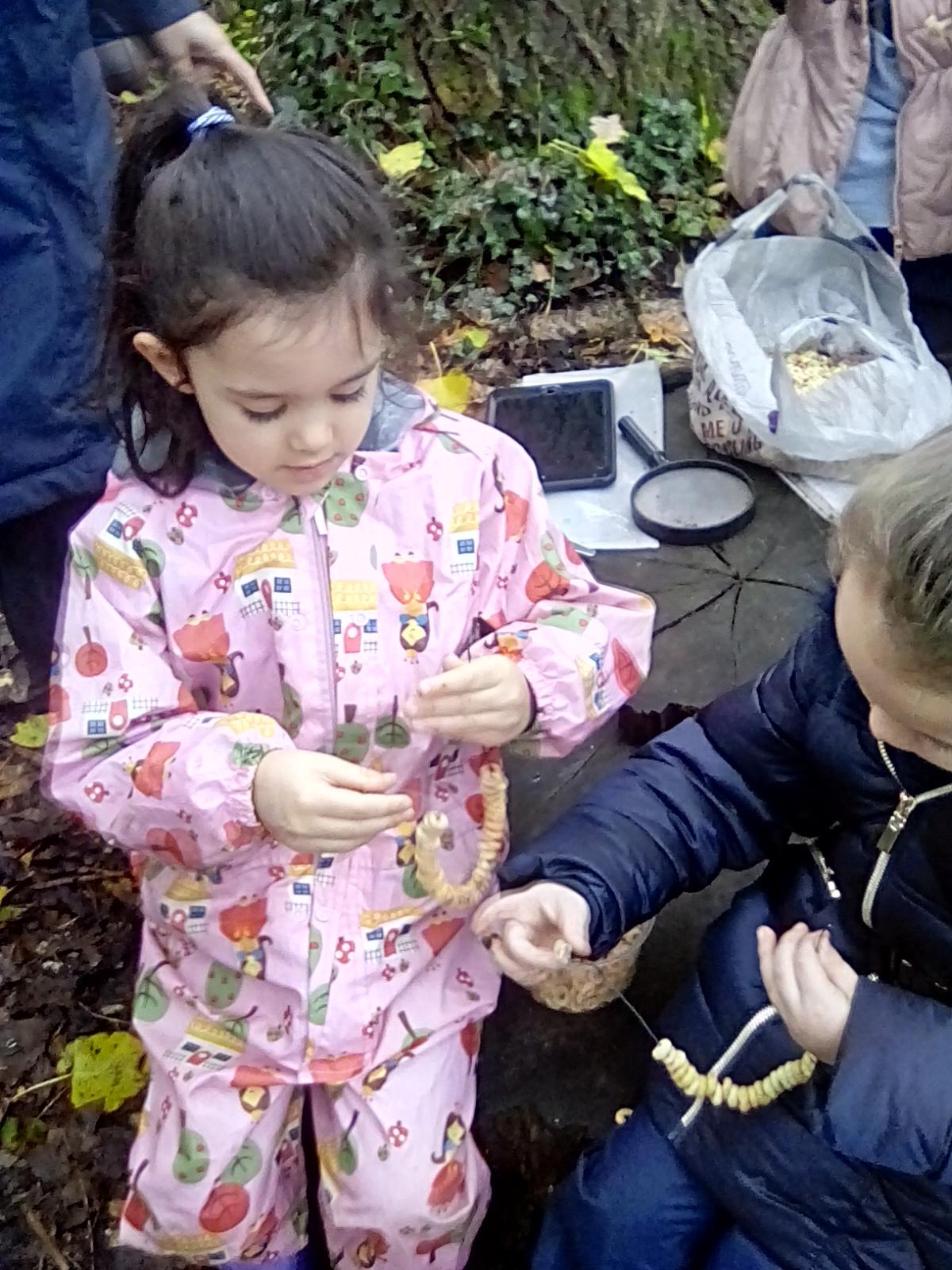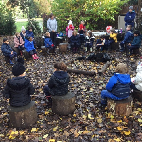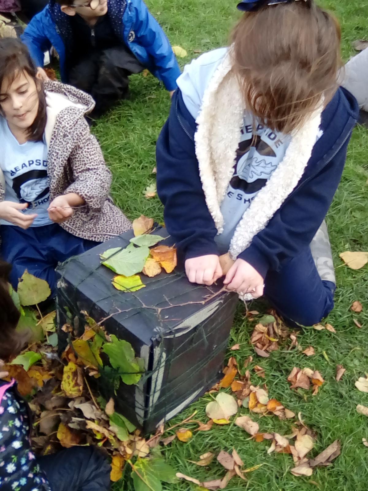 Forest school began on a wet note this week, with pouring rain for our session on Wednesday. Wrens Class went on a rainy leaf hunt collecting colourful leaves which they threaded onto string. We also ran into some puddles on our leaf hunt and so had to stop for some well deserved splashing! We used the leaves to create some beautiful leaf lanterns which the children took home. On Thursday Nightingales were focusing on the upcoming Armistice Day and we made poppies by joining together 2 sticks using a clove hitch and square lashing. We also talked about how WW1 was fought in trenches and recreated trench scenes from the Western Front. The session ended really poignantly by planting the poppies in 'no man's land' and hearing the poem In Flanders Field. Kestrels and Owls spent the afternoon carrying out a survey of the birds in the area. Both groups were delighted to spot Red Kites in flight ! Friday was conker craft day with Doves and Robins as they used conker drills to create fantastic conker creatures and some amazing conker caterpillars. Well done everyone!