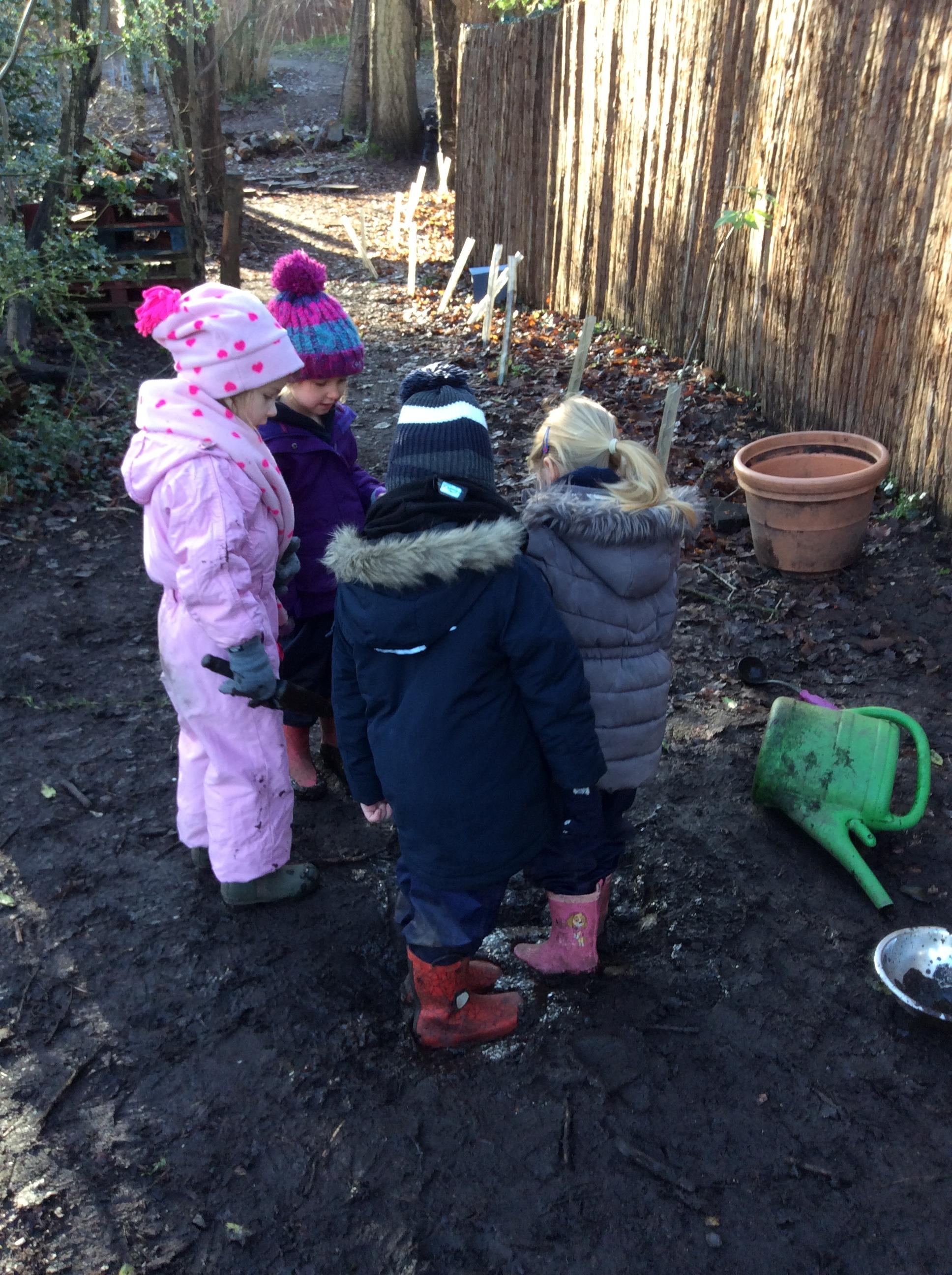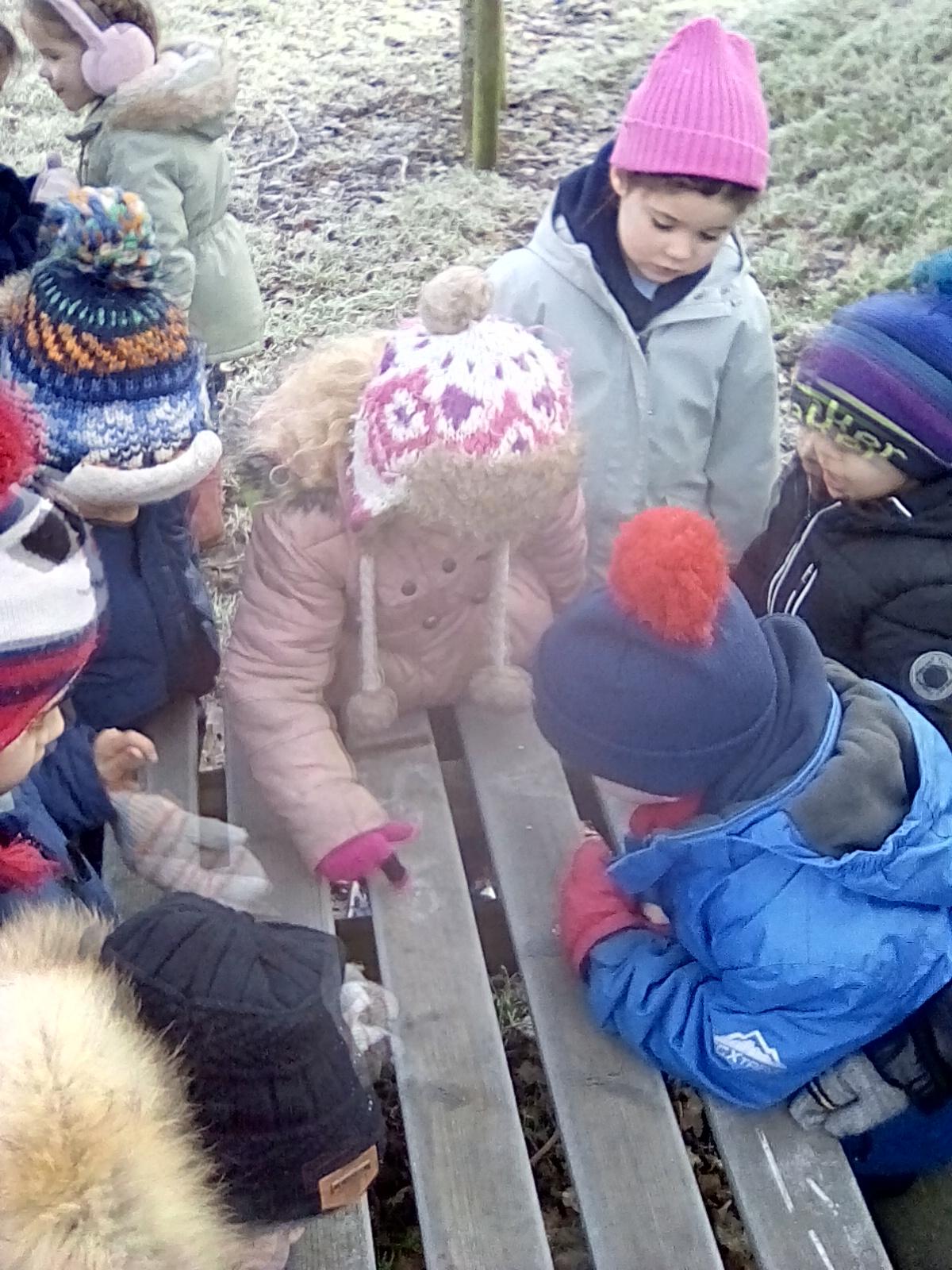 Children then made their own ice sculptures using some of the natural things found in the frost (photos to follow).
