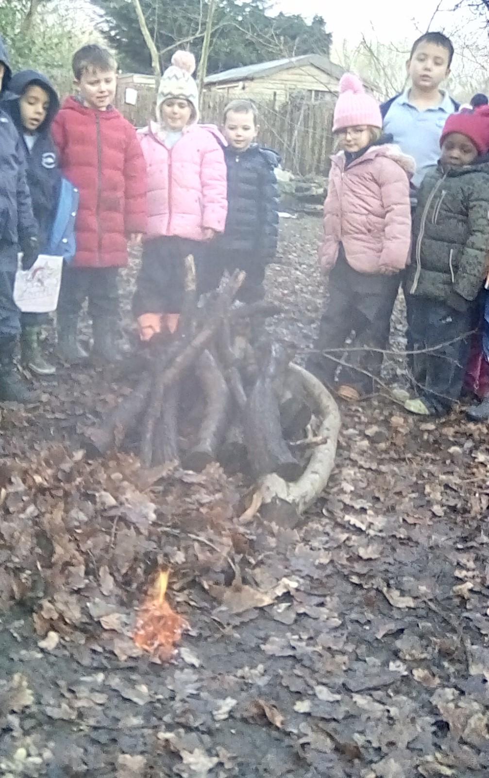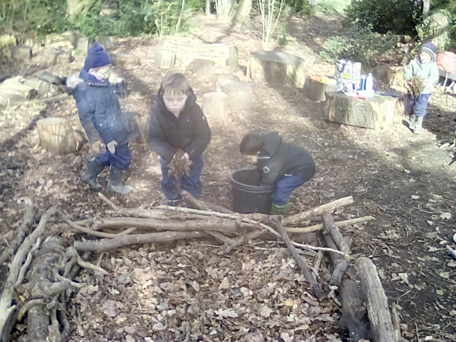 This week both Wrens and Robins had a dragon themed session! We begun by sharing the story 'Dragon Stew' and then went off to find any signs of dragons in our Forest. Surprise surprise we found footprints, claw marks, tail marks and baby dragons! Both Classes had a go at doing some counting and coming up with their own methods of recording how many of each baby dinosaur was found. They then made some dragon lairs for the baby dragons. Next week the plan is to dig traps to see if we catch any dragons! Kingfishers had a great session making catapults which we tested using eggs!! The focus was on team work and listening and respecting the views of the team members. Next week the tasks will see children taking on the roles of team leaders should they wish to do so. Doves have been reading the story 'The Smartest Giant in Town' and in the story he gave away his shirt for a sail for a boat for a goat. We decided to make the boat and attach a piece for shirt for the sail. The designs were very creative and next week we plan to test them out on the pond. Thank you to all those Parents who sent in warmer clothes this week, it made a real difference and it meant the children were able to engage and fully enjoy the sessions. This week looks even colder so we will be having a fire in the coldest sessions and please remember to send in those layers and warm socks !!!