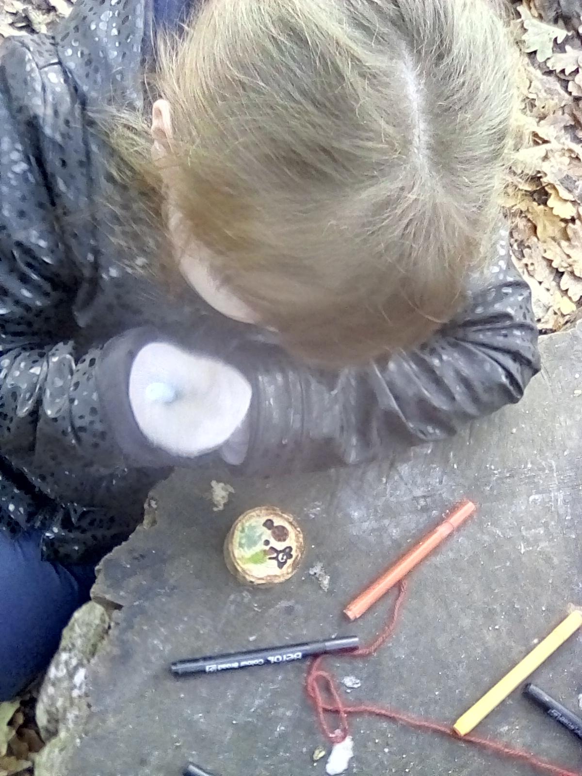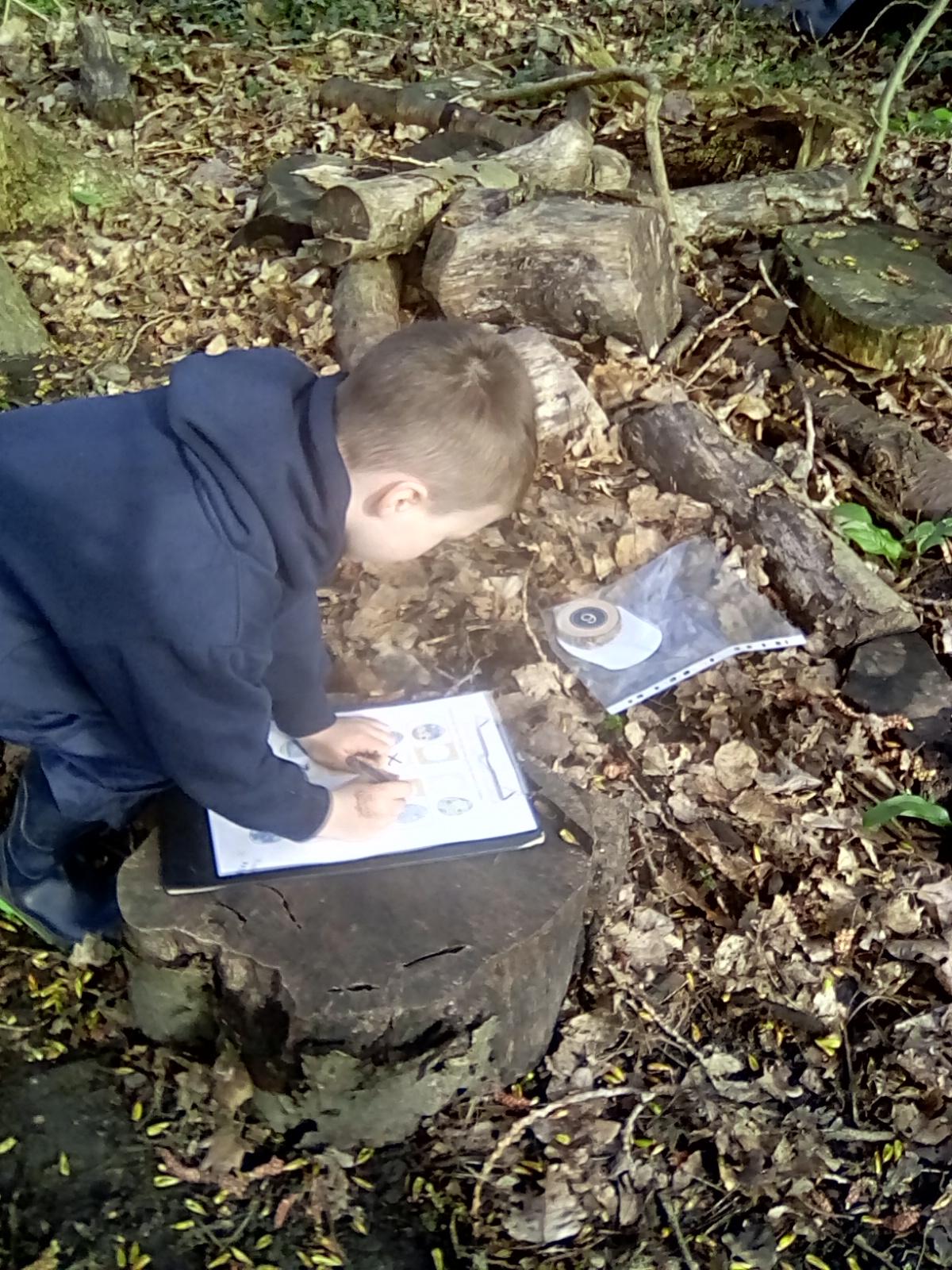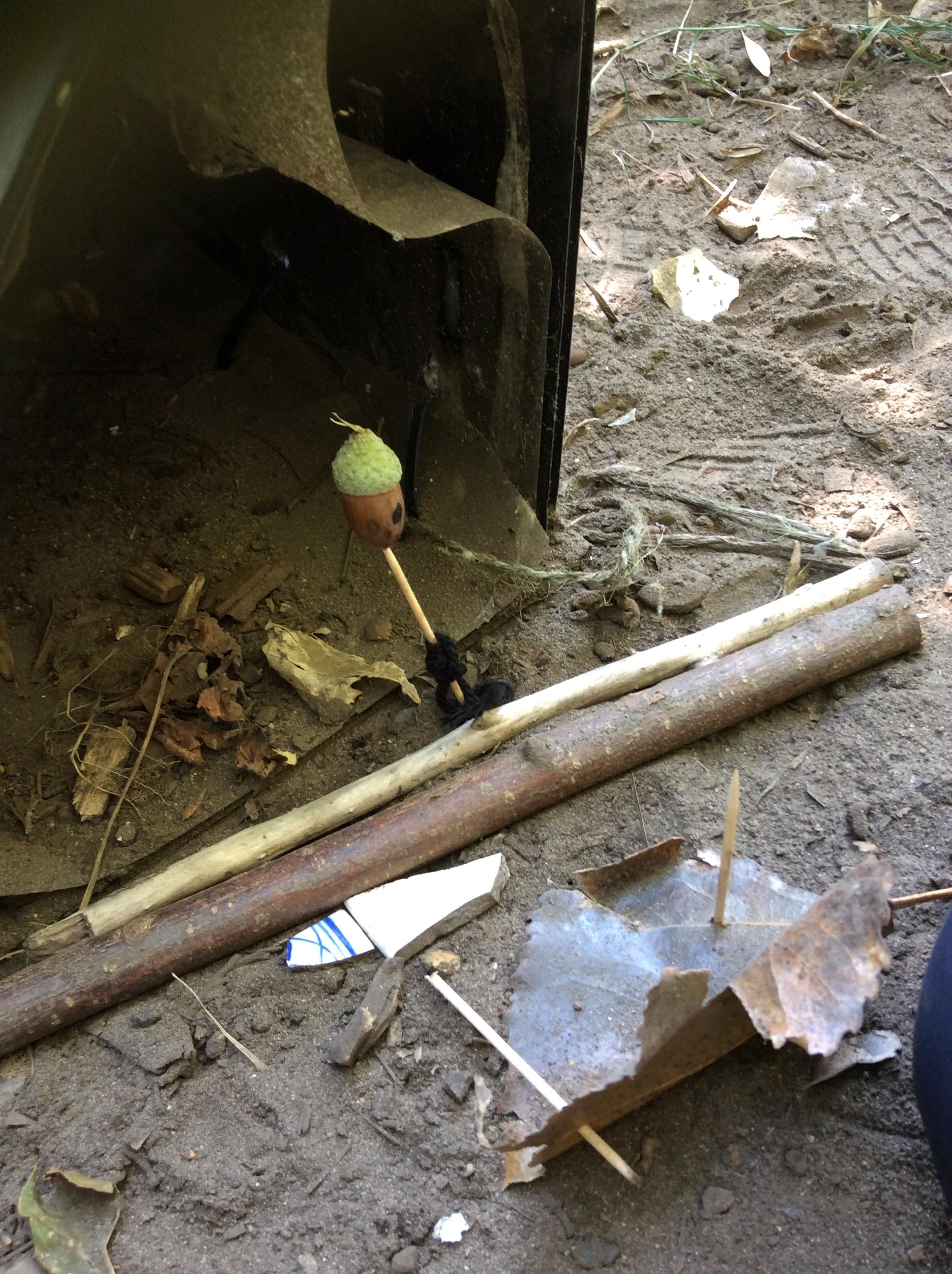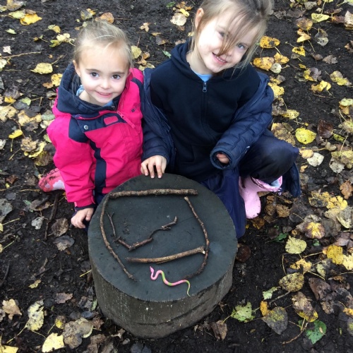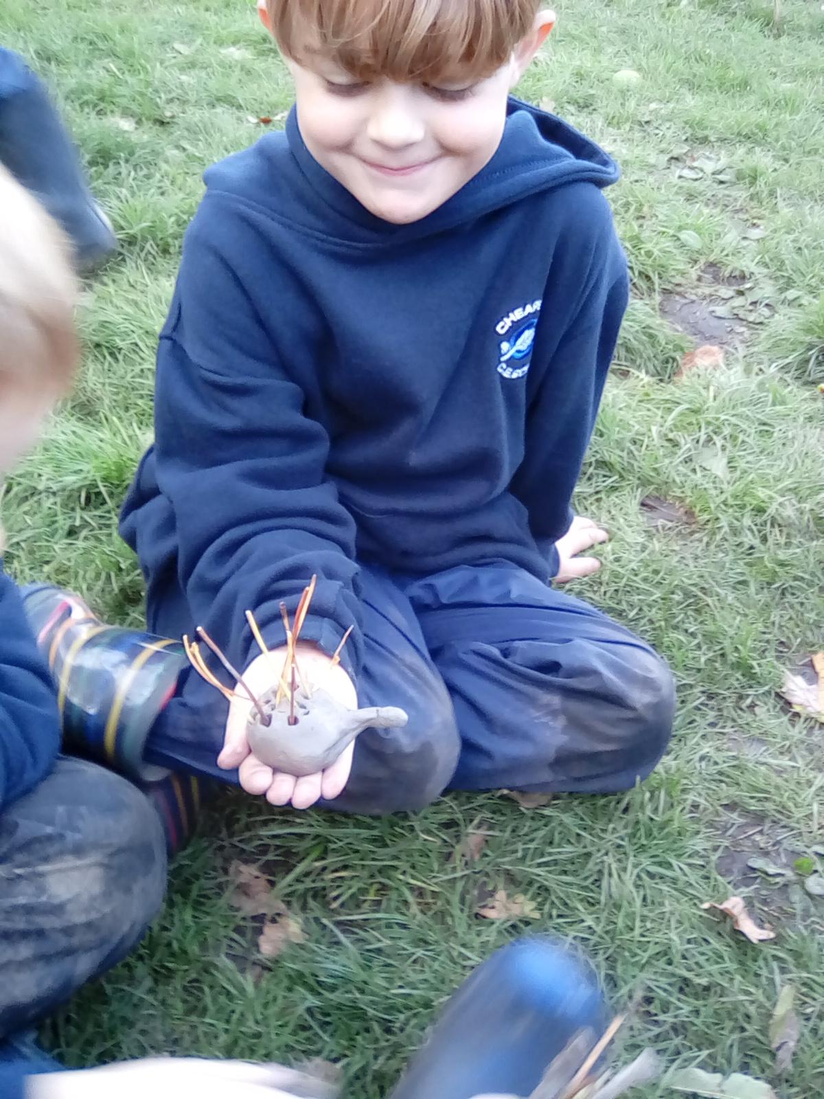Today was Roald Dahl day in school, so to celebrate we had a Roald Dahl themed session. Kestrels and Kingfishers read an extract of Billy and the Minpins and then got their creative juices following by creating The Gruncher from the book and some Minpins. The children had to work in groups where the focus was on listening and responding appropriately to others. They were also using spoken language to develop understanding through imagining and exploring ideas. During the session we talked about team work, negotiating and compromise. The children produced some creative pieces and of course enjoyed the campfire and marshmallows. Below is a selection of some of the Grunchers and Minpins! Some of the children got very excited by the discovery of some larva under a log. We spent ages considering what he could be, some children even took the photo home for some further research. We decided it was Stag Beetle Larva but see what you think !