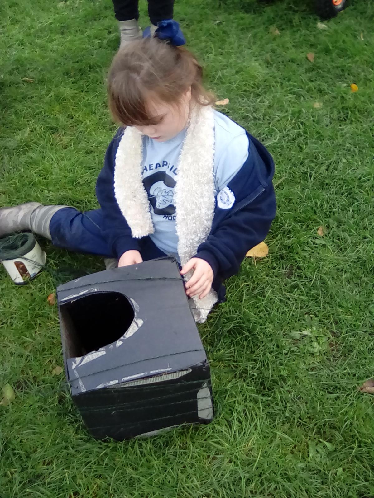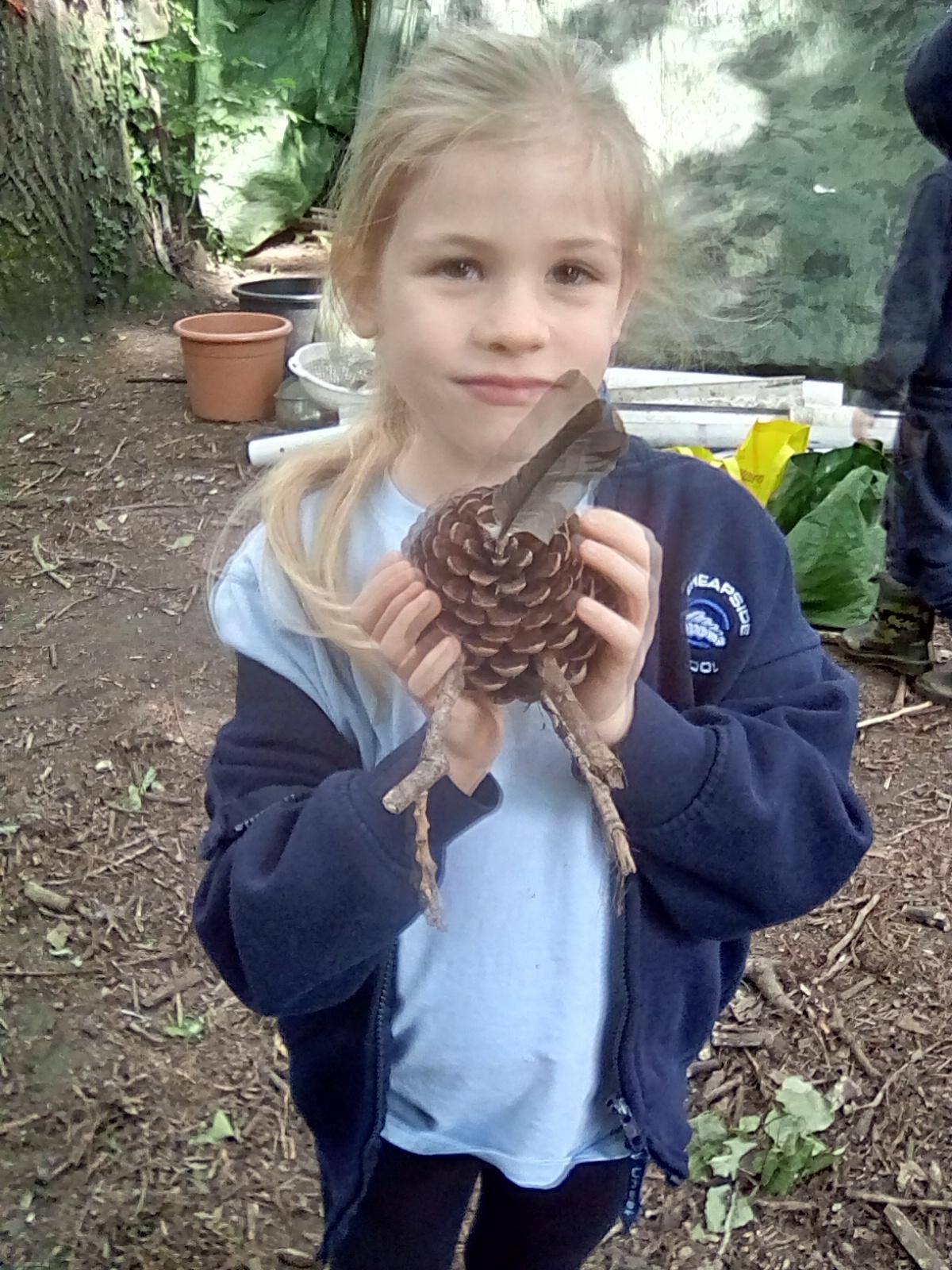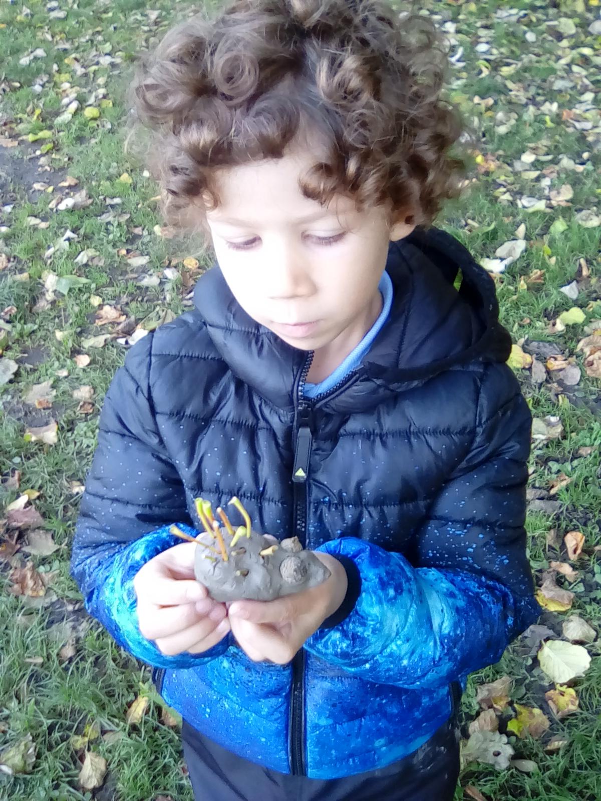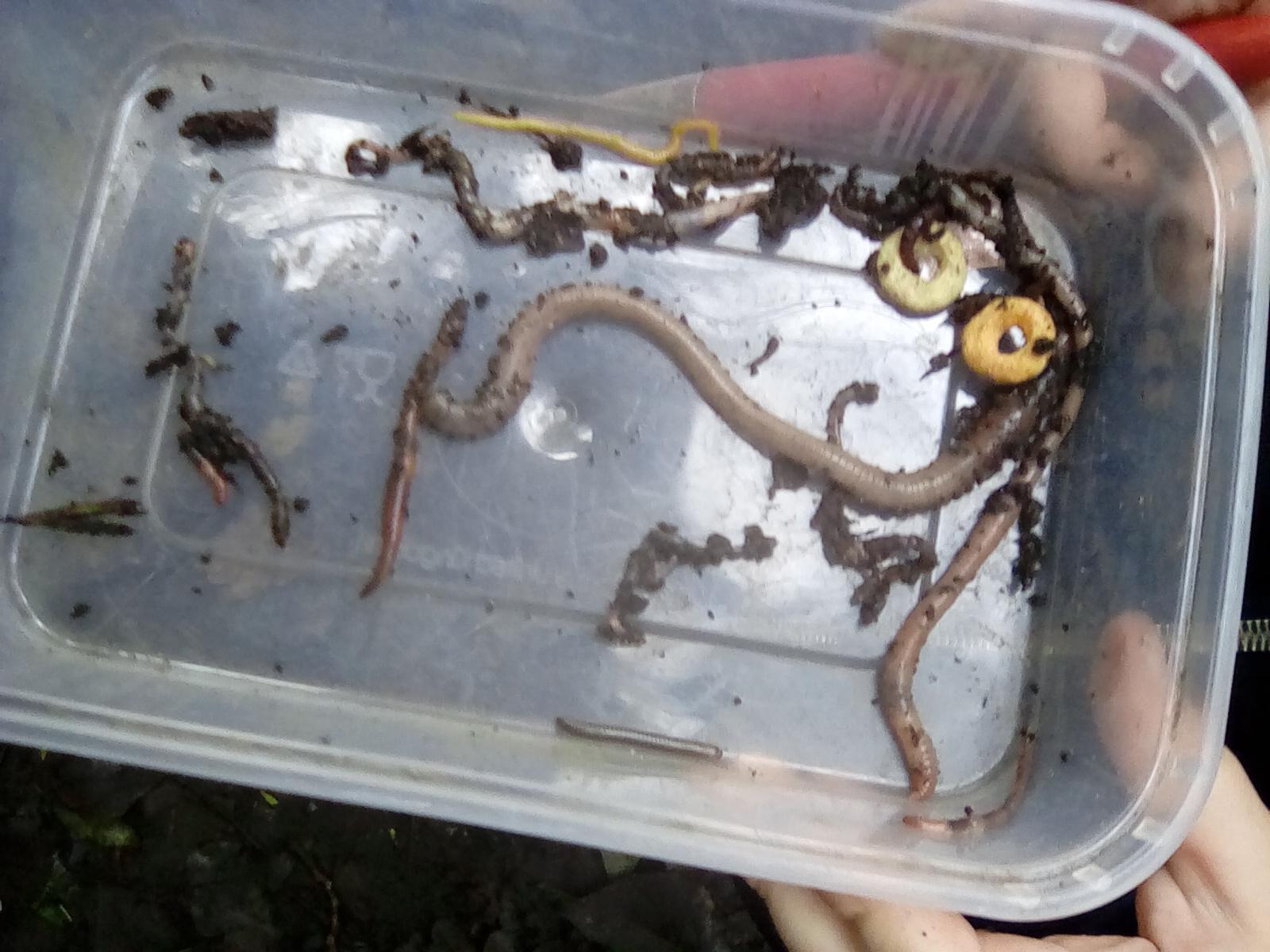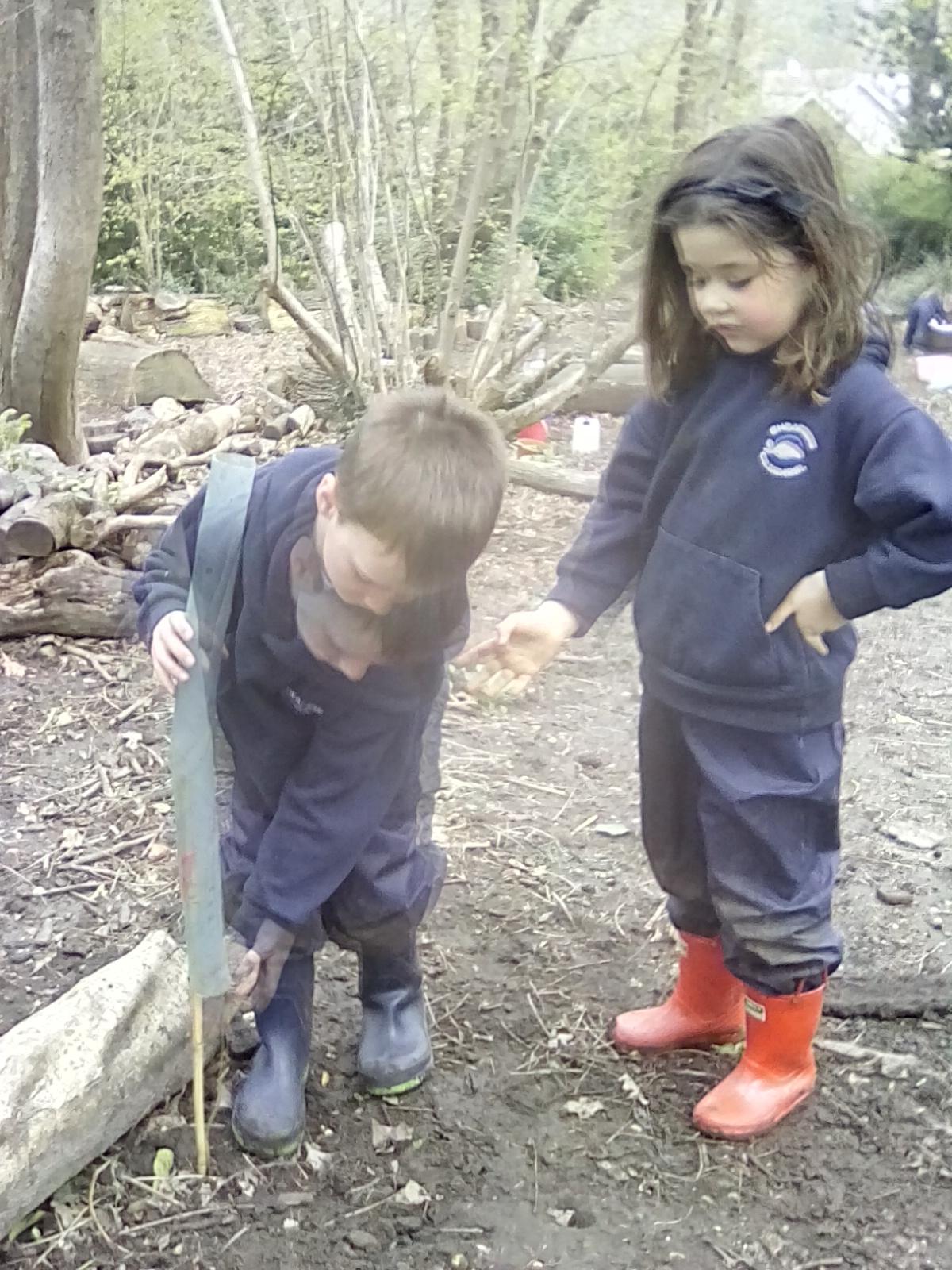 Today was Roald Dahl day in school, so to celebrate we had a Roald Dahl themed session. Kestrels and Kingfishers read an extract of Billy and the Minpins and then got their creative juices following by creating The Gruncher from the book and some Minpins. The children had to work in groups where the focus was on listening and responding appropriately to others. They were also using spoken language to develop understanding through imagining and exploring ideas. During the session we talked about team work, negotiating and compromise. The children produced some creative pieces and of course enjoyed the campfire and marshmallows. Below is a selection of some of the Grunchers and Minpins! Some of the children got very excited by the discovery of some larva under a log. We spent ages considering what he could be, some children even took the photo home for some further research. We decided it was Stag Beetle Larva but see what you think !