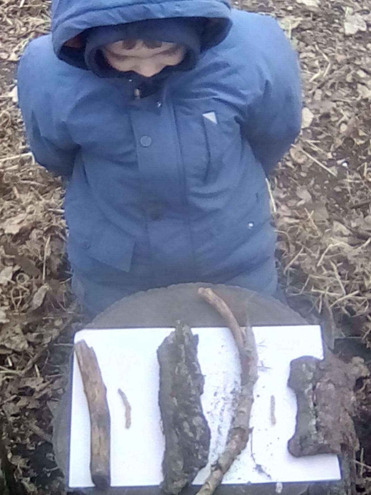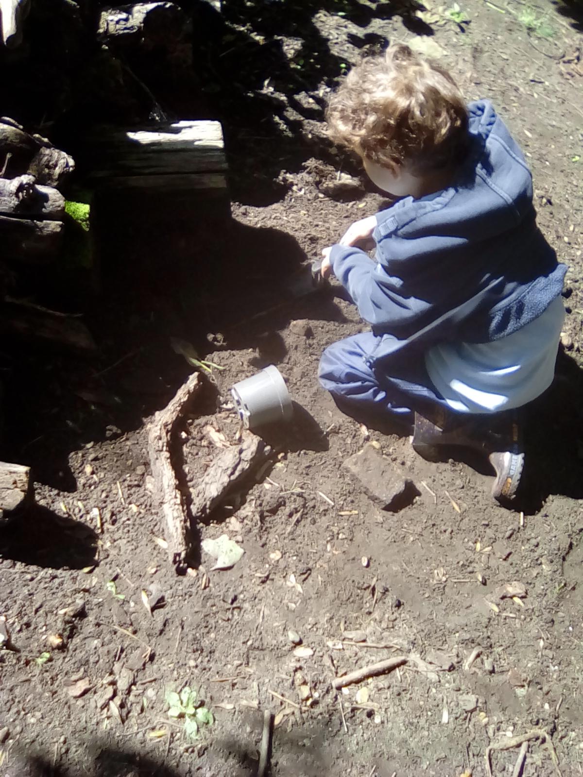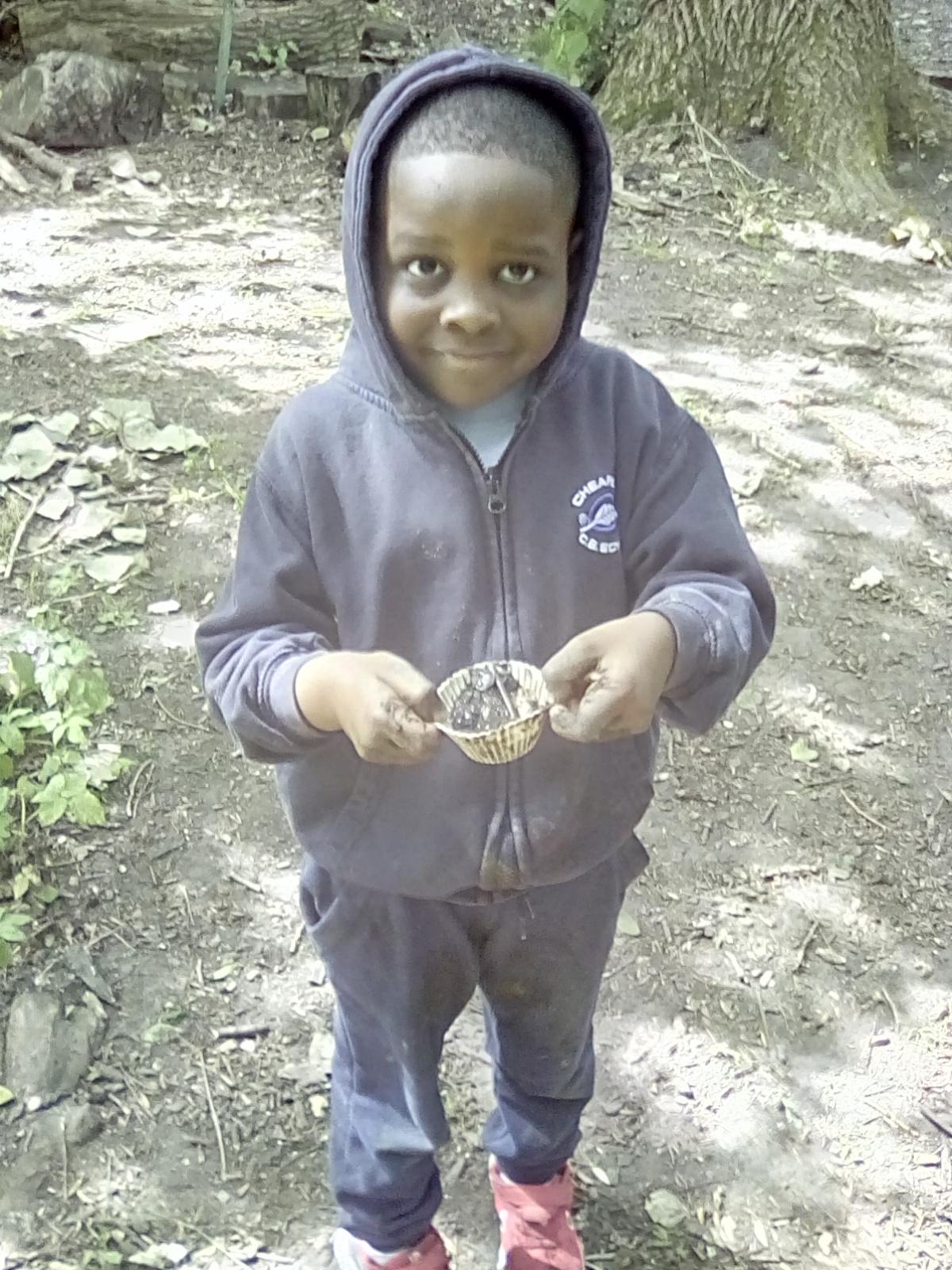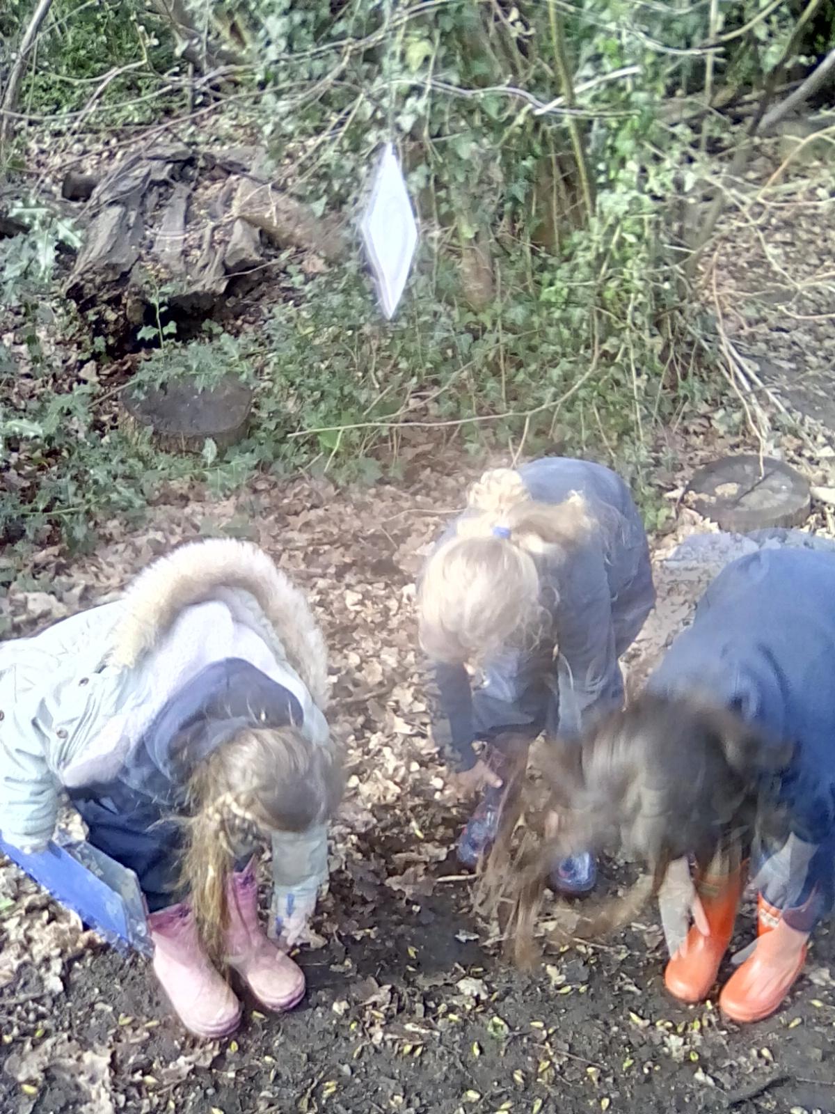 Today was Roald Dahl day in school, so to celebrate we had a Roald Dahl themed session. Kestrels and Kingfishers read an extract of Billy and the Minpins and then got their creative juices following by creating The Gruncher from the book and some Minpins. The children had to work in groups where the focus was on listening and responding appropriately to others. They were also using spoken language to develop understanding through imagining and exploring ideas. During the session we talked about team work, negotiating and compromise. The children produced some creative pieces and of course enjoyed the campfire and marshmallows. Below is a selection of some of the Grunchers and Minpins! Some of the children got very excited by the discovery of some larva under a log. We spent ages considering what he could be, some children even took the photo home for some further research. We decided it was Stag Beetle Larva but see what you think !