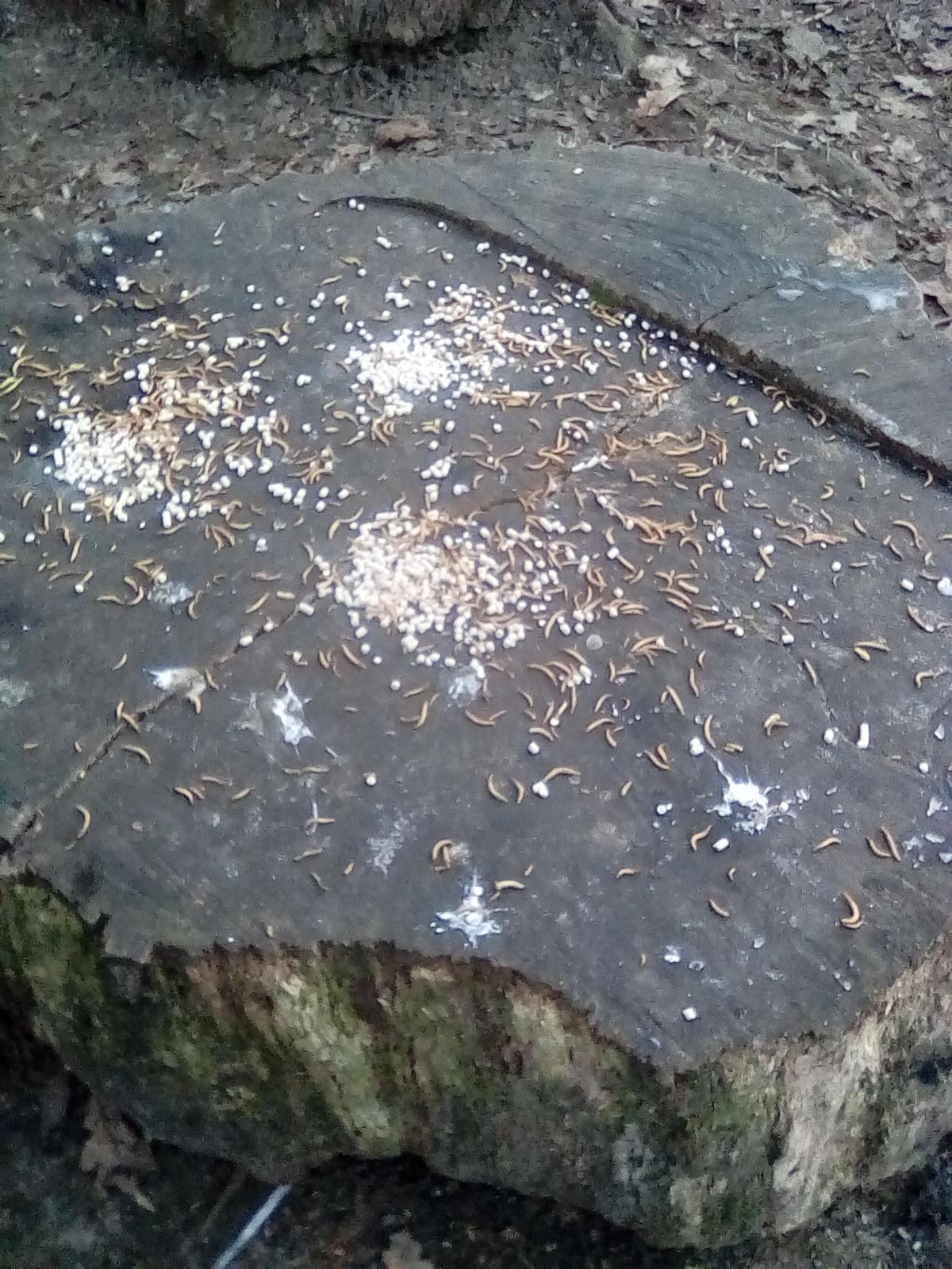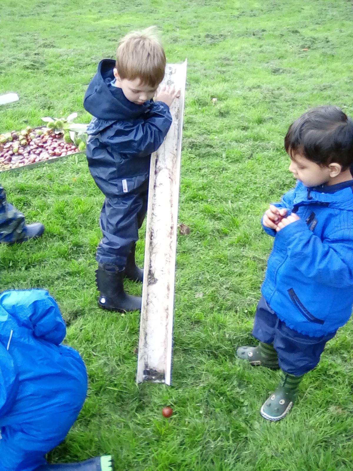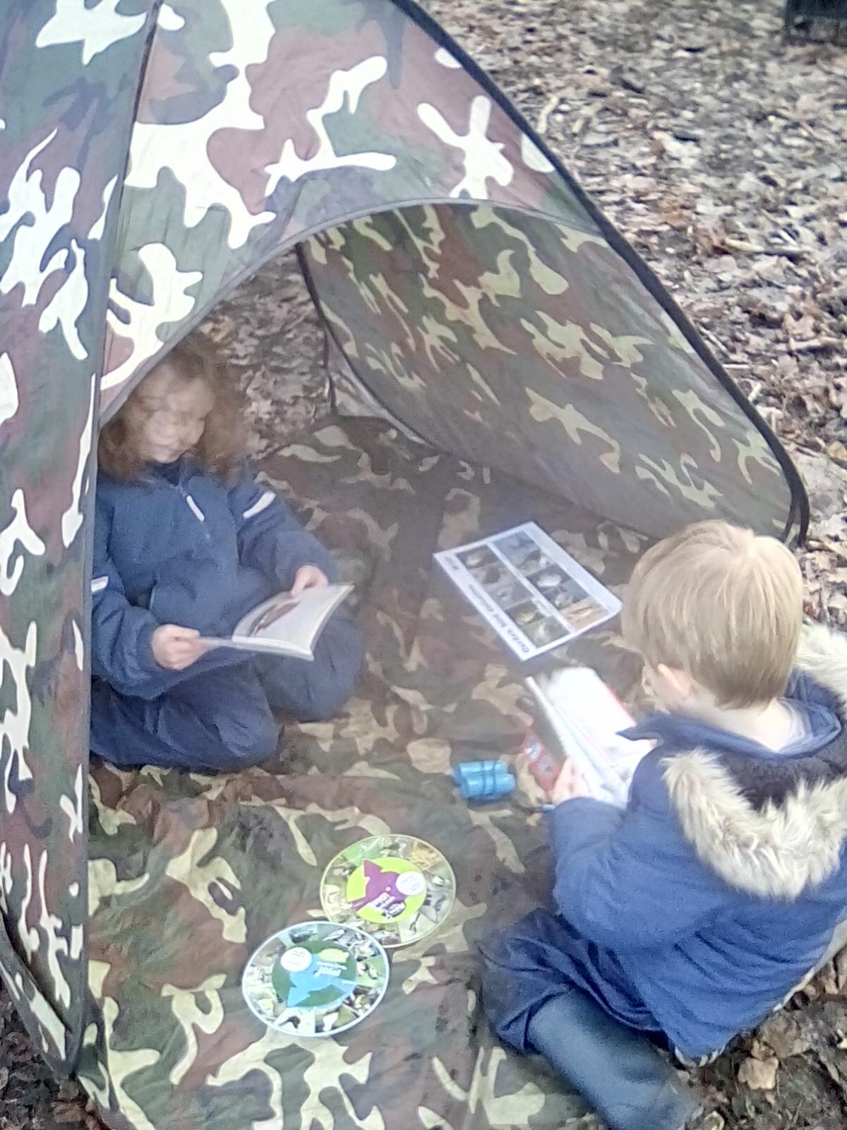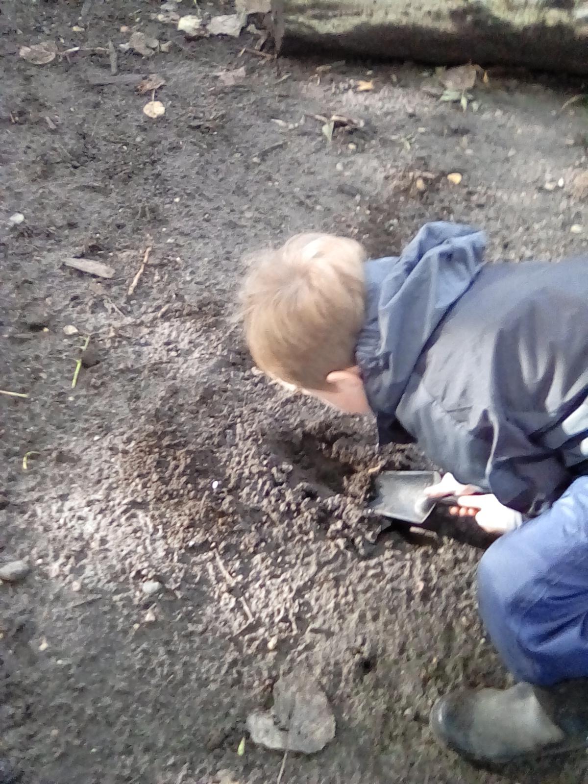 Today was Roald Dahl day in school, so to celebrate we had a Roald Dahl themed session. Kestrels and Kingfishers read an extract of Billy and the Minpins and then got their creative juices following by creating The Gruncher from the book and some Minpins. The children had to work in groups where the focus was on listening and responding appropriately to others. They were also using spoken language to develop understanding through imagining and exploring ideas. During the session we talked about team work, negotiating and compromise. The children produced some creative pieces and of course enjoyed the campfire and marshmallows. Below is a selection of some of the Grunchers and Minpins! Some of the children got very excited by the discovery of some larva under a log. We spent ages considering what he could be, some children even took the photo home for some further research. We decided it was Stag Beetle Larva but see what you think !