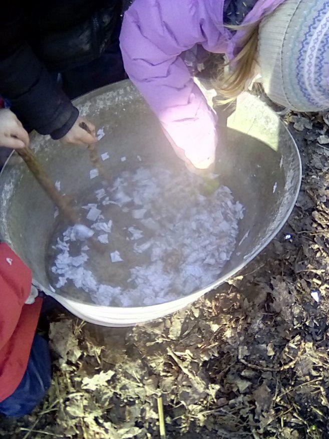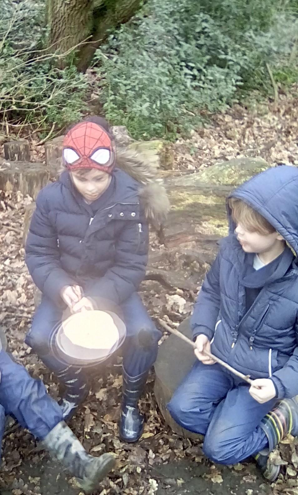 Pancakes were the theme for this week for the younger classes. Wrens, Robins and Doves all enjoyed pancakes cooked on the campfire! Wrens enjoyed making the pancake dough and their first experience of campfire pancakes! Nightingales were continuing with their theme of recycling and they recycled plastic bottles this week, turning them into some great bird feeders which they took home to entice birds into their own gardens. Year 5 have been making bug traps during their session with Royal Holloway which they really enjoyed. We also made a great discovery on Friday - there is a plethora of frog spawn in our pond !! Robins and Doves each got to visit the pond and have a closer look at the frog spawn. Some of the children were amazed by how it felt and how it wobbled. All classes will get a chance to visit the pond area next week and we look forward to watching what happens !