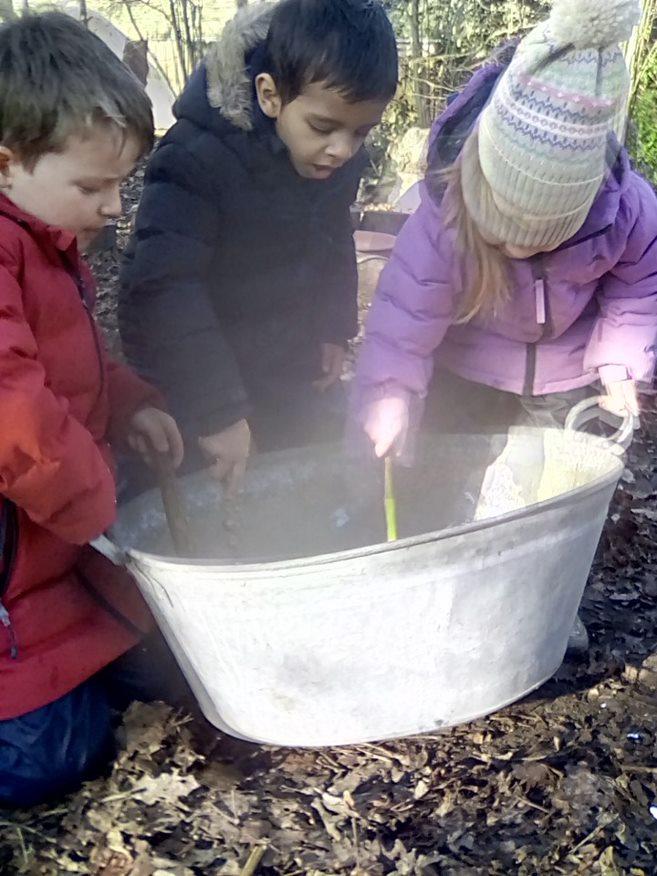 Wrens had a great day today in the lovely weather ! We were nature detectives this week and the children were using their senses to explore the forest. They used their eyes to find different places in the woods, we listened for the different sounds and we used our noses to collect some different smells to create our own smelly potions. The children all had great ideas for names for the potions. There was also some lovely group play going on in the mud kitchen area, groups playing hide and seek and a game of stepping stones over the lava invented by the children. Great work Wrens