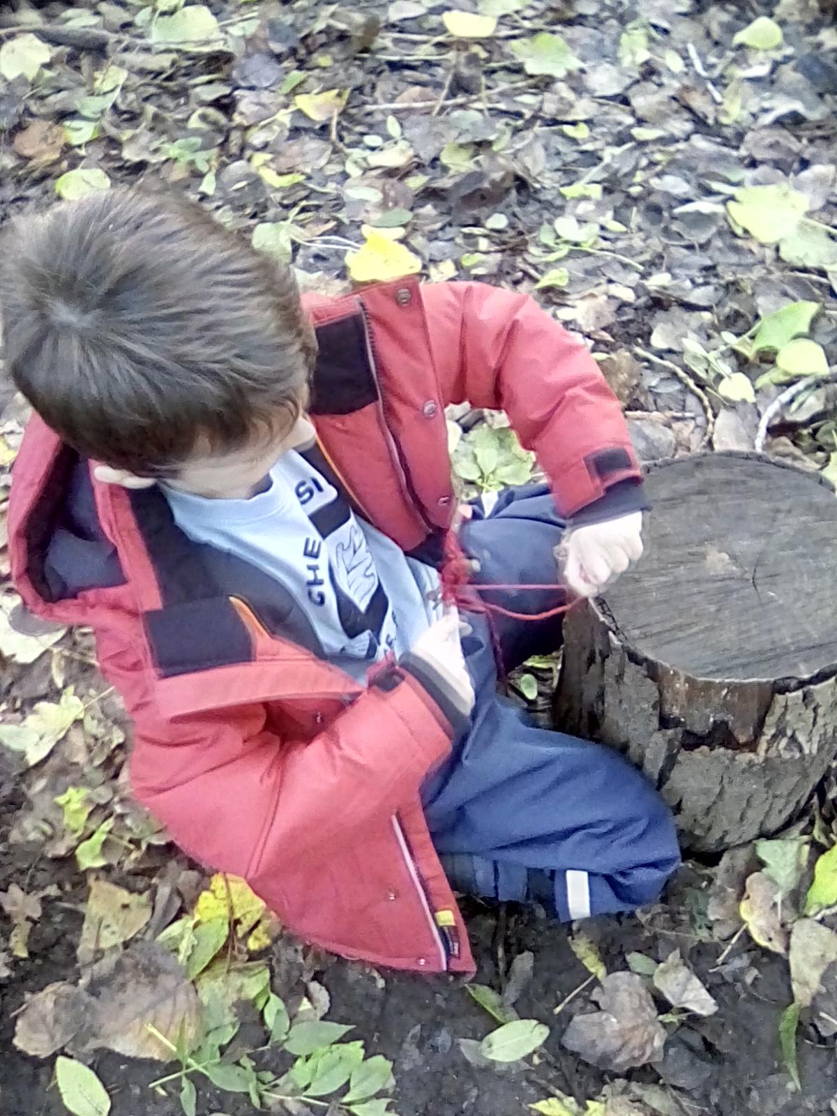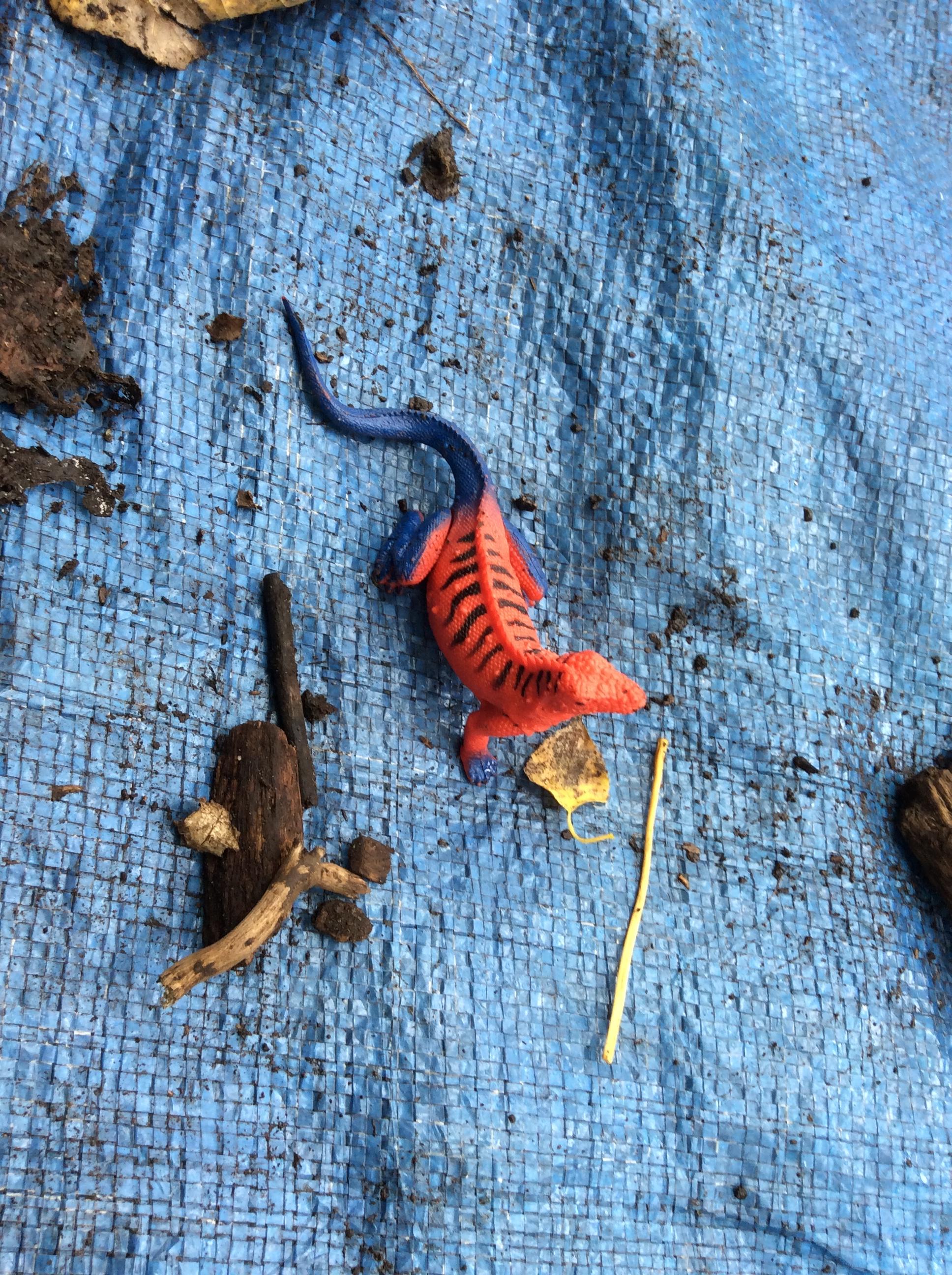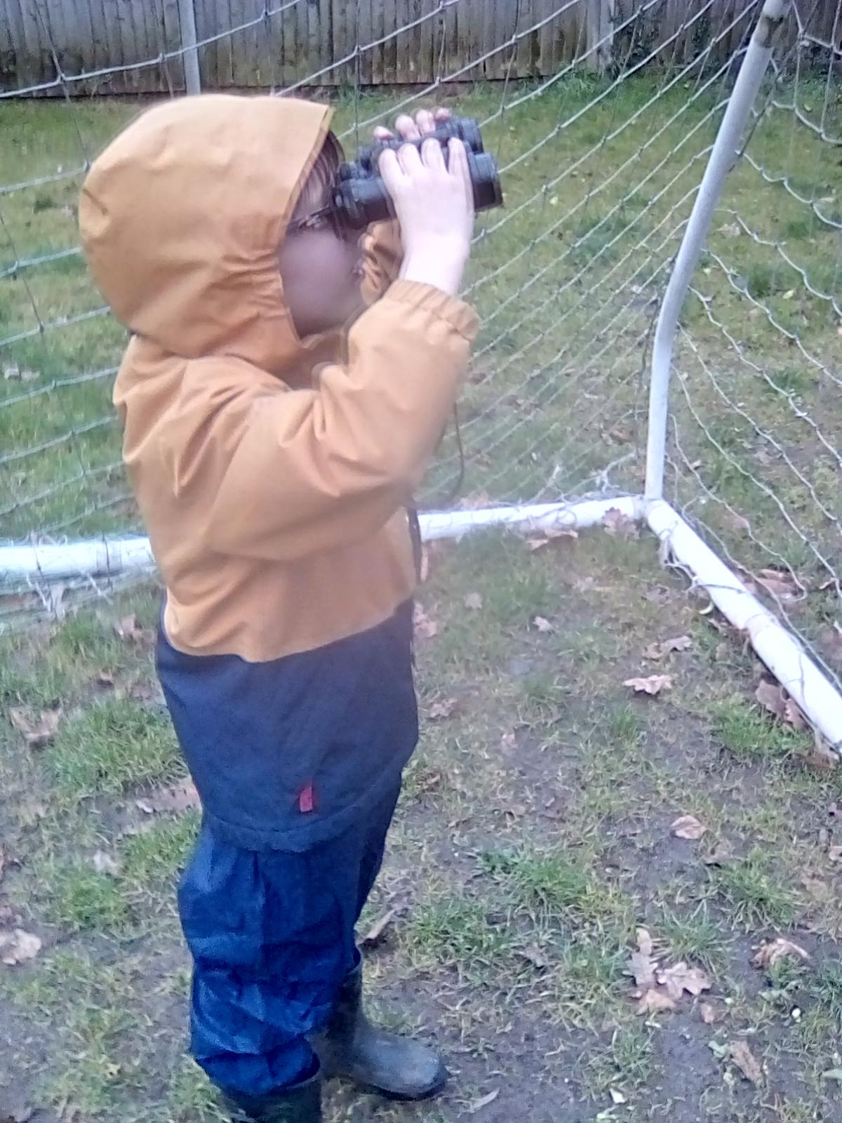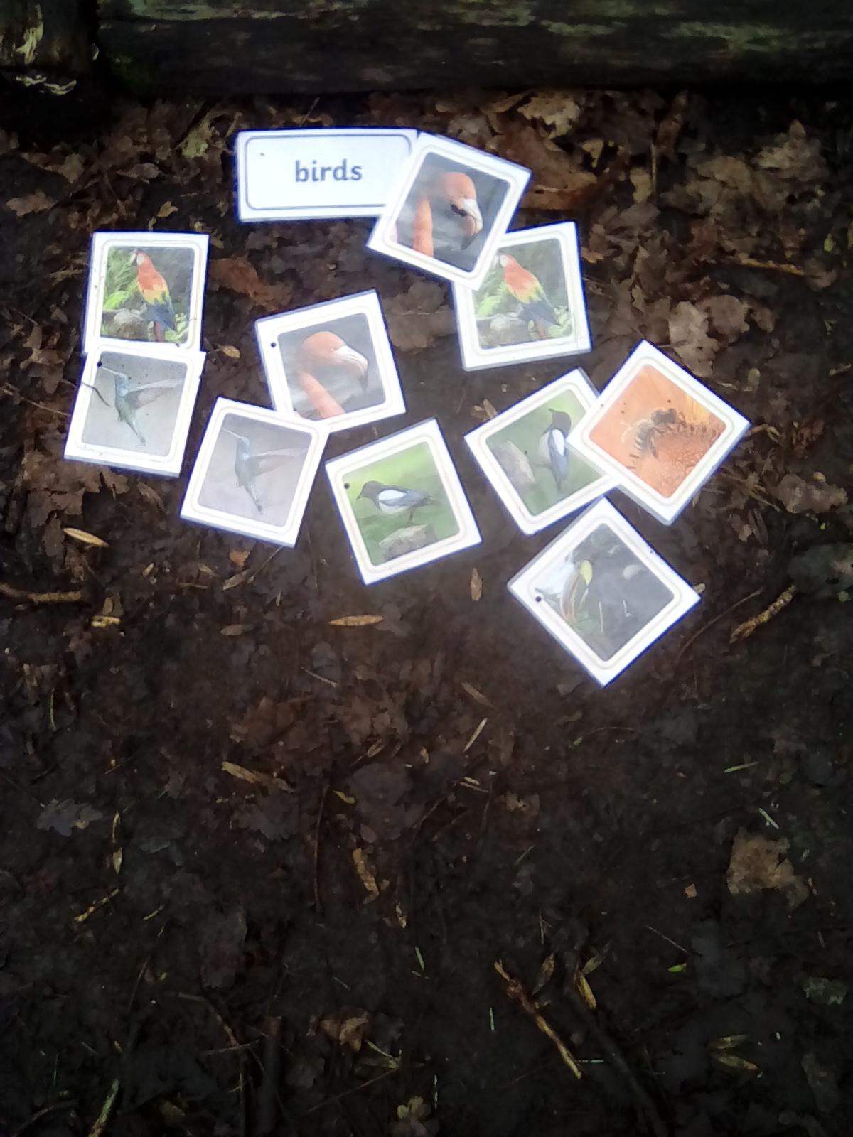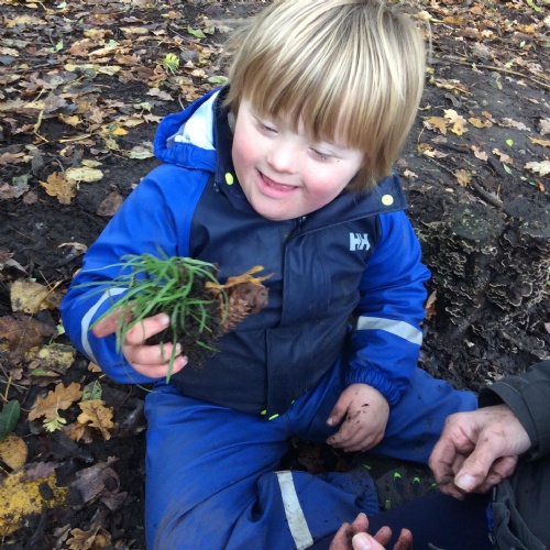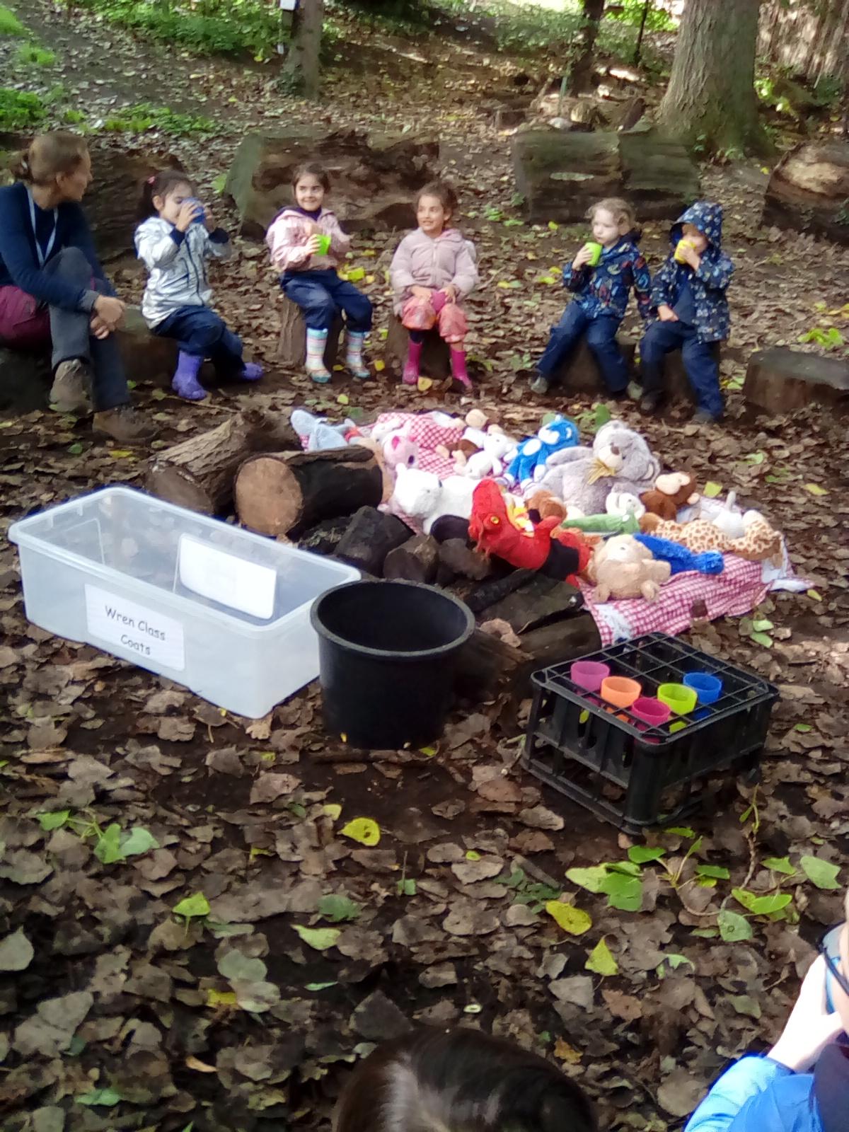 Wrens Class had a brilliant first session in the forest today. I was really impressed with all the Wrens and how well they manged for a whole day outside!! Once we had got the boots and waterproofs on we headed into the forest only to discover that the dinosaurs had escaped from their bucket and were hiding somewhere in the forest ! We got into dinosaur detective mode and armed with binoculars and magnifying glasses went off in search of the missing dinosaurs. Many of the children also discovered different animals and insects as well and were delighted to do so. In the session after lunch we split into 2 groups where we did some simple games on the field and then used the forest to collect some special treasures to make a treasure stick to take home. All the children had a go at using a knot to attach string to a stick. Well done Wrens for your enthusiasm, engagement and perseverance !