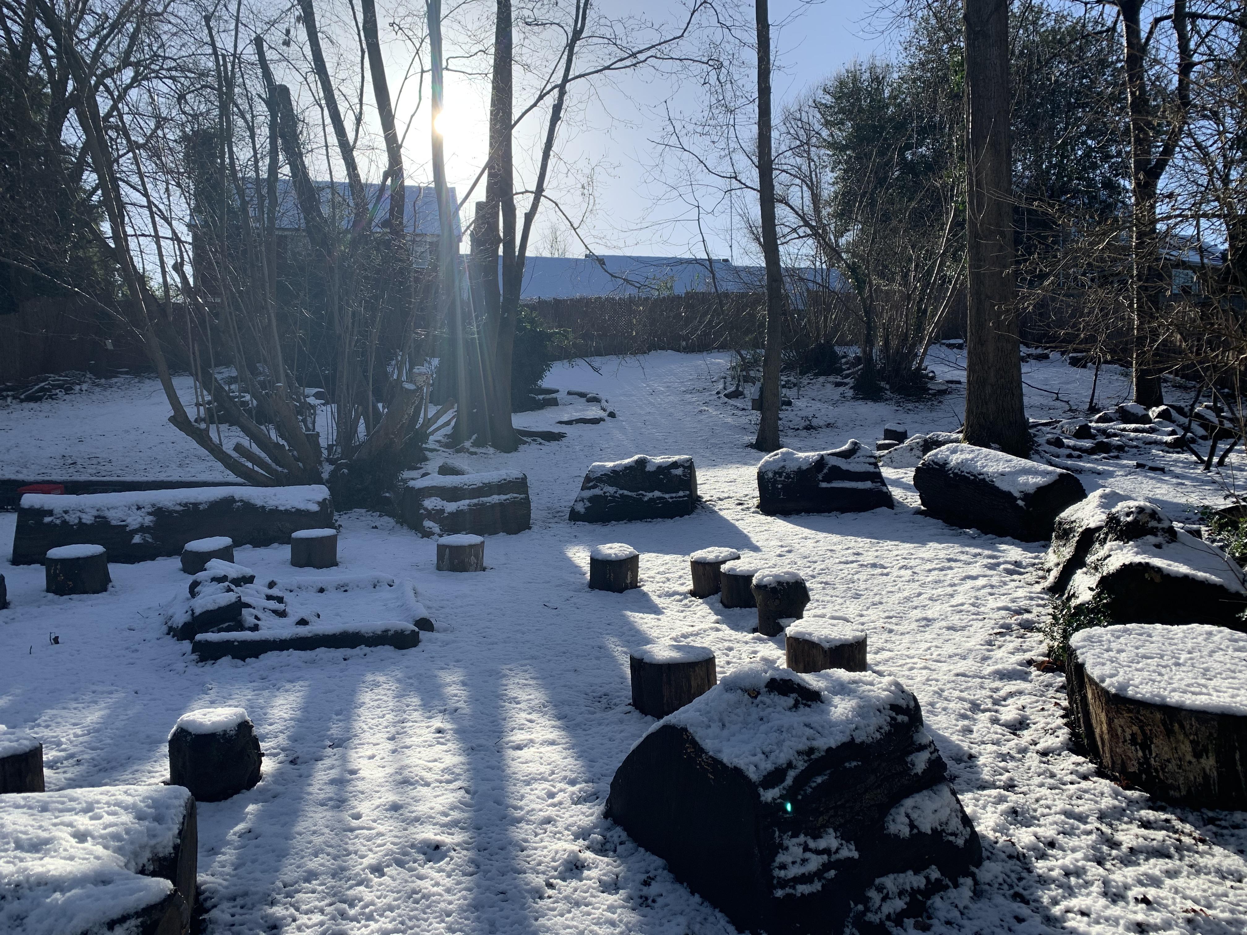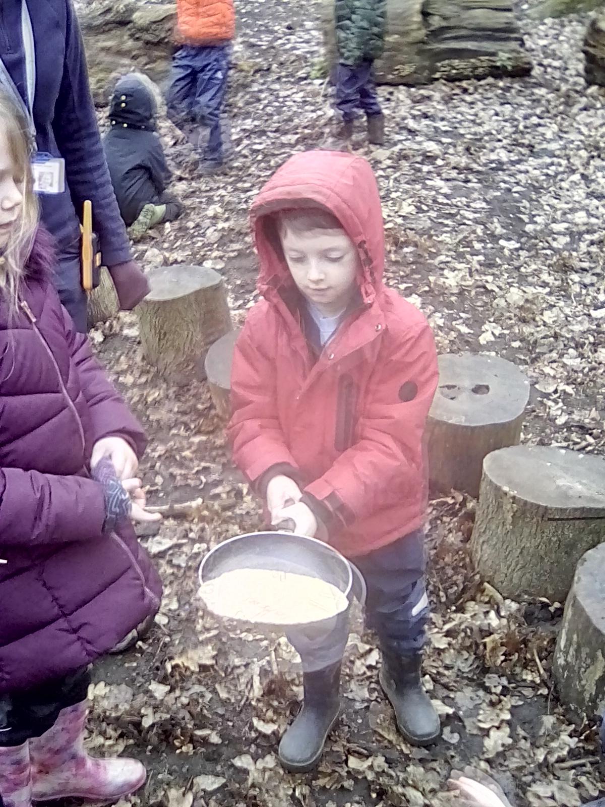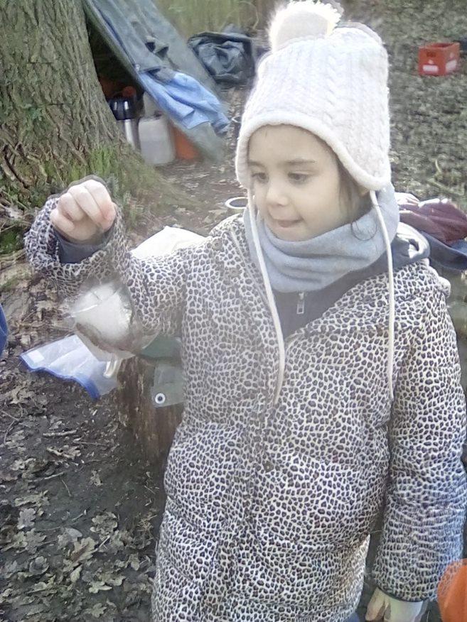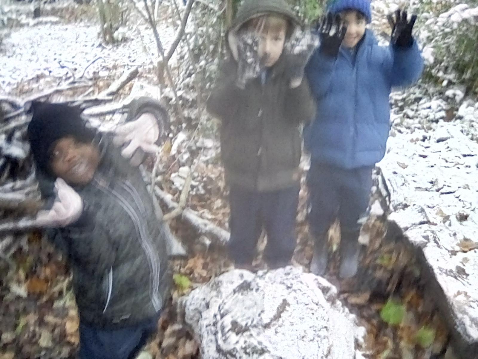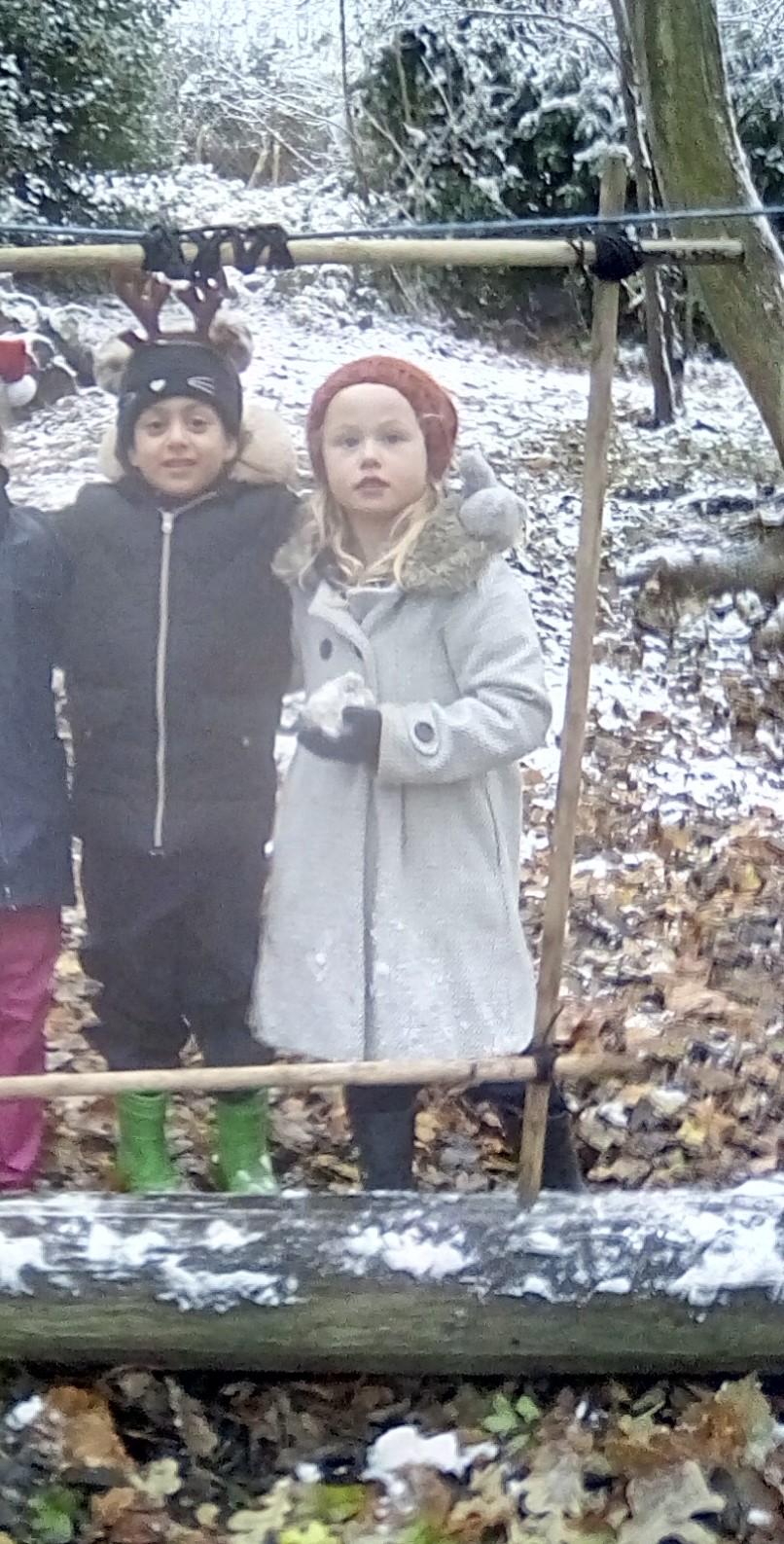 This was an exciting week for Forest School as we had our first snow of the year! For a brief time the forest looked beautiful covered in a white dusting of snow! However, this was short lived when Wrens Class arrived for the session - they had a great time mark making in the snow, spotting animal tracks, building snowmen as best they could and having a go at spotting other signs of winter! To keep us warm we had campfire porridge with jam or honey - yum! Kingfishers did some more work on team building and this week team leaders were in charge of small teams tasked with the challenge of building the tallest twig tower. Teams had some interesting ideas, and we saw some very unique towers! Again campfire porridge gave them the energy needed to see the task through. Robins continued exploring the dragon theme from last week by making dragons in the forest, making lairs and dens, dragon stew and lots of other dragon related things. Again, they enjoyed campfire porridge especially as we added bananas to the porridge this time. Doves had a go at identifying trees by their twigs during their session, not an easy task but they did really well. Great work Doves!