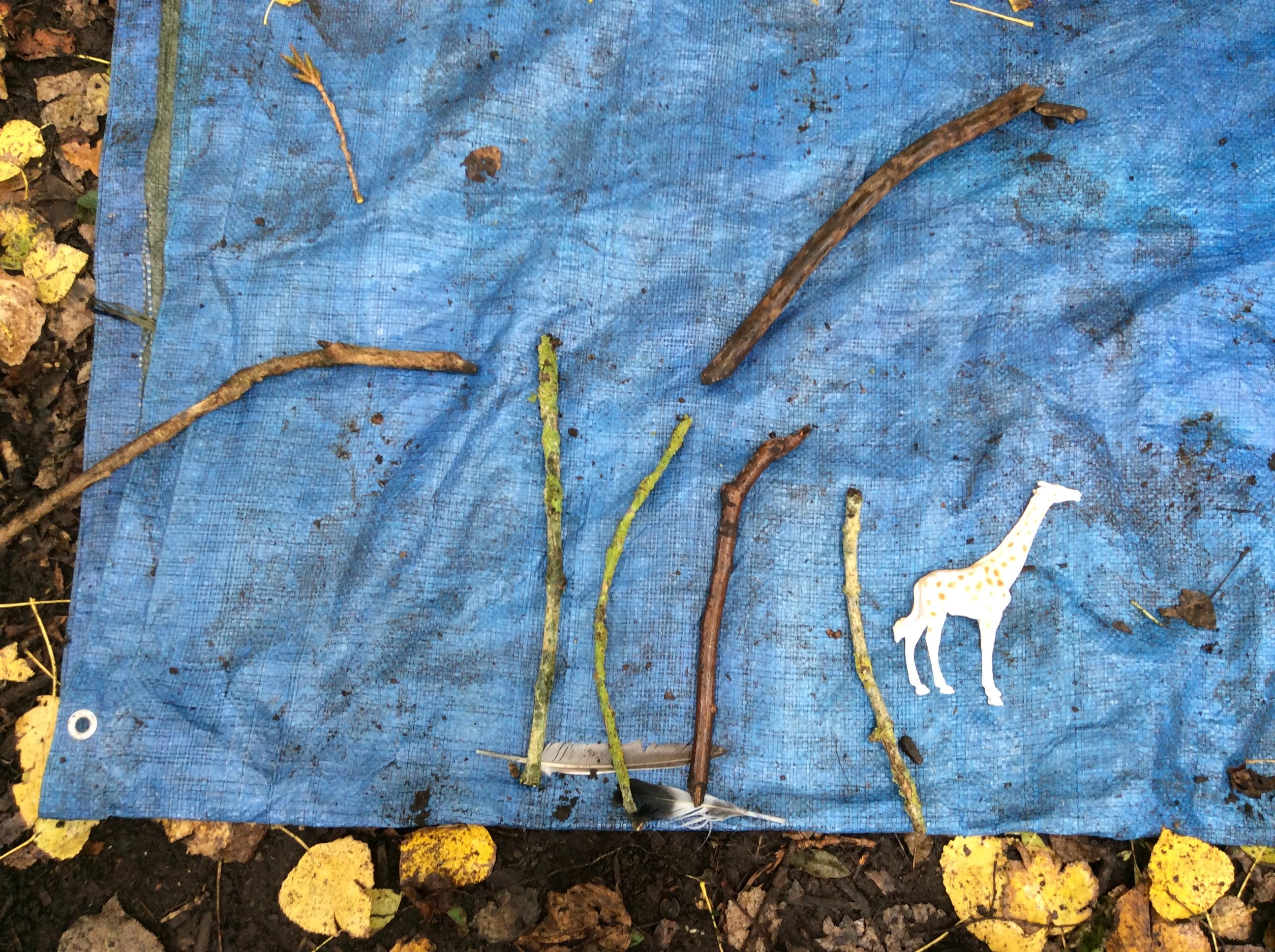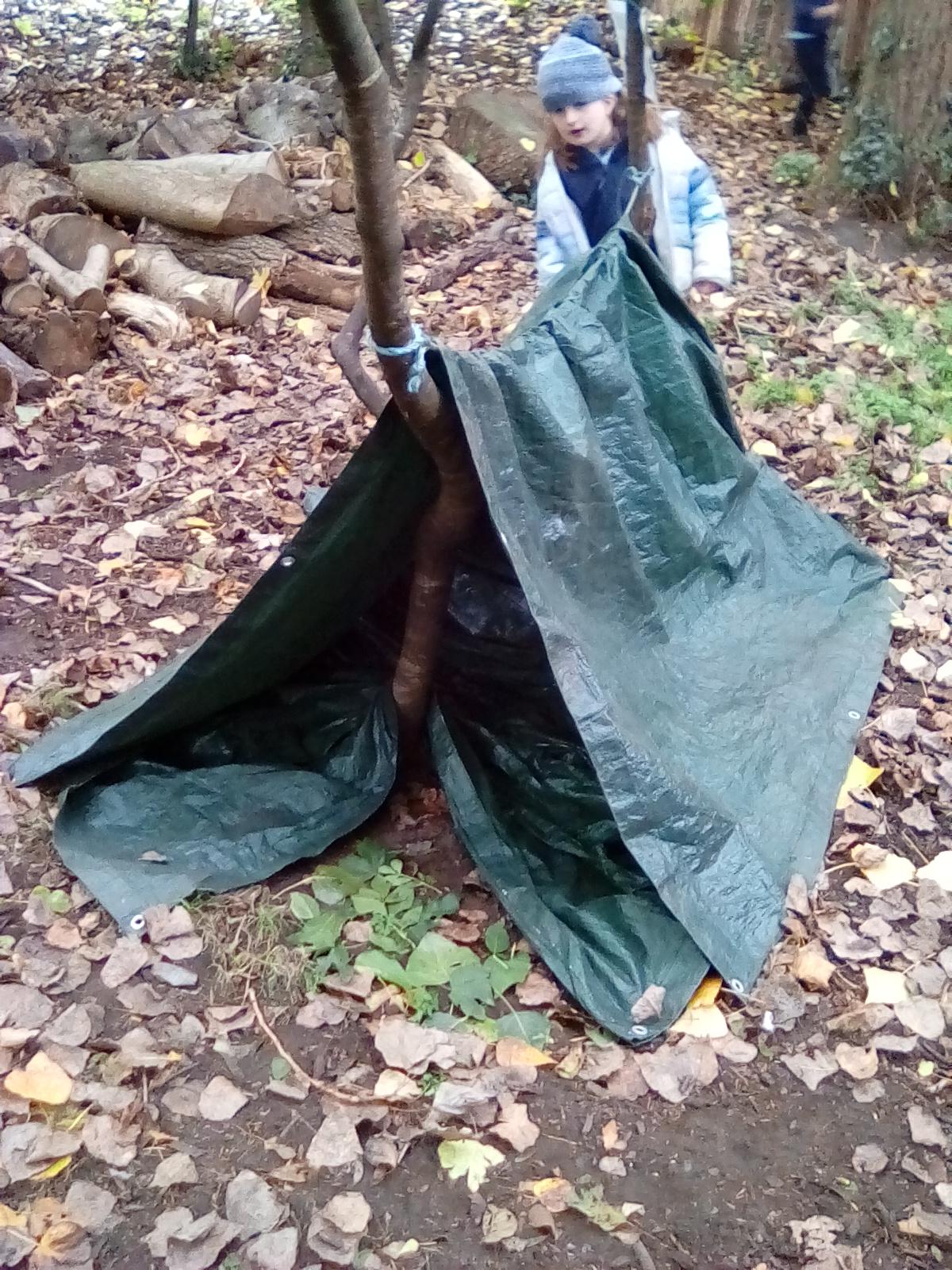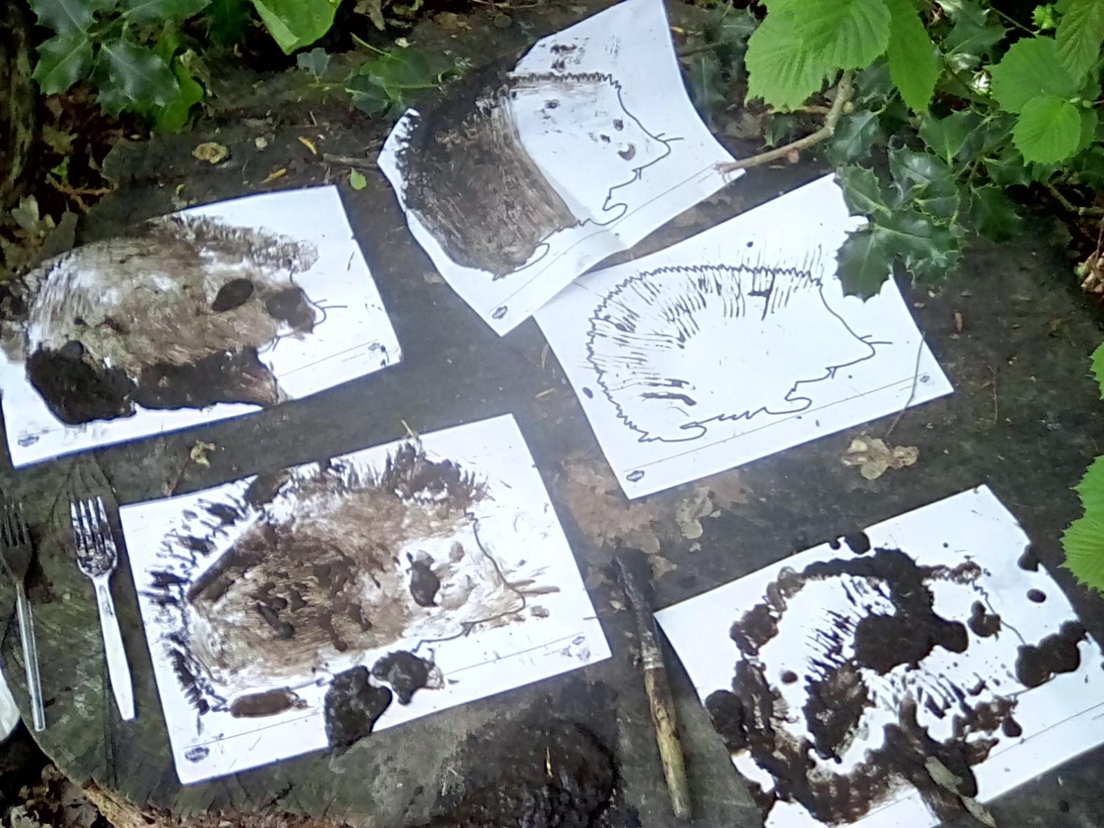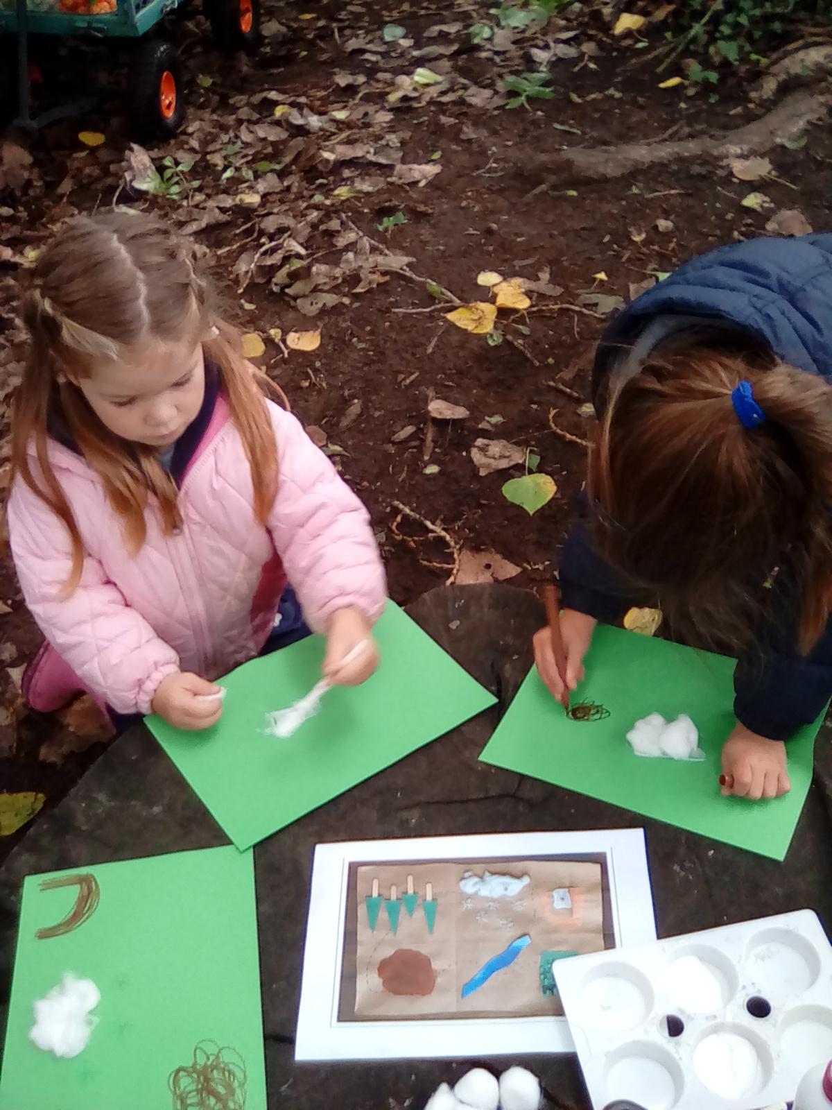 A very wet session today, but the Wrens were very keen to collect all the water from around the Forest! They also took advantage of the shelters and guttering. Even creating leaf art on the tarpaulin! Unfortunately, the wind was too gusty in the afternoon for year 1, but they became animal footprint experts!