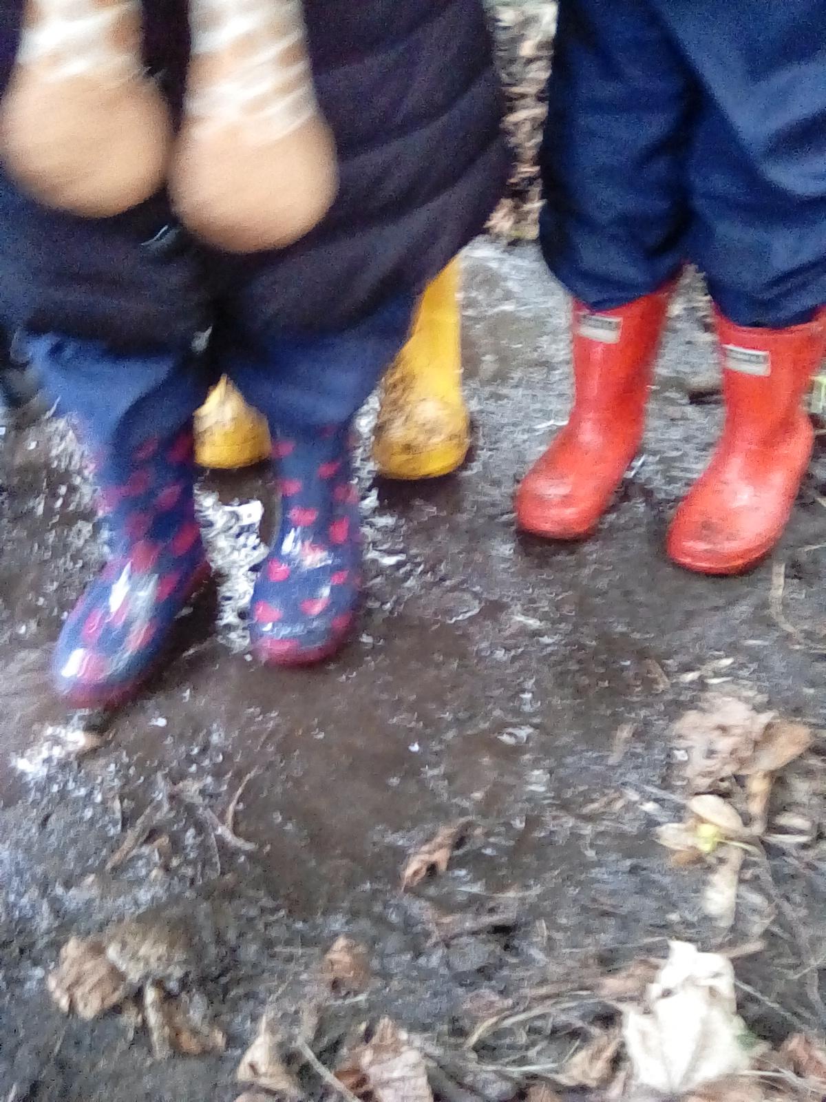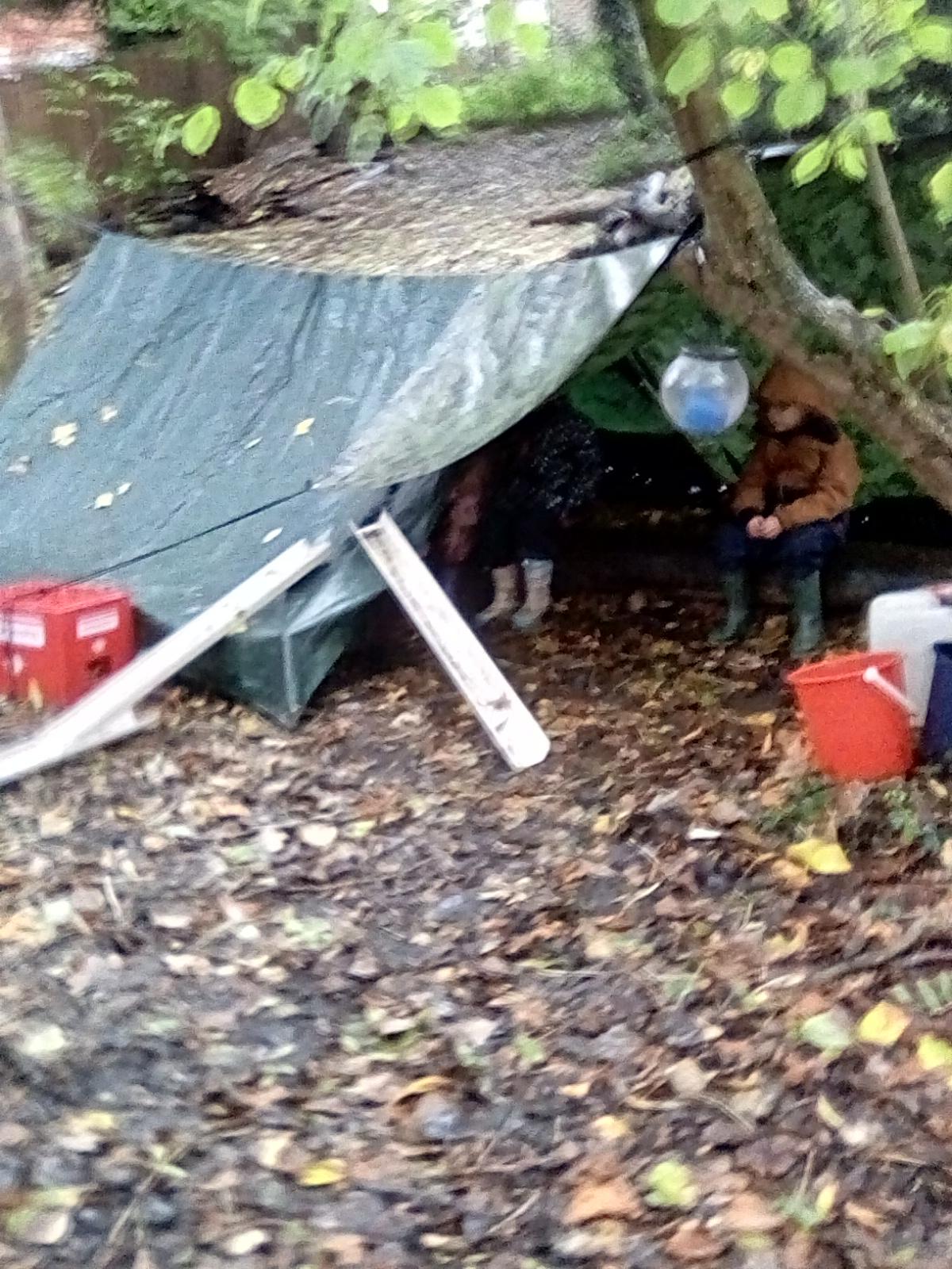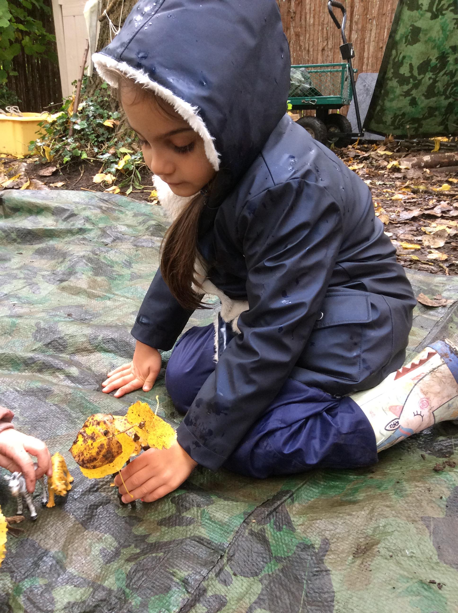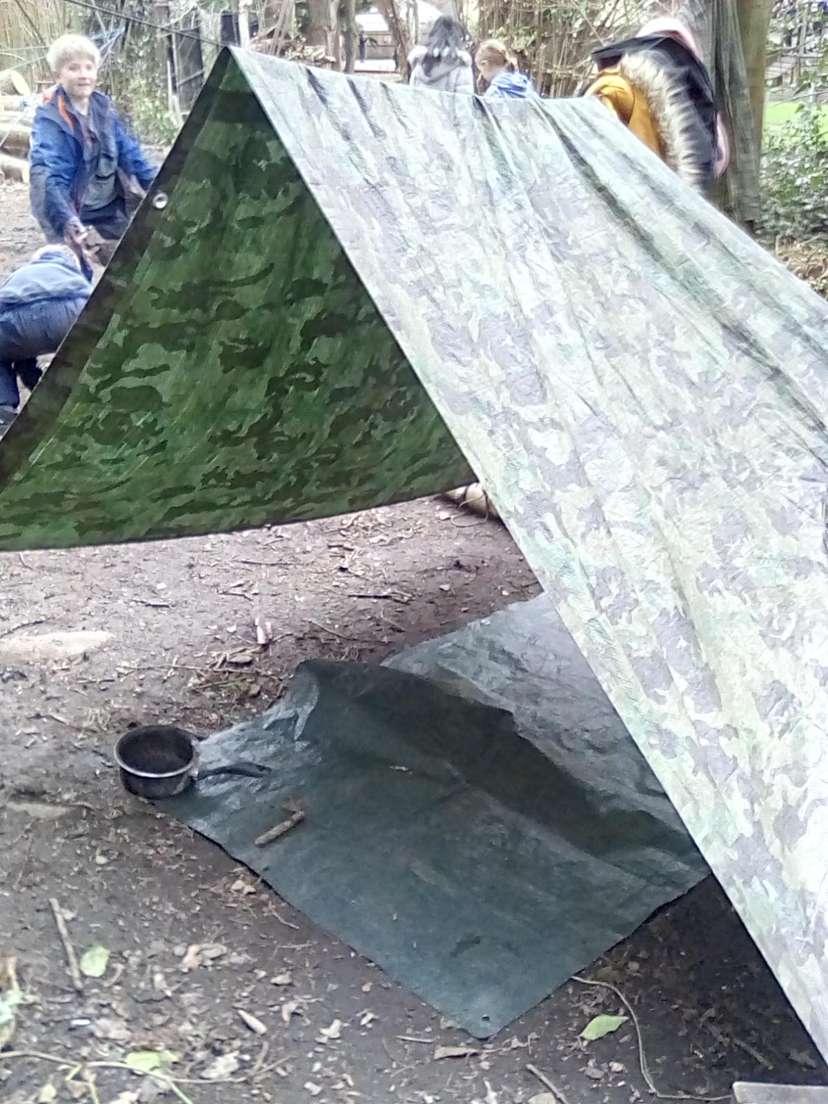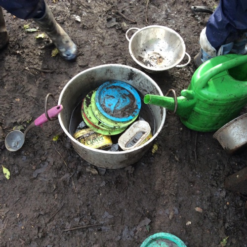 A very wet session today, but the Wrens were very keen to collect all the water from around the Forest! They also took advantage of the shelters and guttering. Even creating leaf art on the tarpaulin! Unfortunately, the wind was too gusty in the afternoon for year 1, but they became animal footprint experts!