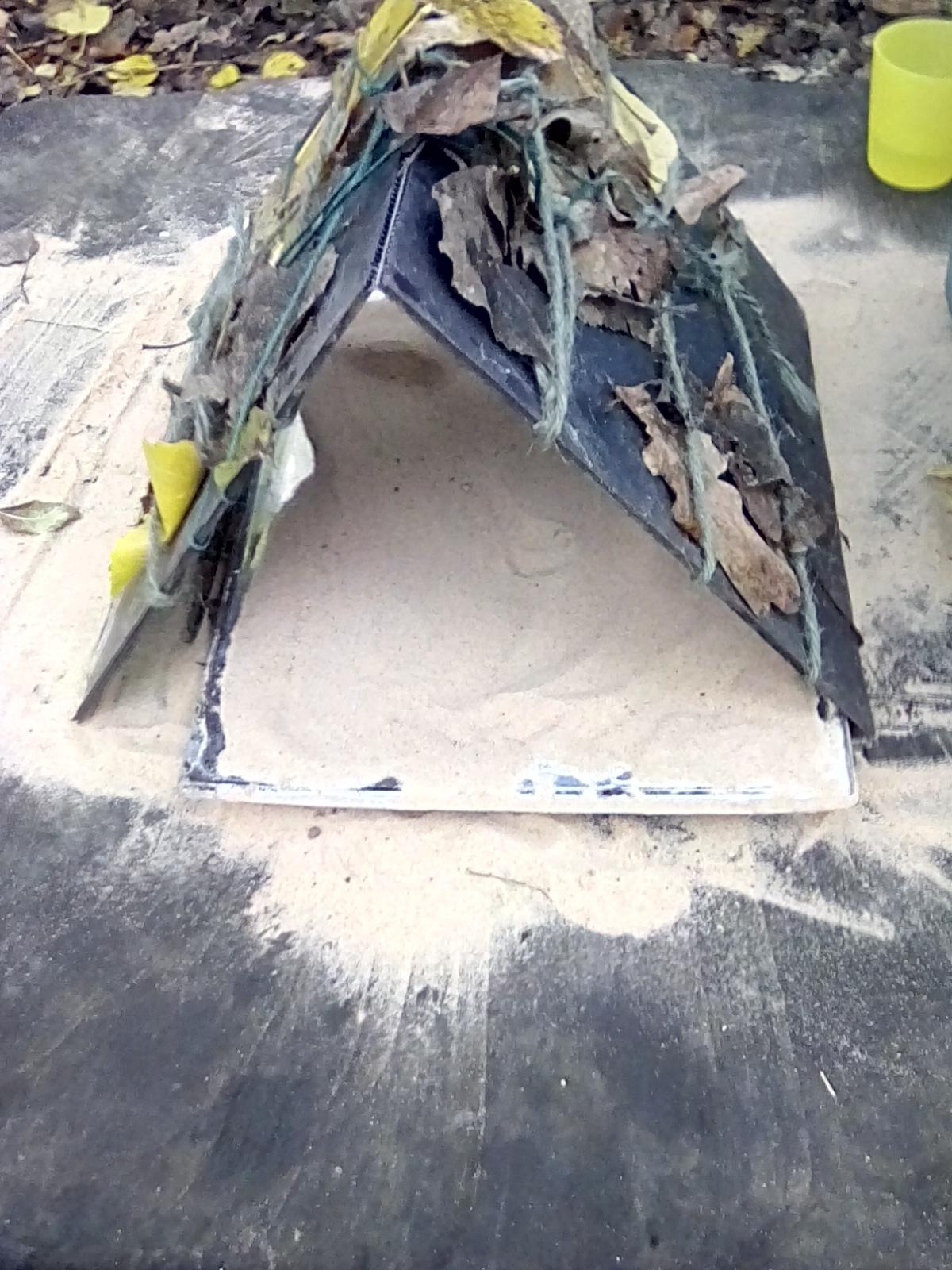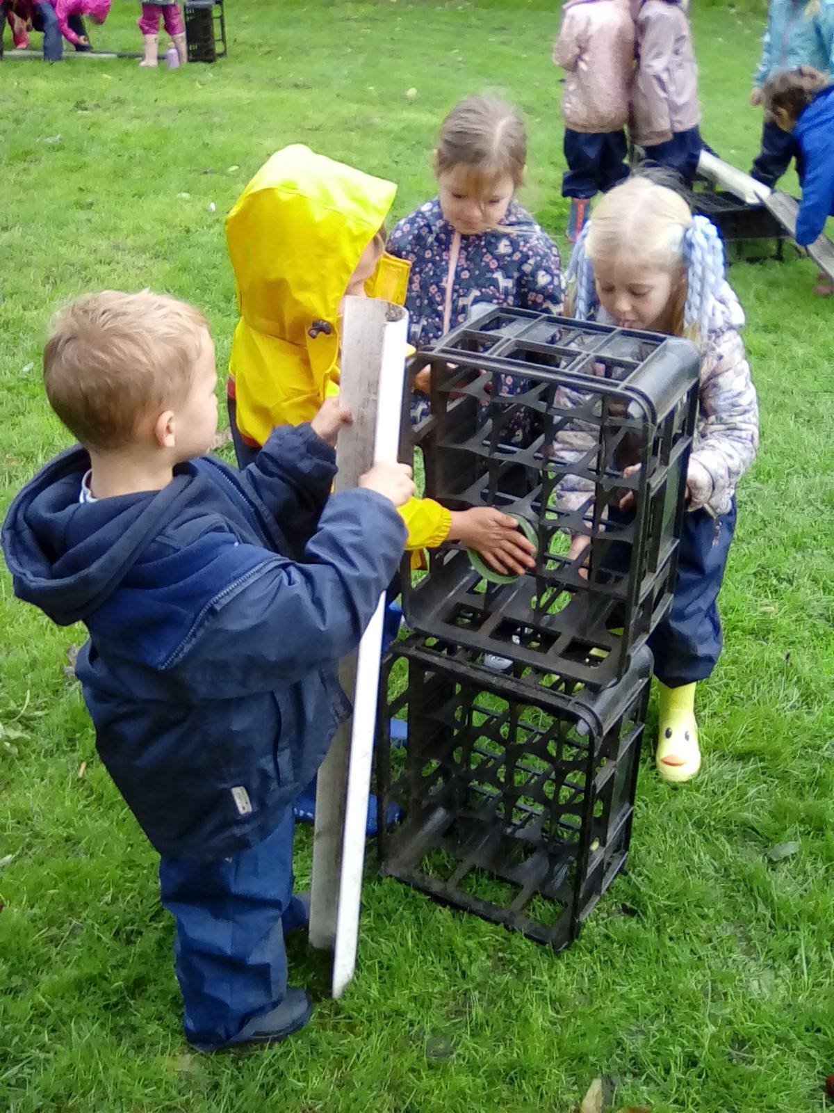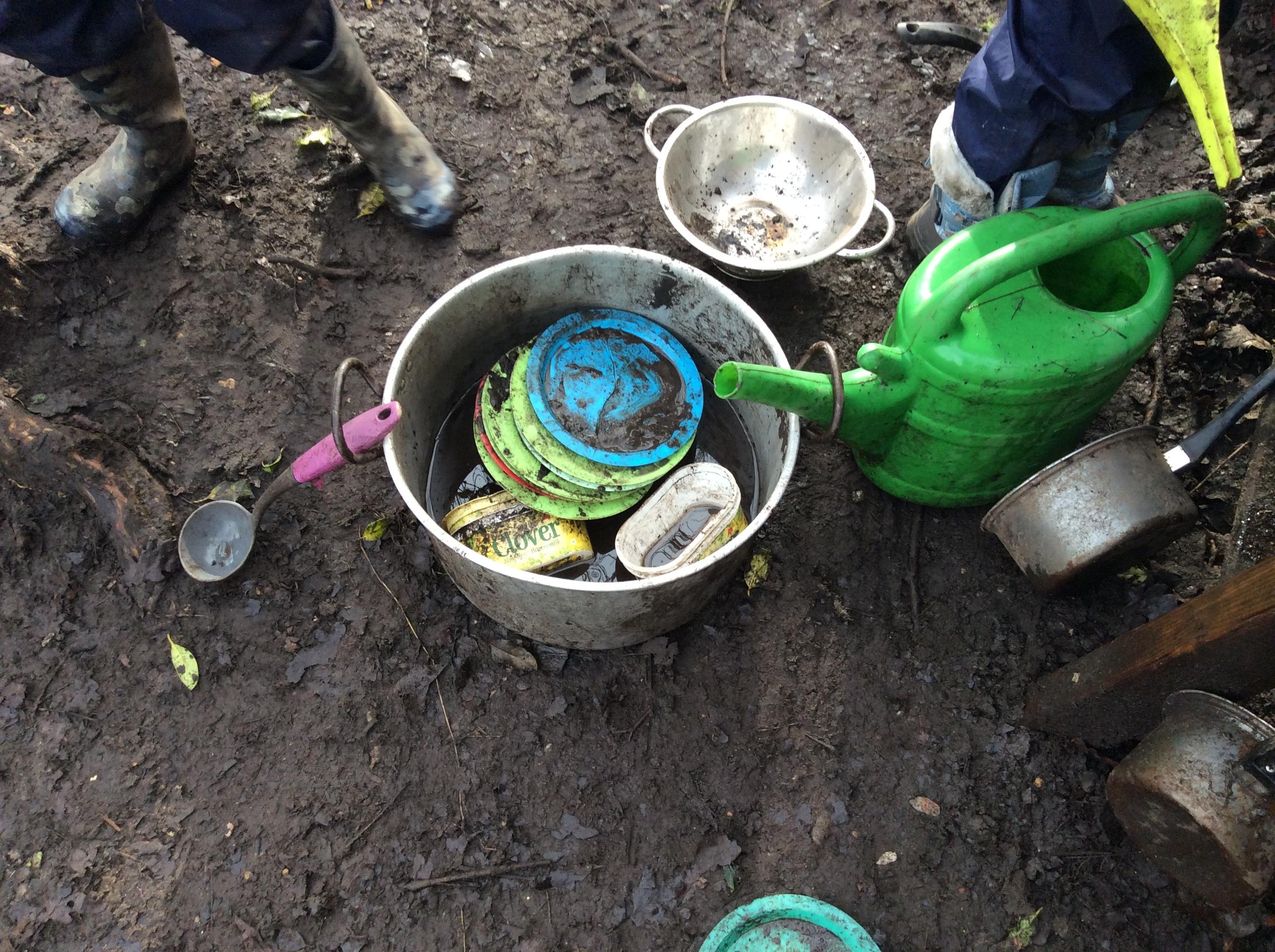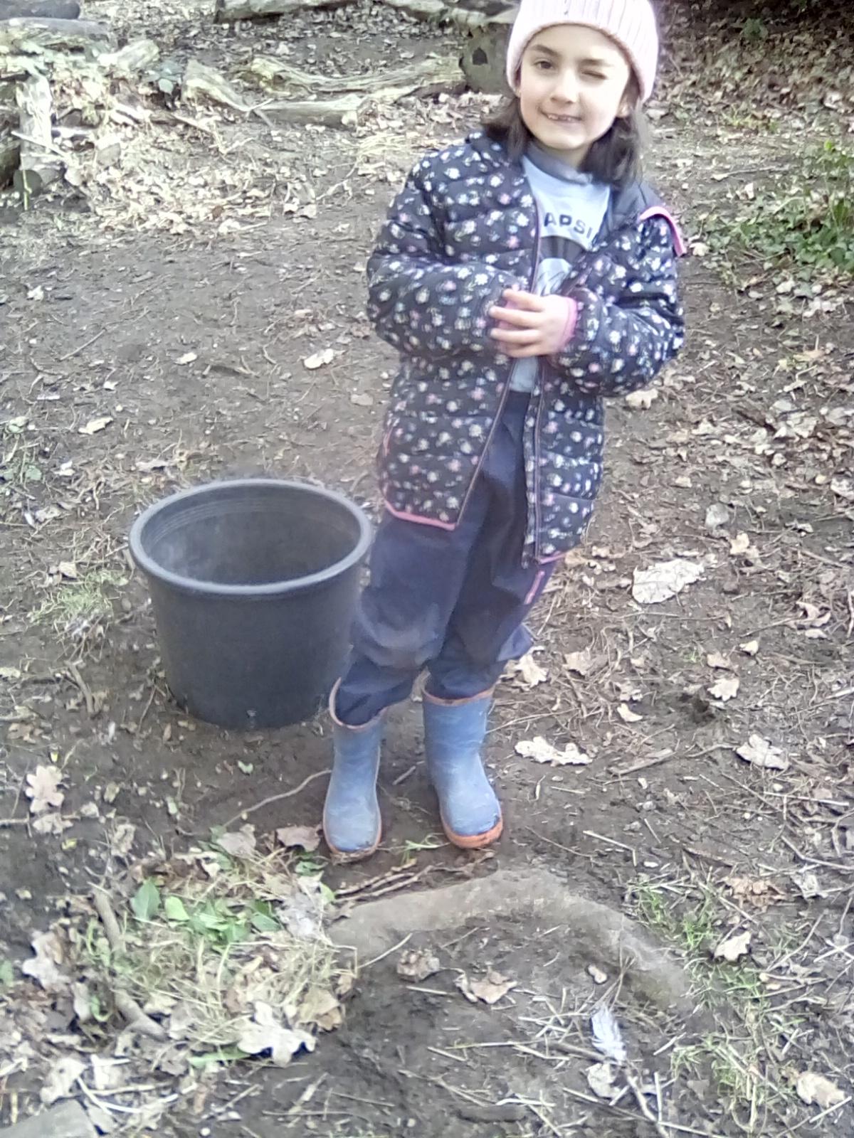 A very wet session today, but the Wrens were very keen to collect all the water from around the Forest! They also took advantage of the shelters and guttering. Even creating leaf art on the tarpaulin! Unfortunately, the wind was too gusty in the afternoon for year 1, but they became animal footprint experts!