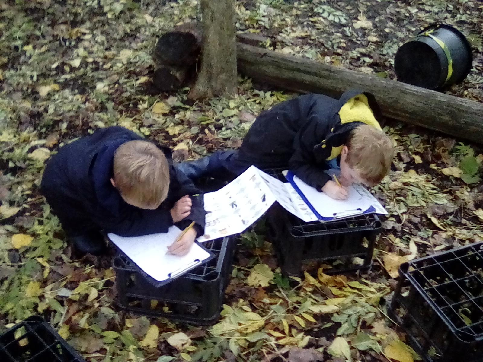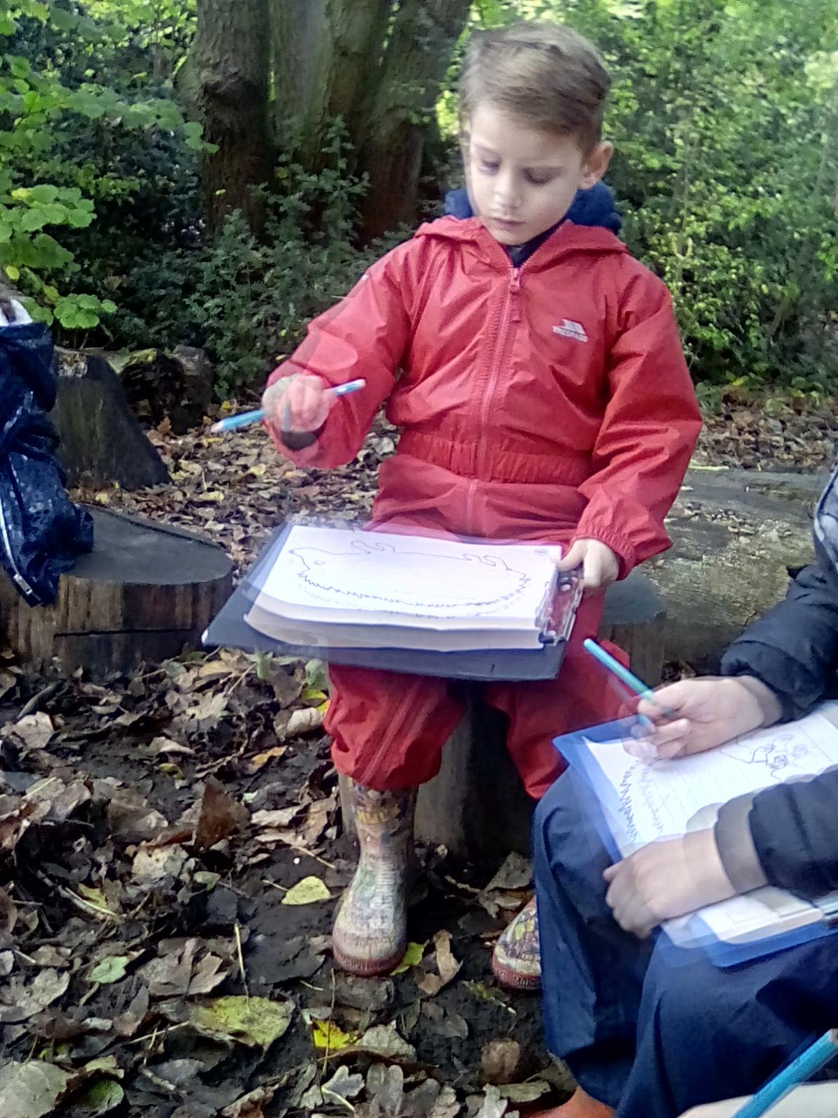 This week has been poetry week in school, with National Poetry day on Thursday, so our Forest school sessions have had a poetry focus. Kingfishers have had a go at using the woods to inspire their poetry writing about the changes from an acorn into an oak tree, and Doves have had a go at arranging lines to create their own autumn poem about autumn leaves. Below are a few examples of their creations.