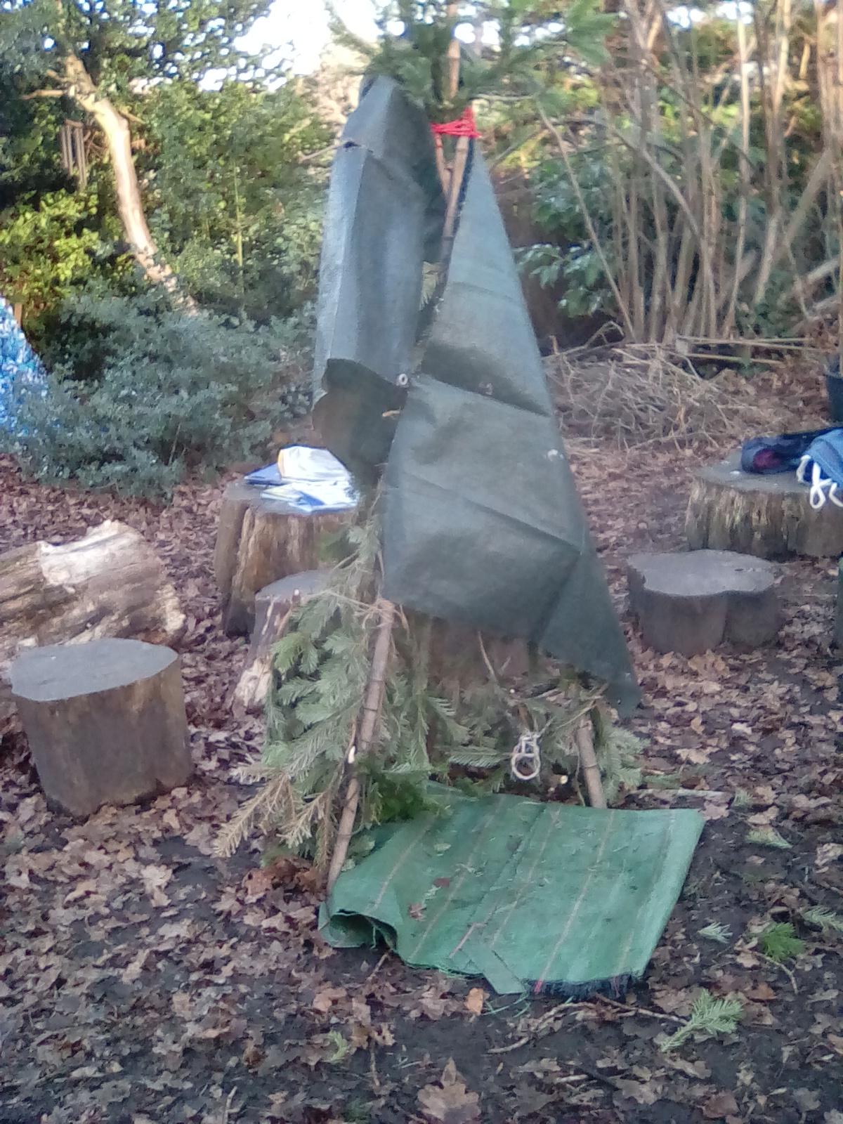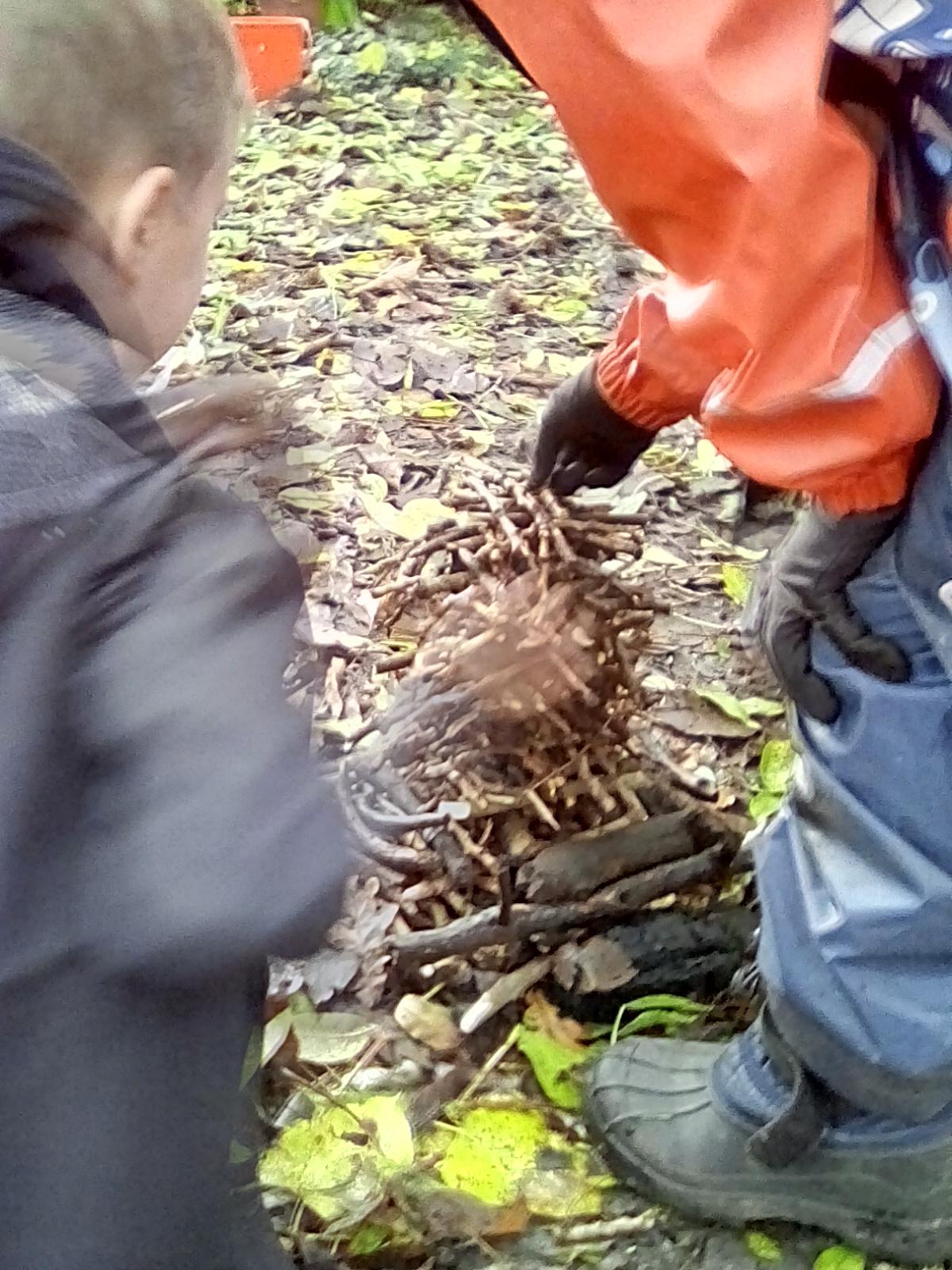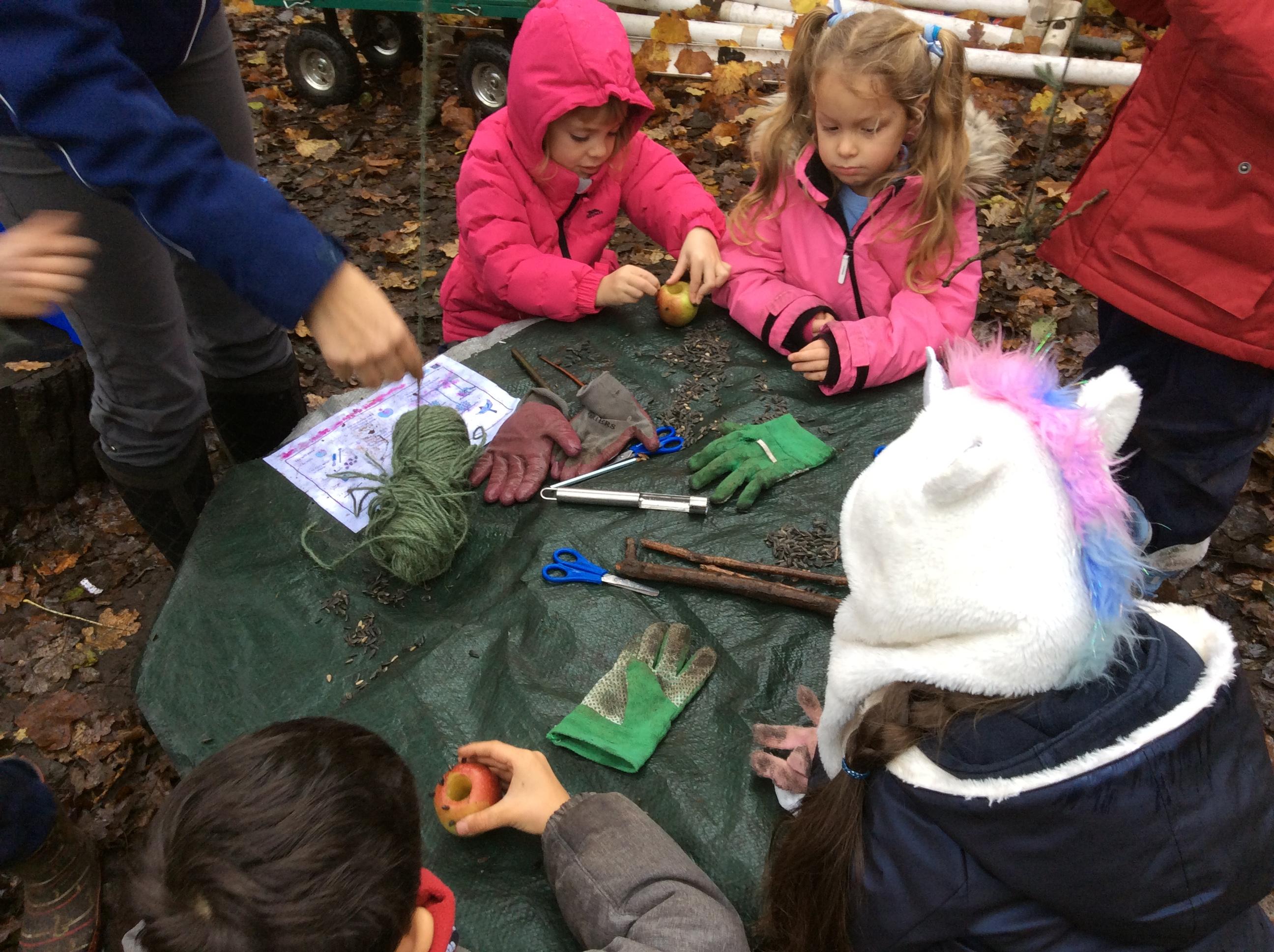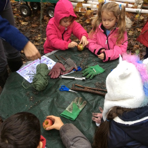 This week Wrens have been making and decorating their own sticky sticks, which turned out to be magic and could grant lots of wishes. The children used natural materials found in the forest to decorate their sticks. Nightingales had a go at shelter building using tarps and the catering team got to grips with the Kelly kettle and made hot chocolate for themselves. Owls have made their own bird tables and bird kebabs as well as revising their knowledge of birds during their science based session with Royal Holloway. Robins and Doves were looking at the difference between natural and man-made materials. Robins collected lots of materials from the forest floor and sorted them into those materials we would expect to find in the forest and those we would not. Doves looked at how long it would take man-made materials to decompose and they had a go at guessing how long it would take some of the objects we found to decompose. Both groups finished their session by seeing what they could make using only natural materials. Both groups had some very creative ideas.