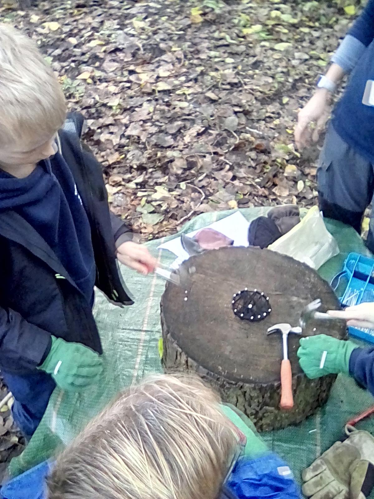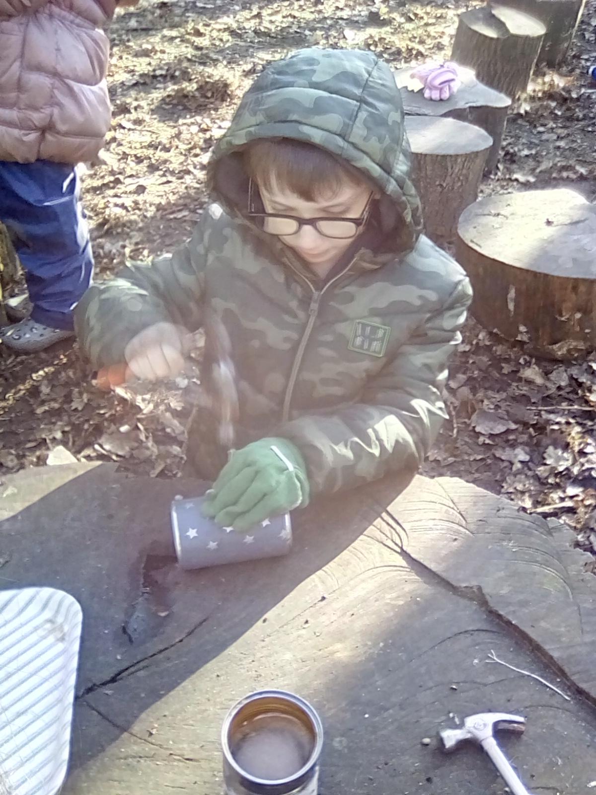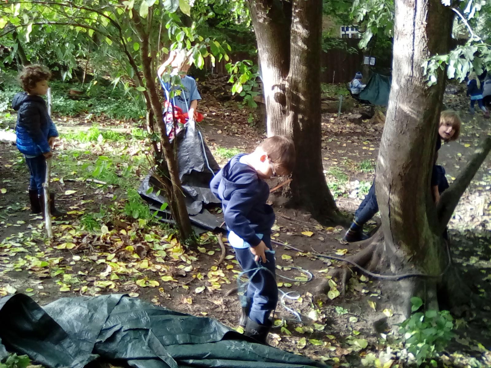 This week Wrens have been making and decorating their own sticky sticks, which turned out to be magic and could grant lots of wishes. The children used natural materials found in the forest to decorate their sticks. Nightingales had a go at shelter building using tarps and the catering team got to grips with the Kelly kettle and made hot chocolate for themselves. Owls have made their own bird tables and bird kebabs as well as revising their knowledge of birds during their science based session with Royal Holloway. Robins and Doves were looking at the difference between natural and man-made materials. Robins collected lots of materials from the forest floor and sorted them into those materials we would expect to find in the forest and those we would not. Doves looked at how long it would take man-made materials to decompose and they had a go at guessing how long it would take some of the objects we found to decompose. Both groups finished their session by seeing what they could make using only natural materials. Both groups had some very creative ideas.