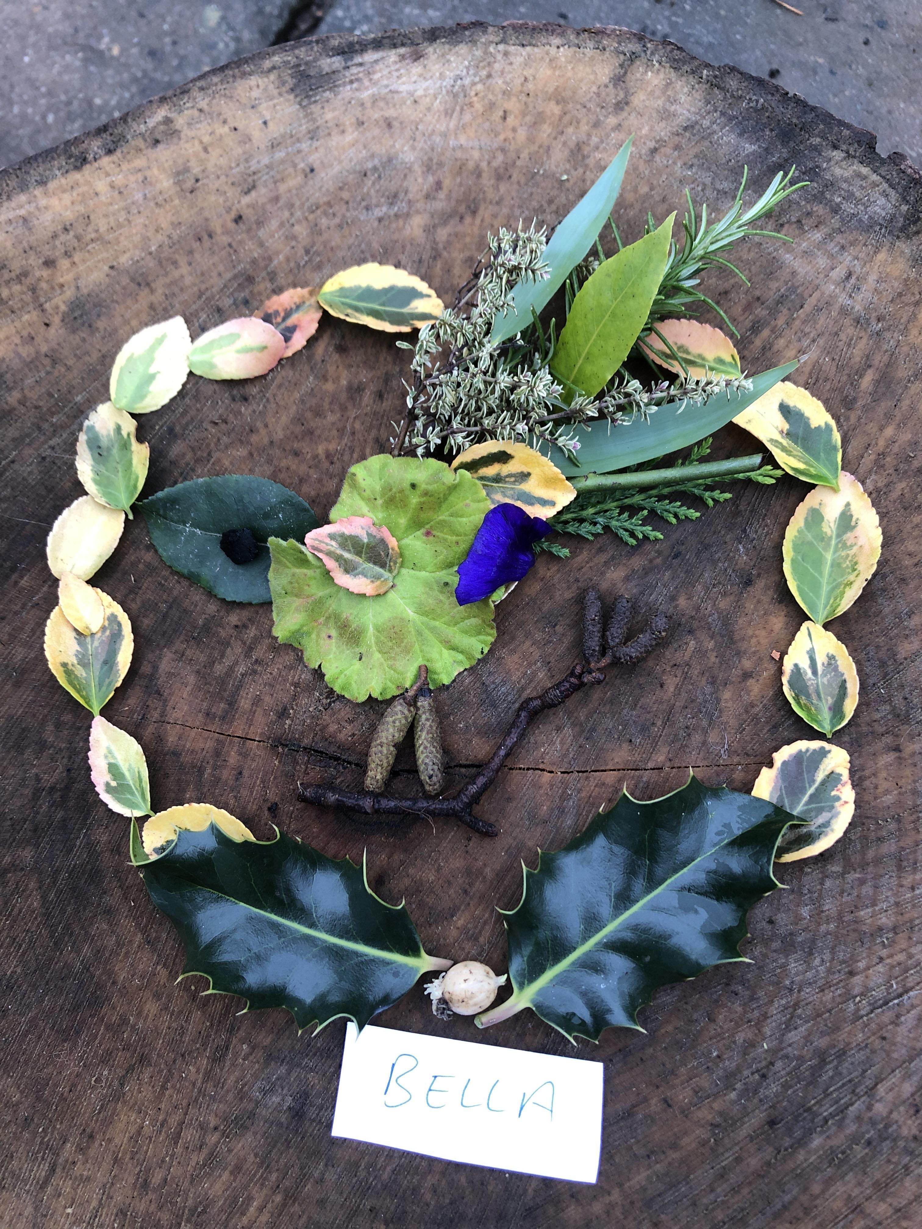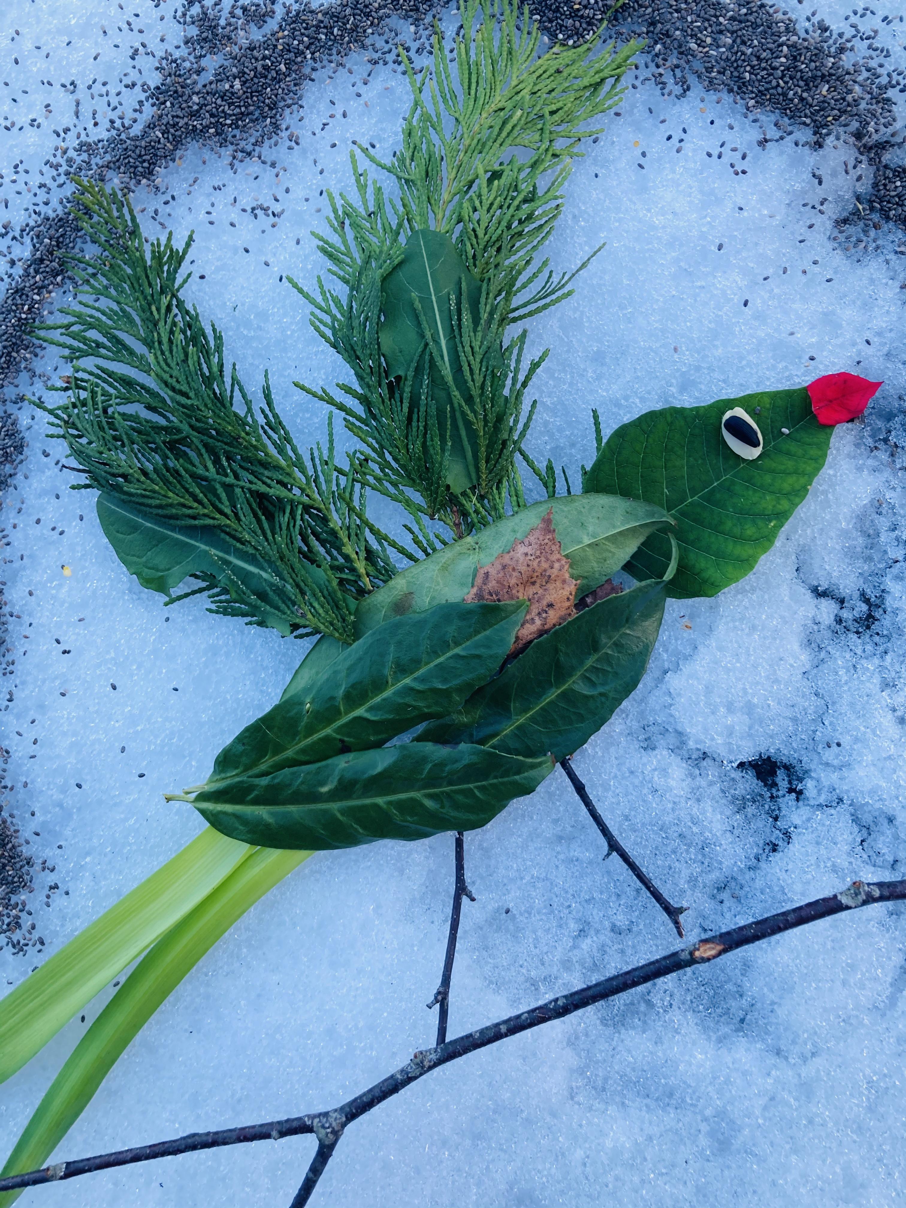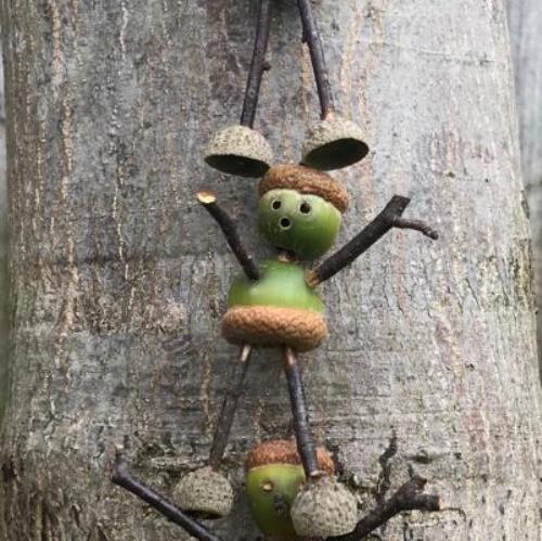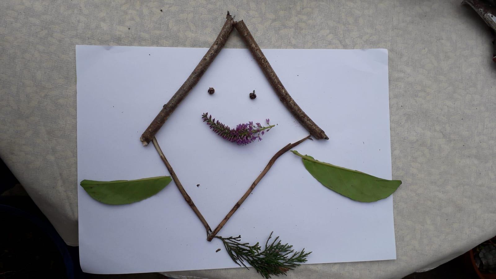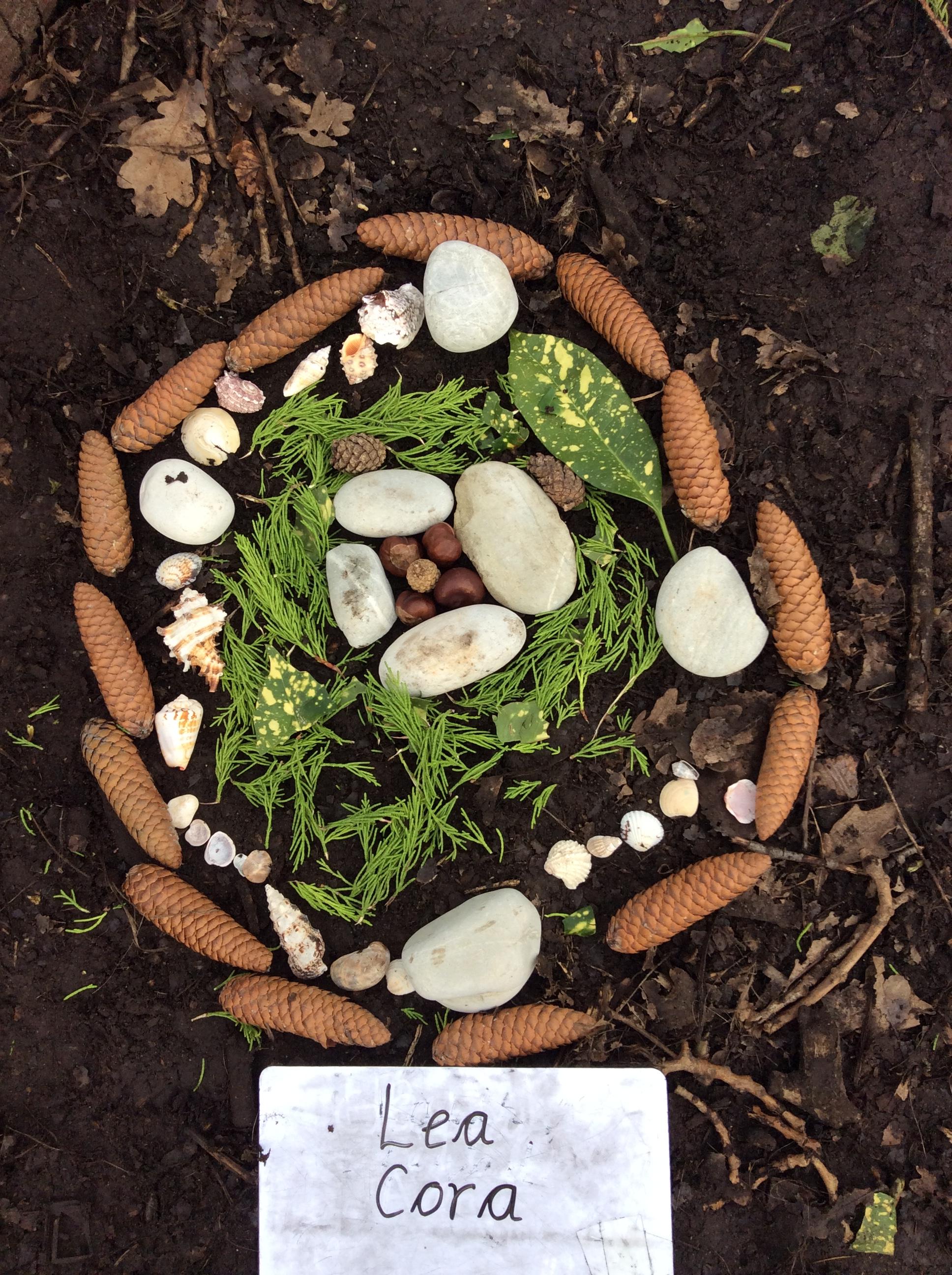 Wrens looked around the Forest for natural items with which to create facial features....leaves for hair, stones for eyes, sticks for mouths, seeds for earrings....!