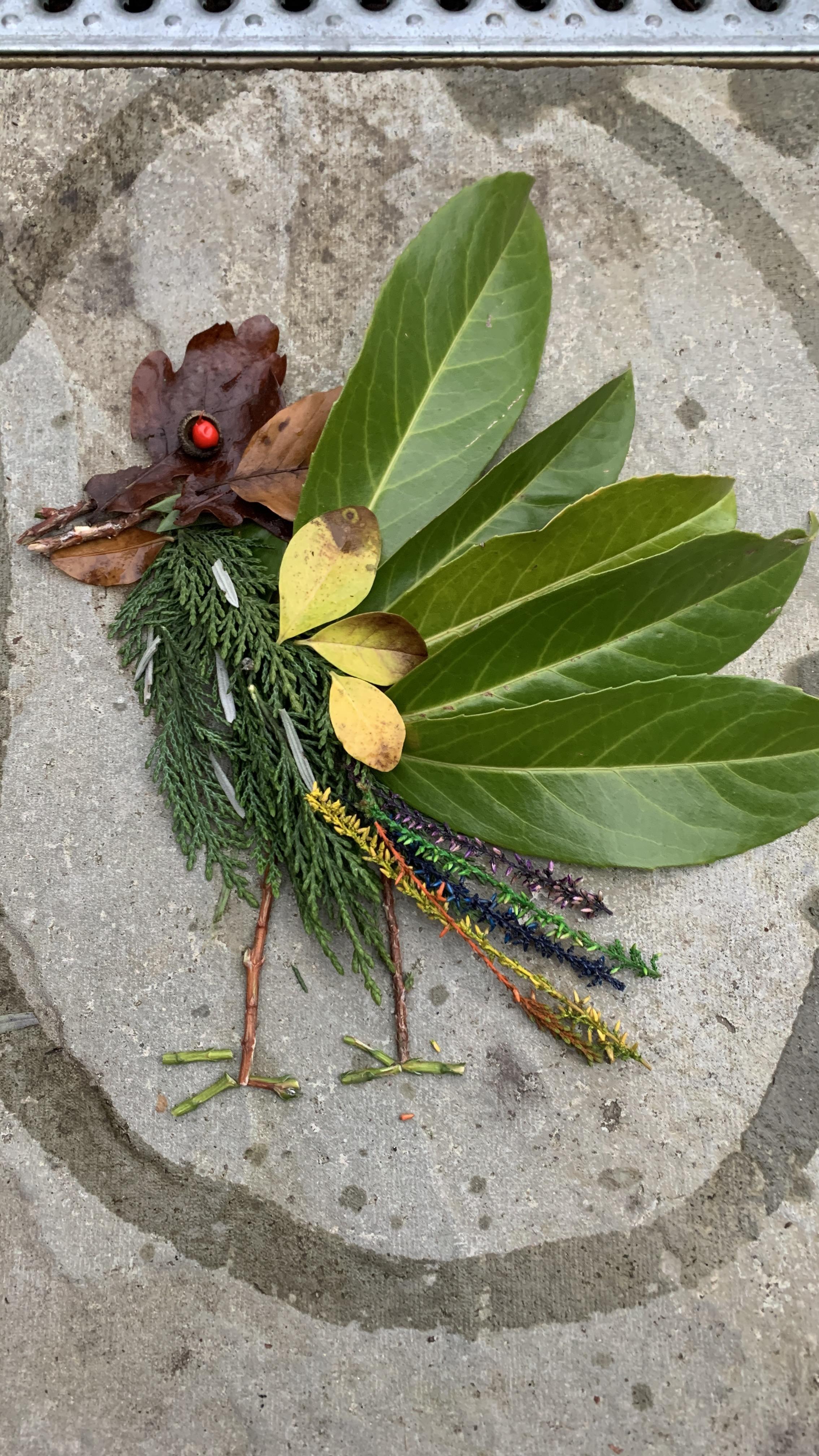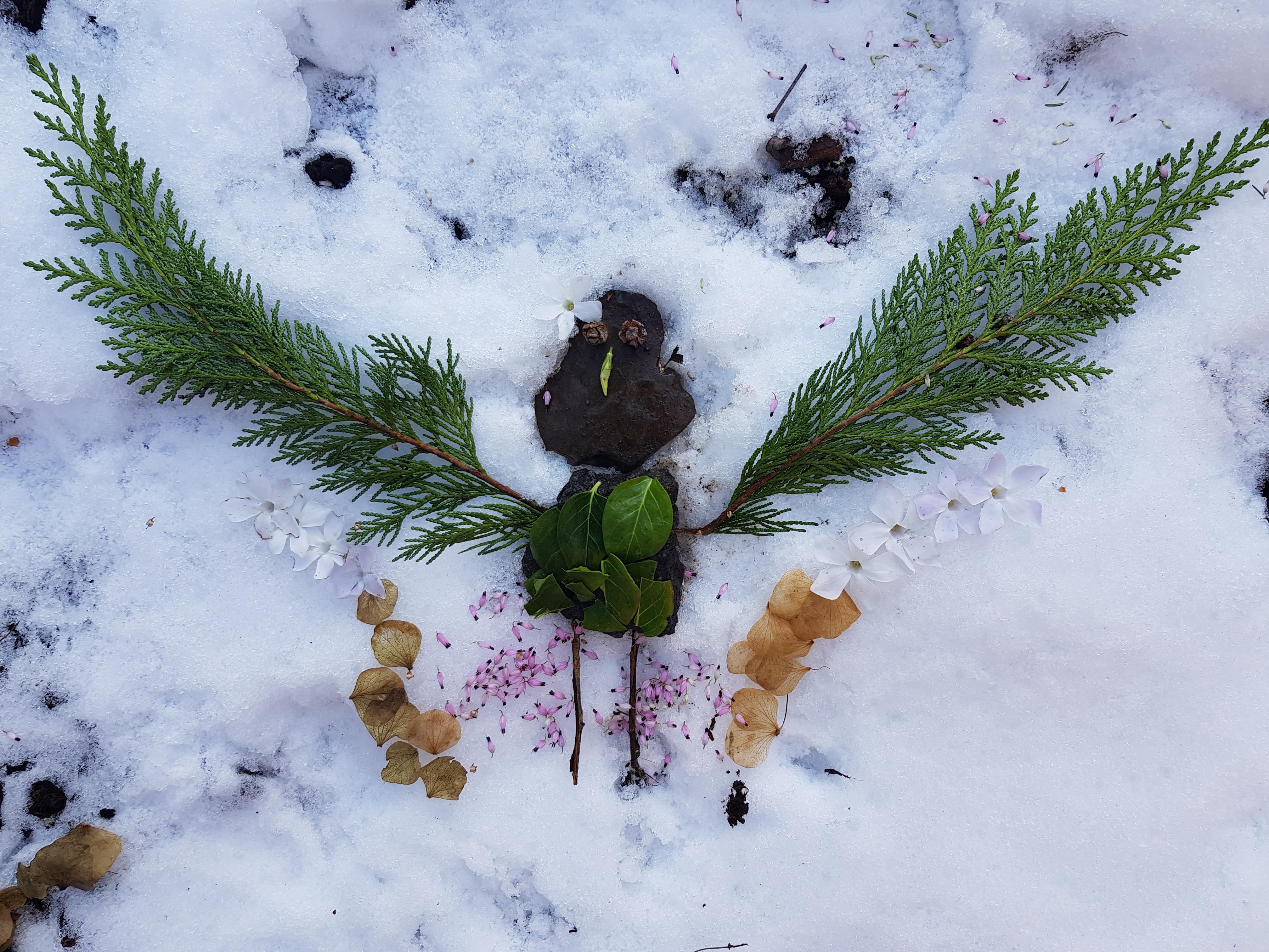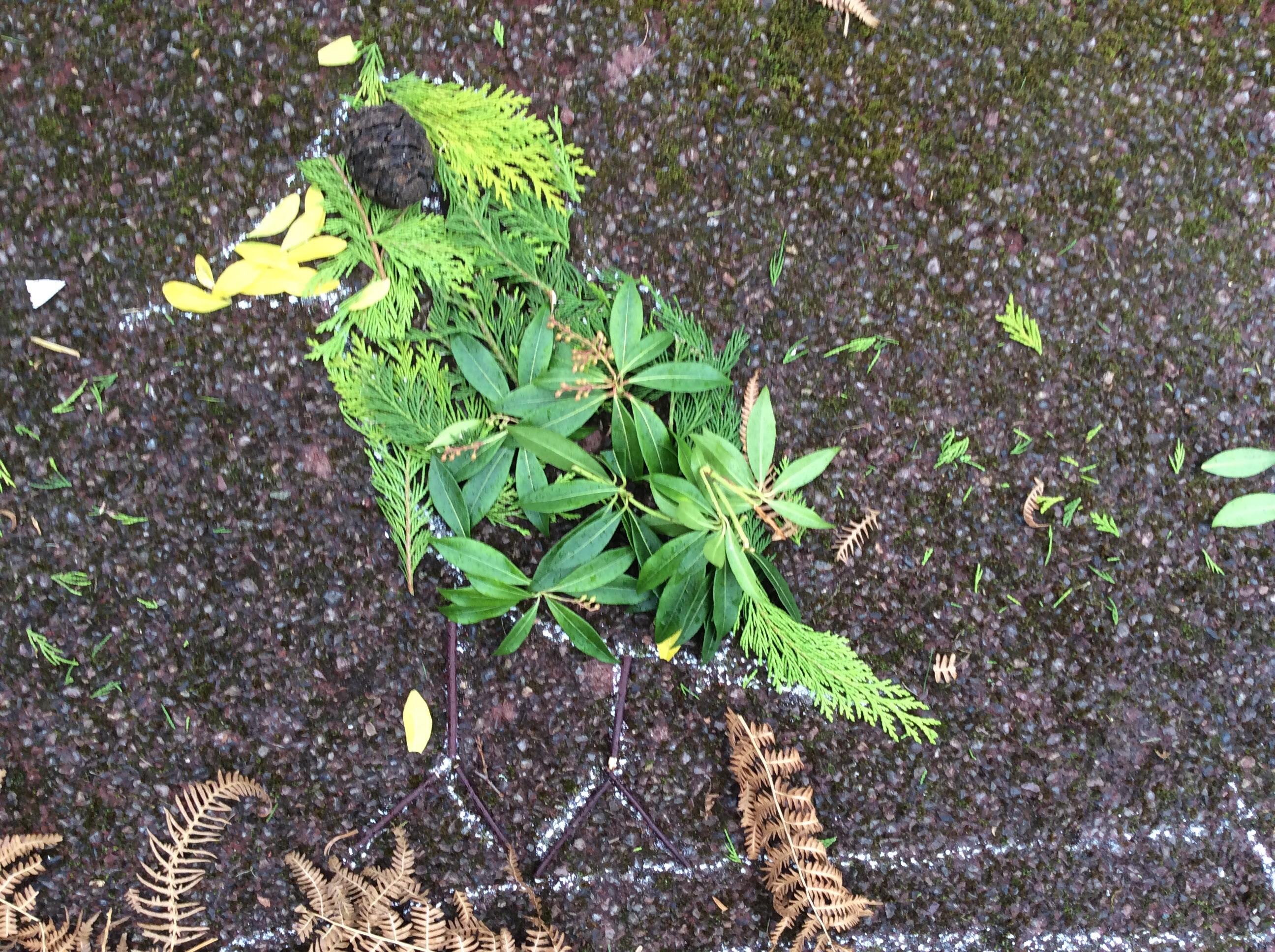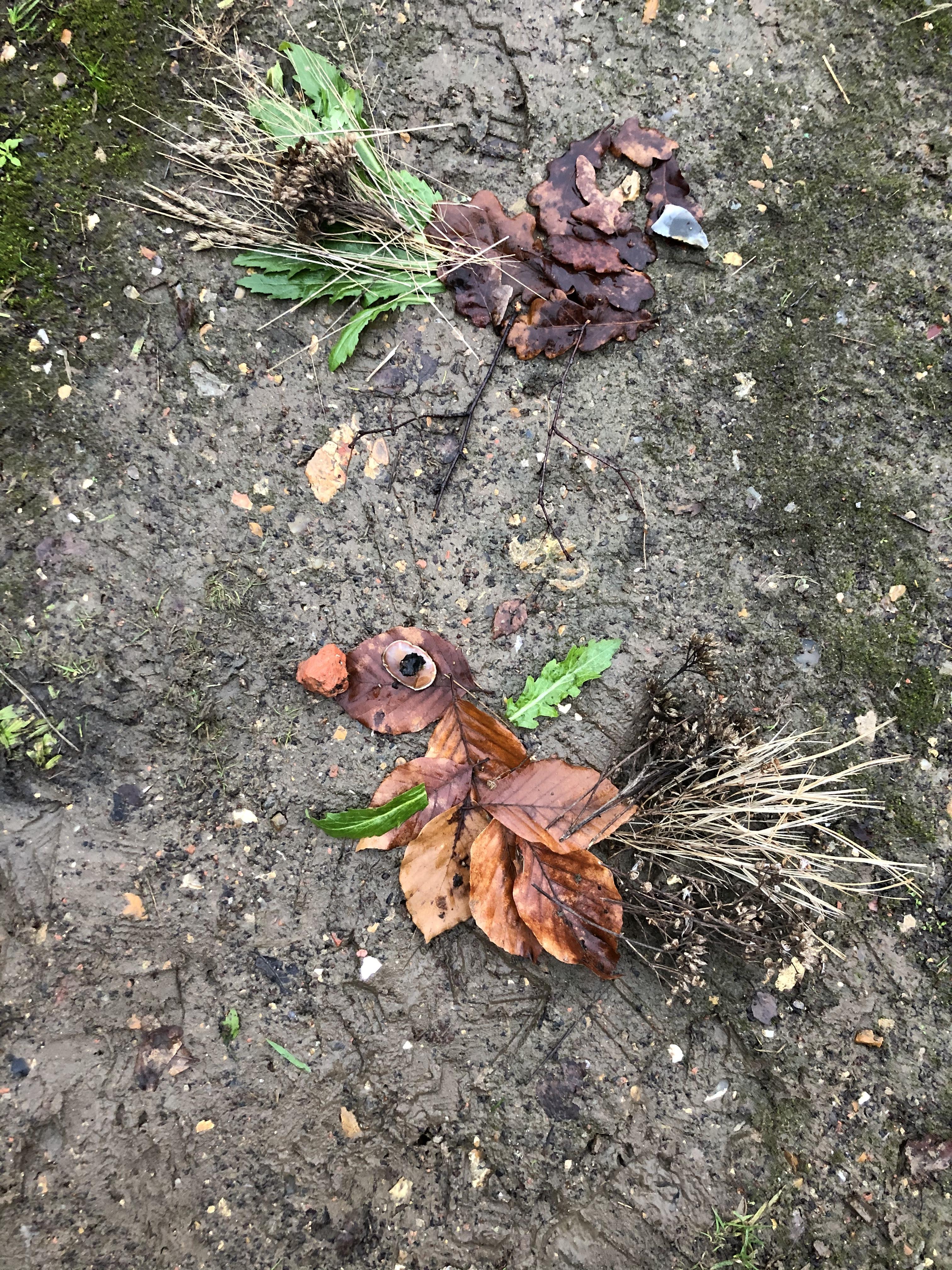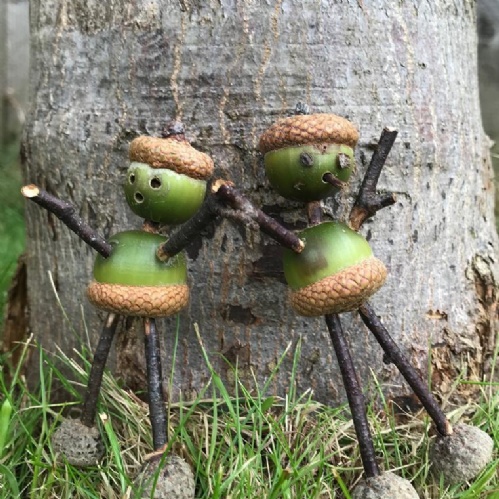 Wrens looked around the Forest for natural items with which to create facial features....leaves for hair, stones for eyes, sticks for mouths, seeds for earrings....!