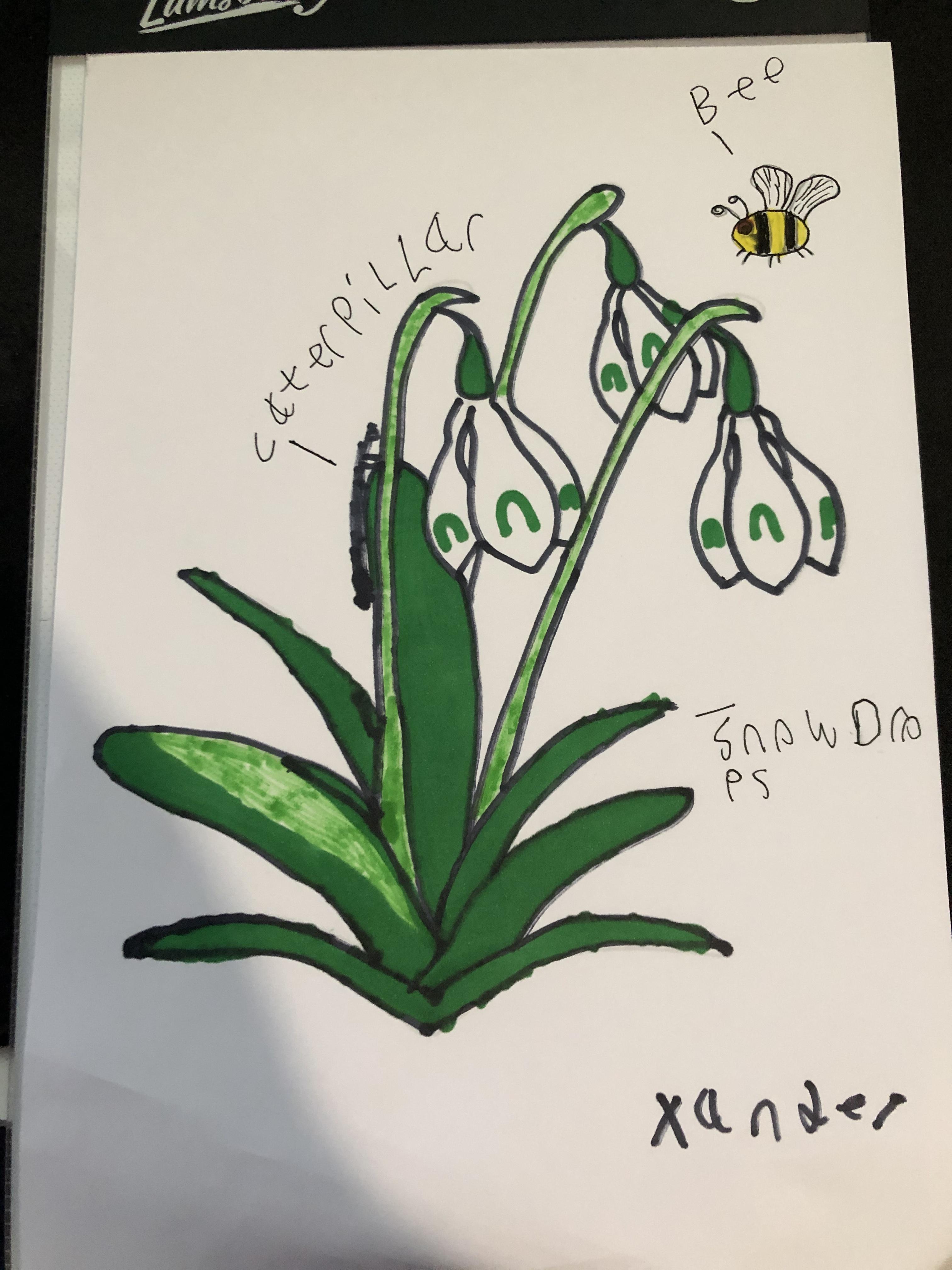 Well done to all the children who have been out and about spotting signs of spring ! I have also been amazed with the work you produced at home this week on creating a pieces of artwork on snowdrops. Take a look below at some of the beautiful work sent in.