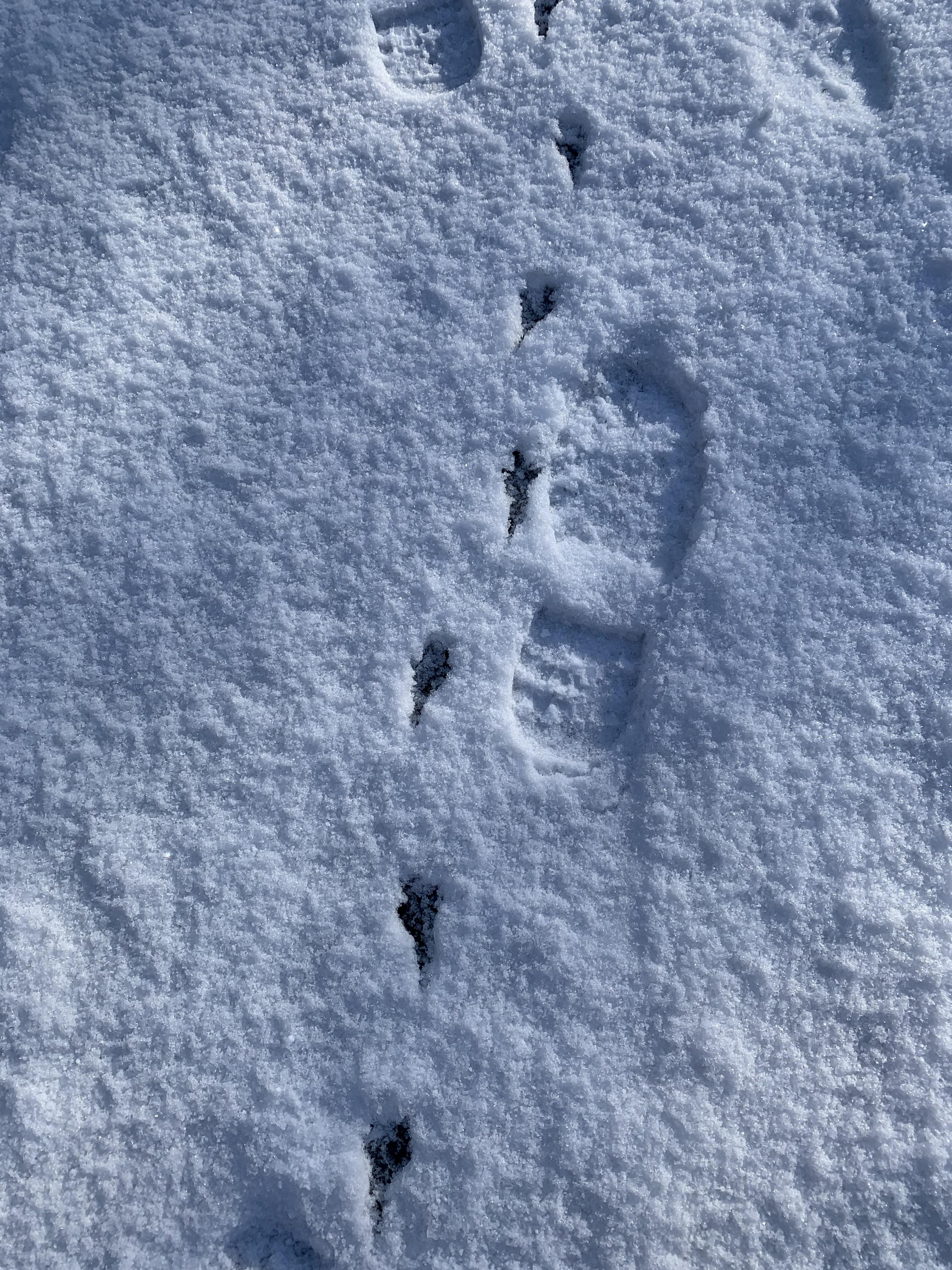 As I am sure you realised most sessions were cut short this week or missed completely due to school being closed. Wrens did manage to have a session on Wednesday where they made bird feeders, had a go at making clay birds and went on a bird hunt. Many could remember the names of 2 or 3 common garden birds by the end of the session ! Kingfishers also made some bird feeders and had a go at drawing site maps ready for their brochure on our Forest School that they are currently writing in class. Will be re-visiting our work on The Big Schools Birdwatch as the weather looks warm enough for us to remain still enough to bird spot! In the meantime have a look at the picture of the forest in the snow... and can you guess the mystery visitor from the tracks??? Wrap up well this week everyone as this week we have rain !!