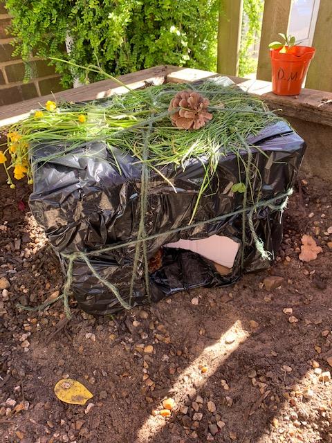 Wrens found a letter from The Giant from Jack and The Beanstalk when they arrived in Forest School. The Giant challenged them to design a new recipe for him to stop him eating Jack! and some of us built a shelter for Jack so he could hide from The Giant. Nightingales enjoyed finding out about frogs by looking for information on our frog trail. They also loved newt spotting! Doves and Robins had a creative session - Robins created their own rock bands and performed for us in the Forest. Along with the Doves, some children created works of art inspired by Andrew Goldsworthy. Finally... Owls had a brilliant session with Royal Holloway getting up close with locusts, African land snails, moths, stag beetle lava and making wormeries. What a brilliant week !