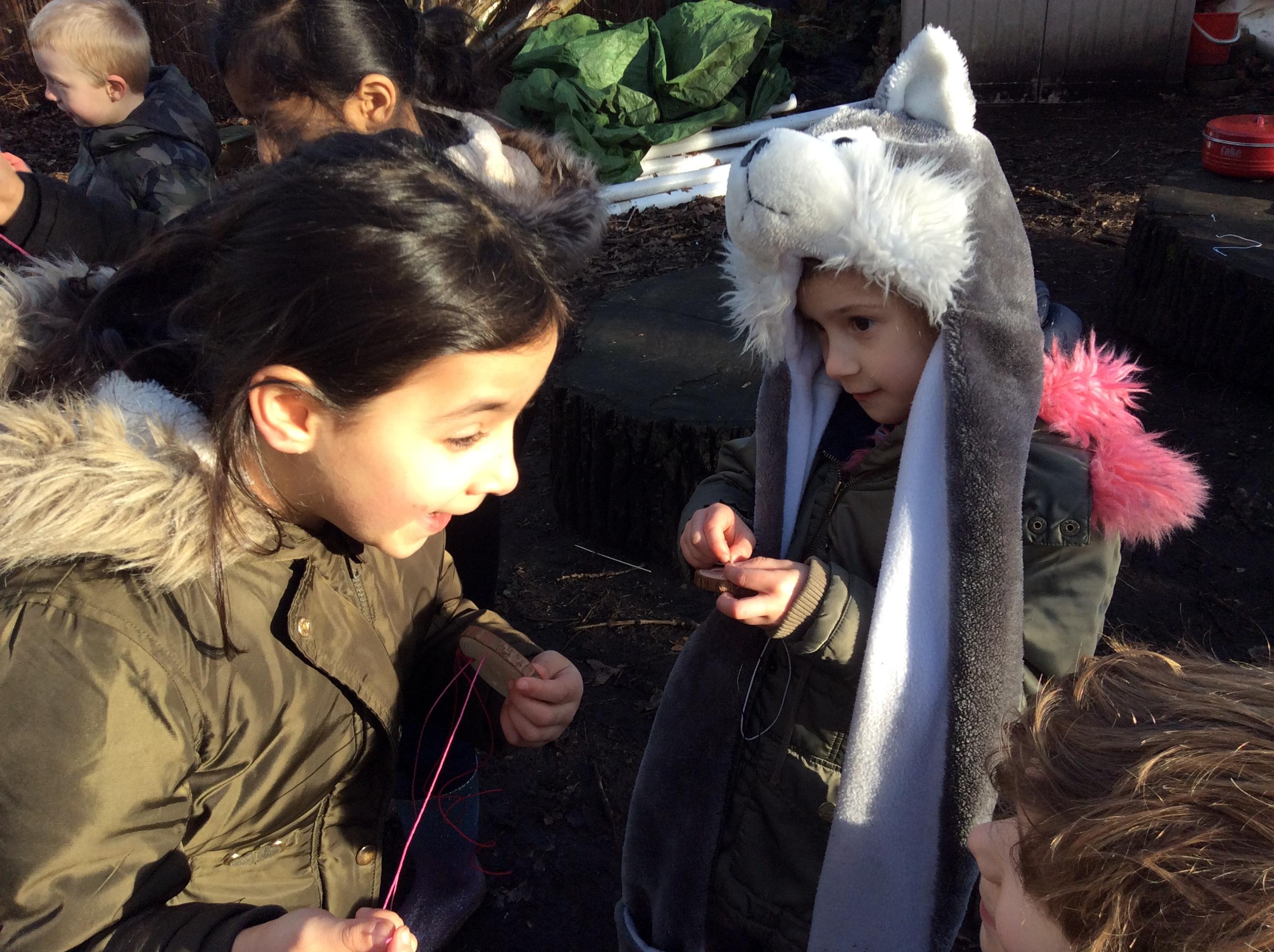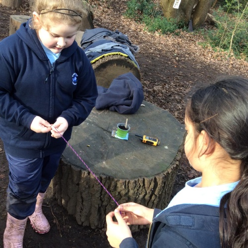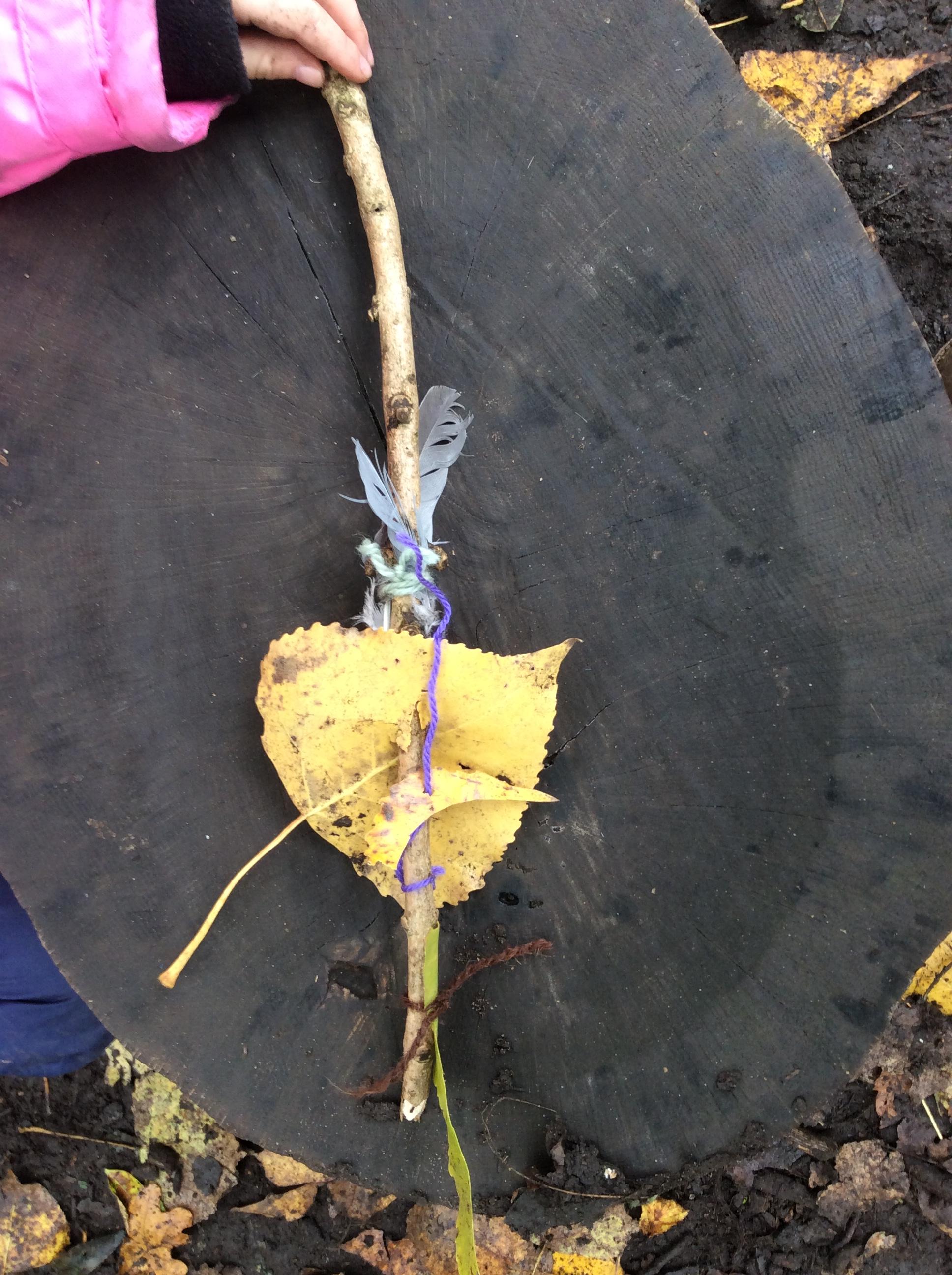 In Robins the children made nature sticks by collecting objects that interested them and then working on knots by attaching the objects to string and then onto their stick. Some of the children also had a go at collecting objects to match an adjective e.g. spiky, thin, fat, round, rough, smooth. We learnt the names of 3 trees, try asking your children if they can name the most popular tree in our forest? Marshmallows finished the session off nicely!
