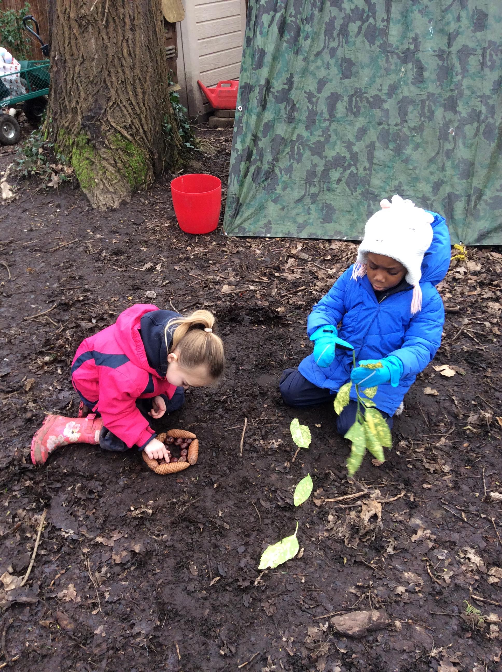 Robins and Doves have had great forest school sessions this week. Both classes have been thinking about what an animal needs to survive. They have learnt that wood mice live in burrows under trees and that they feed on berries, nuts and seeds. In Doves they needed to ensure that they included everything a wood mouse would need to survive. In Robins the children were very creative, they made traps to catch predators like foxes and made their wood mouse a slide and a playground.