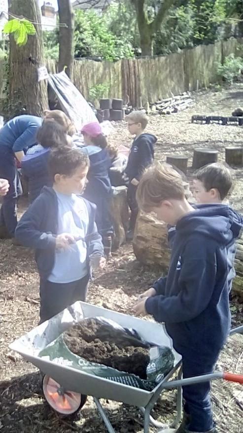 Our first sessions of the Summer Term have been lovely. All groups have enjoyed looking at how much the forest has grown and changed over the holidays. The trees are now fully in leaf and we have crops of spring flowers including daffodils, bluebells, forget-me-knots and crocus growing in the forest and along the banks. The saplings that we planted back in November are doing really well and fully in leaf. This week the younger classes Wrens, Robins and Doves have been making colour wands to represent the spring colours appearing in the Forest. They have also be visiting the pond area to check on the newts! Some of Robins did an amazing job weeding the allotment this week and helping prepare the beds for planting. I was hugely impressed with their enthusiasm and hard work!