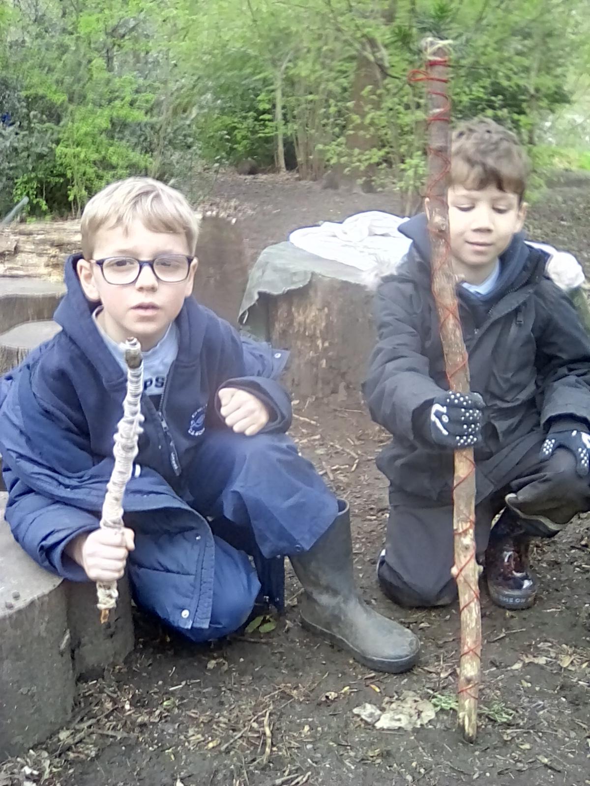 I hope you all enjoyed a good half term break and enjoyed the warm weather! This week we had a mixed bag of weather in Forest School. Wrens had a very warm session on Wednesday but then Nightingales got very wet as the heavens opened and we all got very wet on Thursday! Despite the weather the children have had a great week. Wrens, Robins and Doves have enjoyed a week themed around magic. They have been making magic mud potions, magic wands and broomsticks that we were long enough to fit some friends on! Some of the wands were very creative as were the ideas for what the wands could be used for. Nightingales had their first session of this term in the forest. We spent the session talking about what had changed since they last visited and then following on from the Reduce, Reuse and Recycle session the class had with George McGavin, we looked at plastic bags and how we could reuse them by making kites. The children worked really hard making their kites, they learnt how to tie a clove hitch and a square lashing and hopefully found some time at home to have a go at flying them? Next week we will be continuing on with our theme of reusing and recycling and we will be having a go at turning plastic bottles into bird feeders. Please could all children in Nightingale Class ensure they have a plastic bottle with them in school for Thursday's session. Thank you