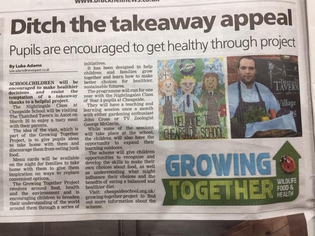 " Today there is a growing awareness of the effects we are having on the natural world and many of us are thinking about how we can live healthier and more sustainable lives. Cheapside resident Mr John Cross has enlisted the help of myself, TV Zoologist Dr George McGavin, The Thatched Tavern and Cheapside School to develop an exciting new project. Growing Together is aimed at helping children understand the links between food, health, well being and the environment.