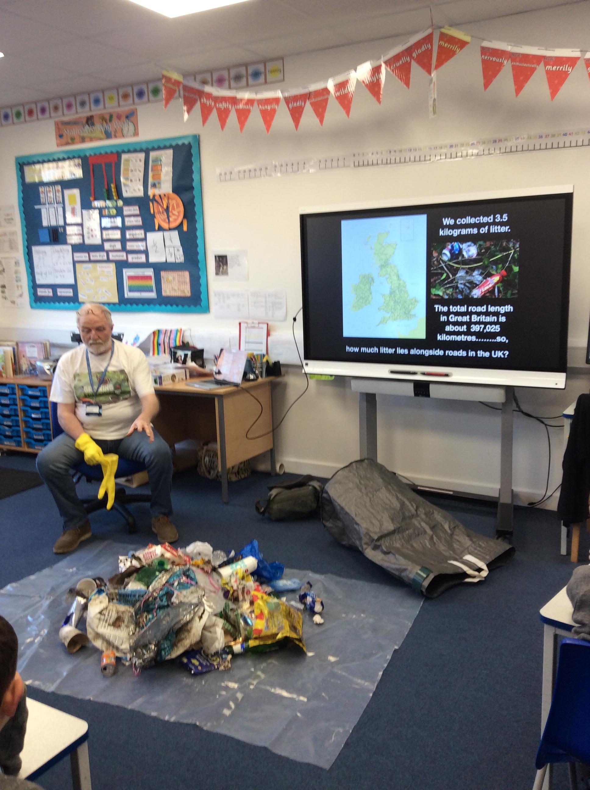 The children have had a great session today with George McGavin on reducing, reusing and recycling and the importance of looking after the environment. George began the session by showing the children all the rubbish that he had collected on a litter pick from the top of Watersplash Lane to Cheapside School, a distance of just 500 metres!! They were rather shocked and surprised at the results of 3.5kg of litter !... but it began making them think! George then talked to the children about how much litter we then might find alongside the road networks across the UK. This led into talking about the problems with plastics, palm oil and where we dispose of our litter. The children have been tasked with a recycling challenge this month. Please click on the links below to find out about the challenge.
