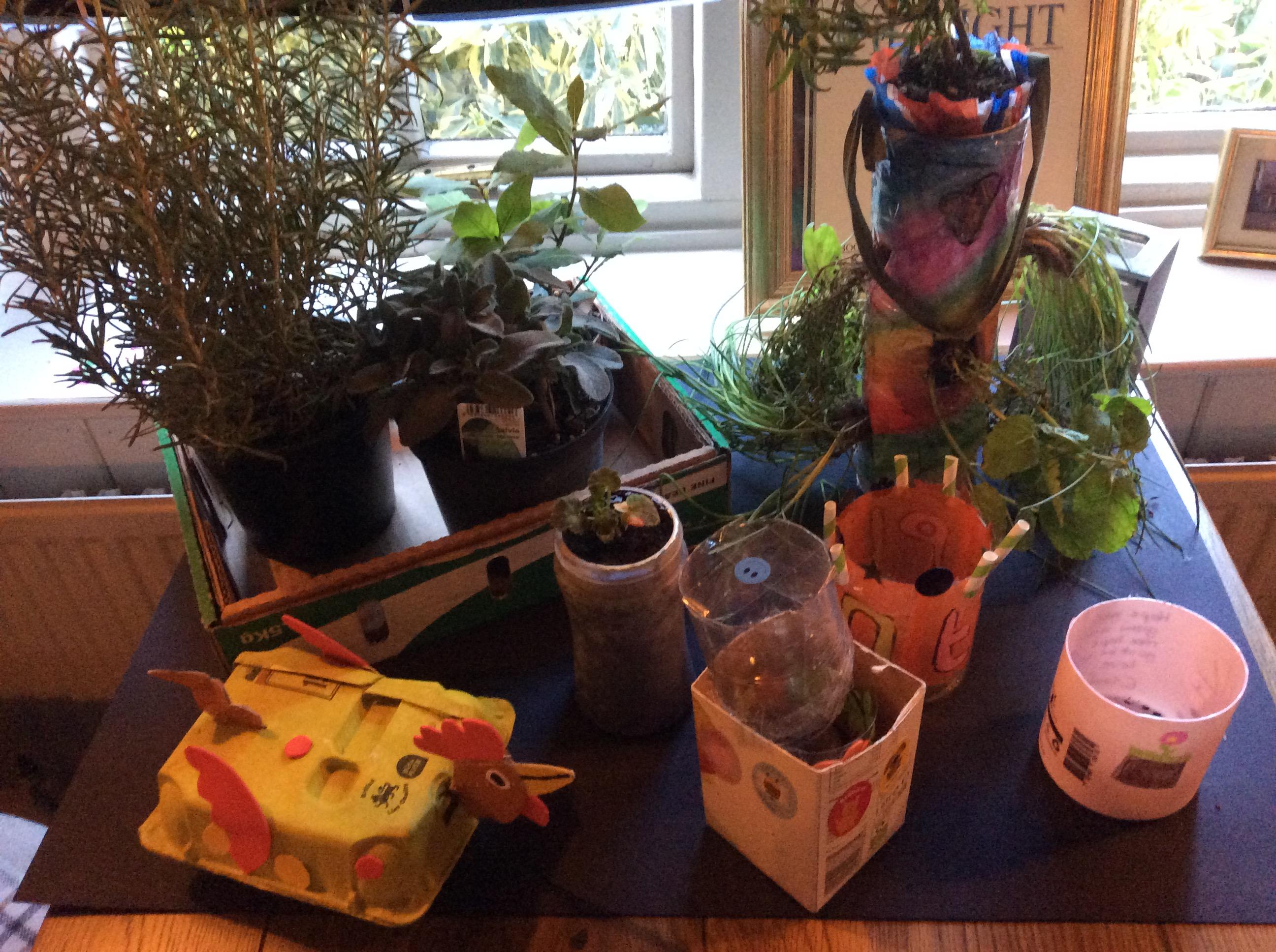 On the way into the Thatched, families could see the work produced by the children for their home learning task following our Reduce, Reuse and Recycle session. We had some brilliant upcycled plant pot holders !