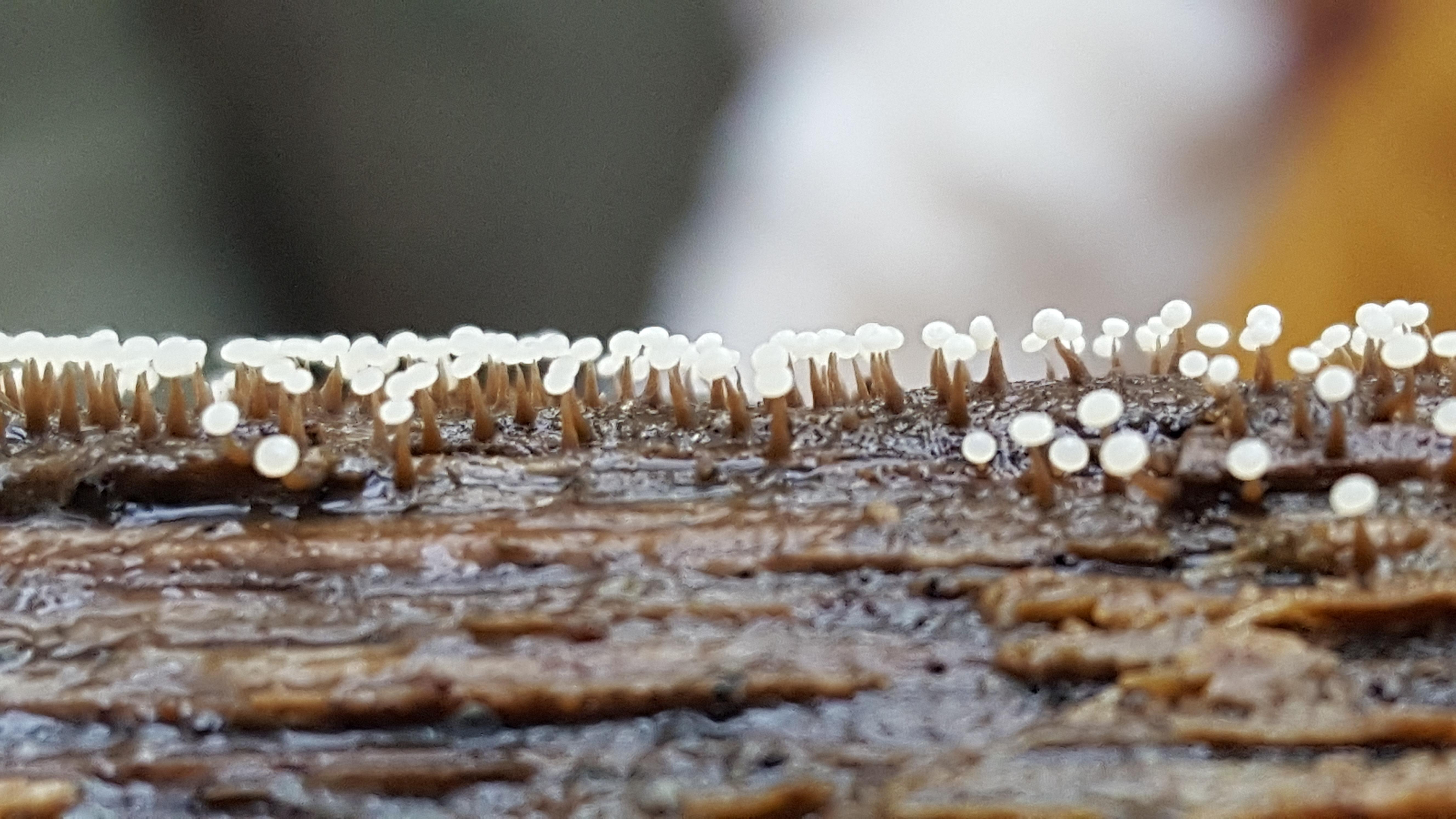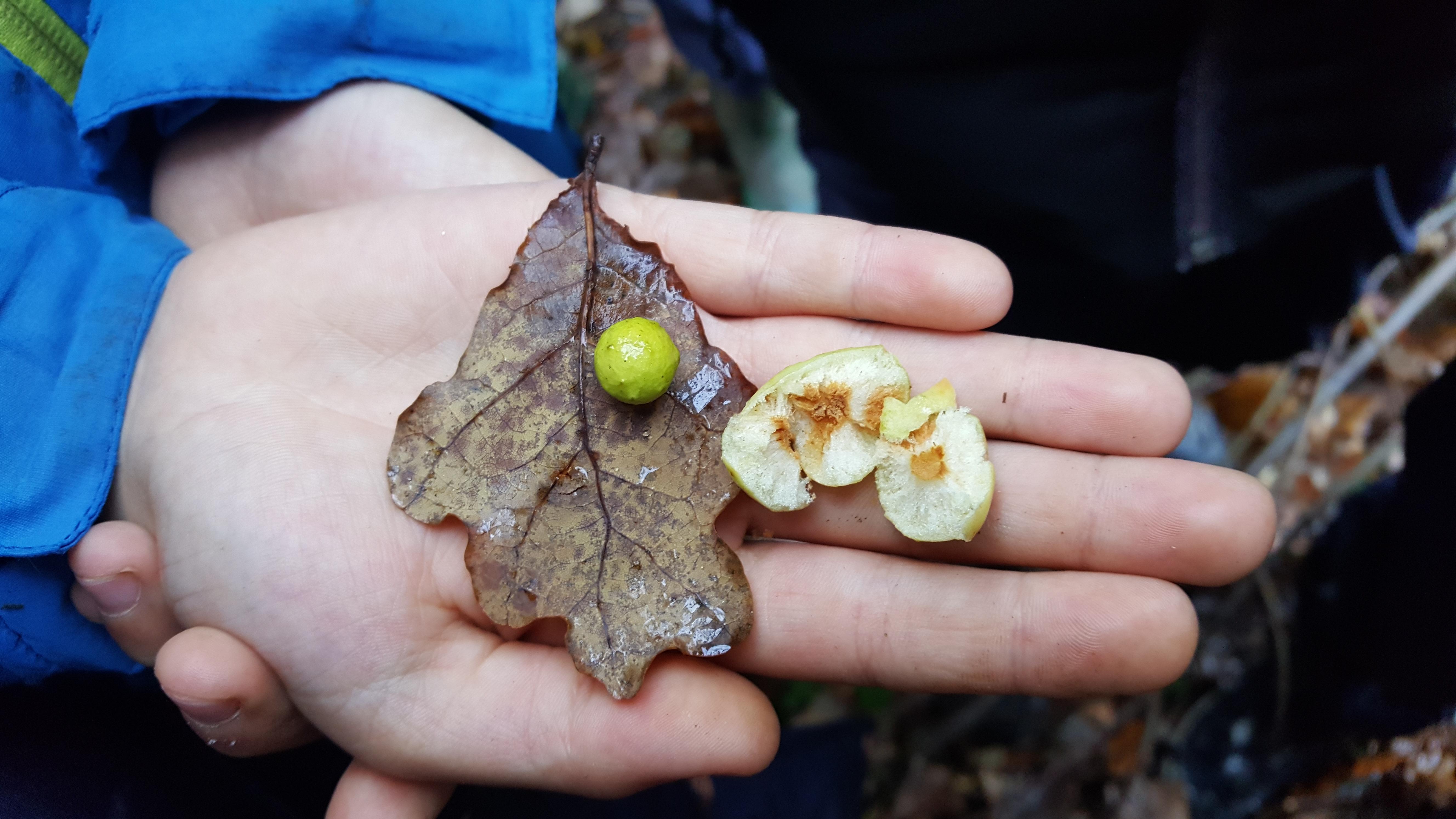 Take a look at the photos below to see some of the things we discovered. In order, we found.. .. fruiting slime mould, coral spot fungus, fairy cap fungus, fruiting slime mould (but a different type discovered by an observant pupil), oak galls and 2 species of lichen.