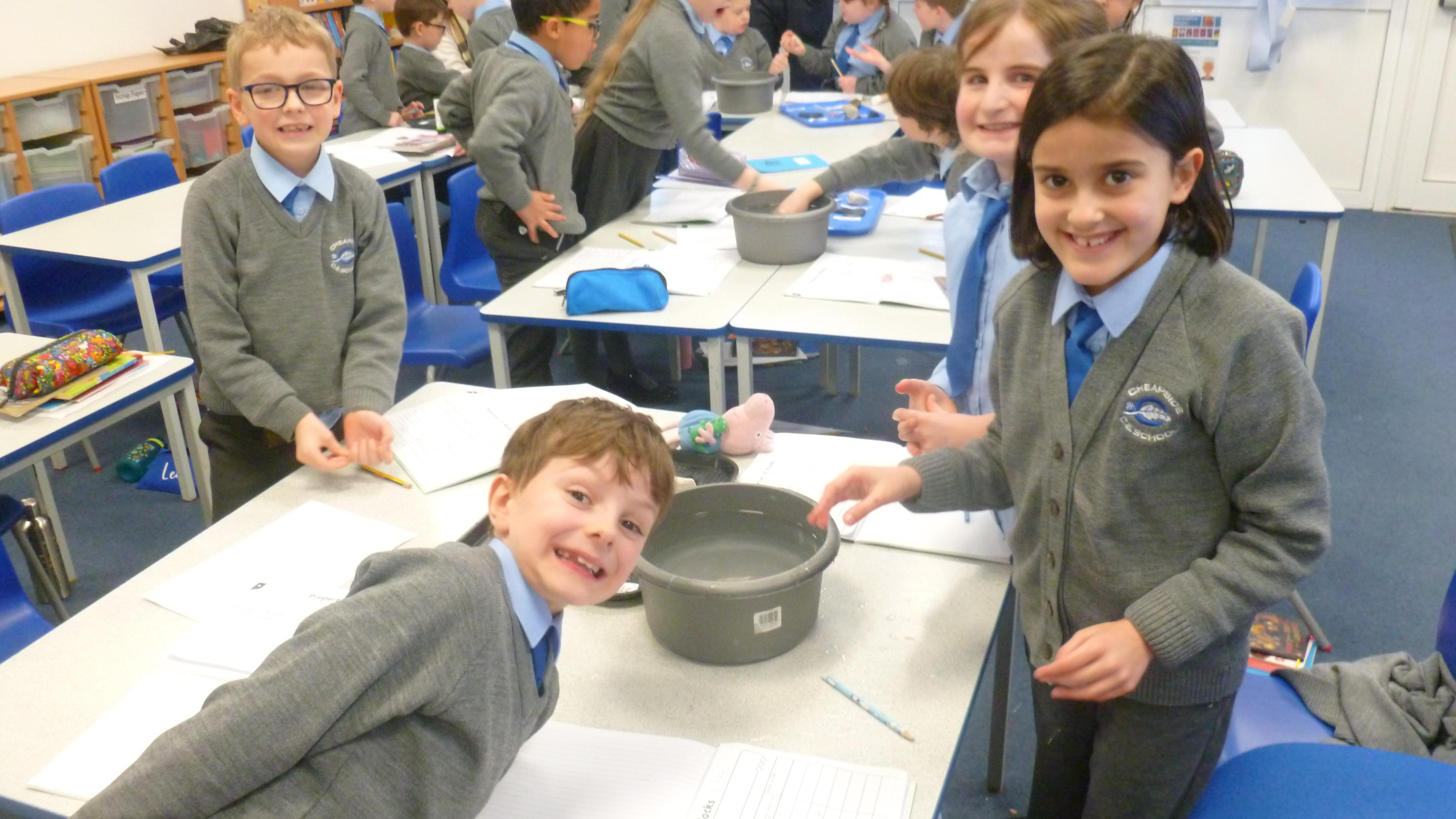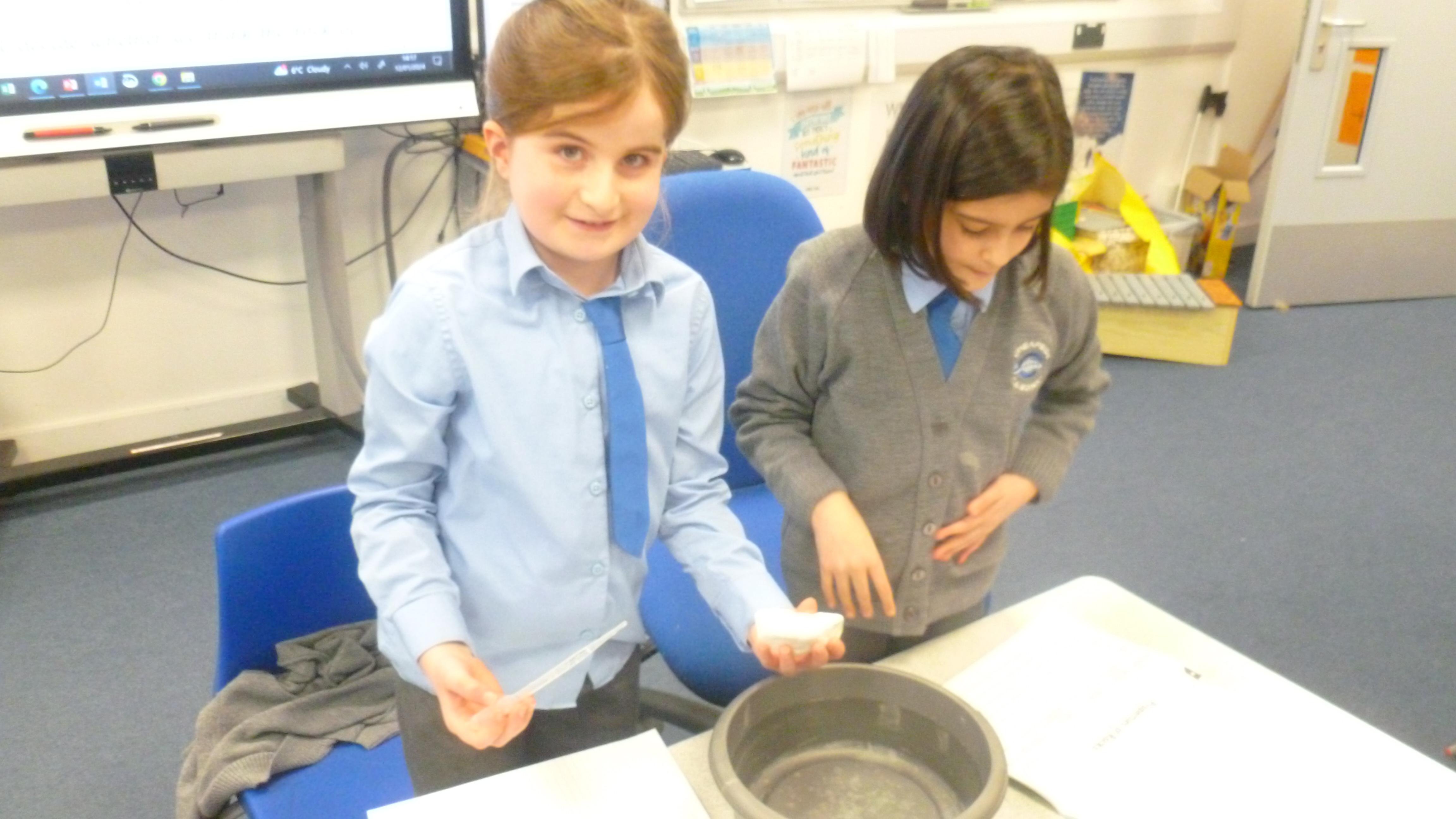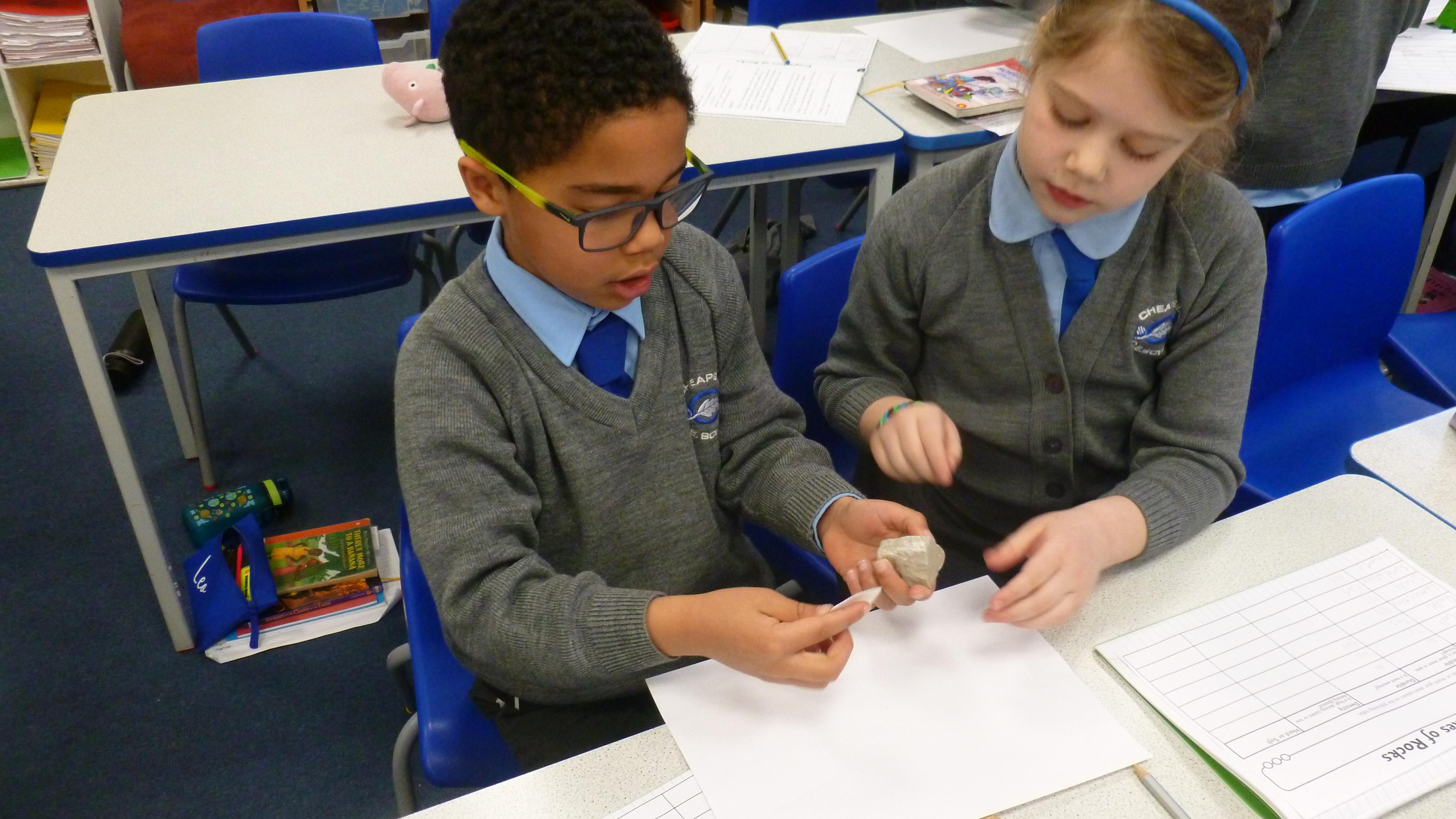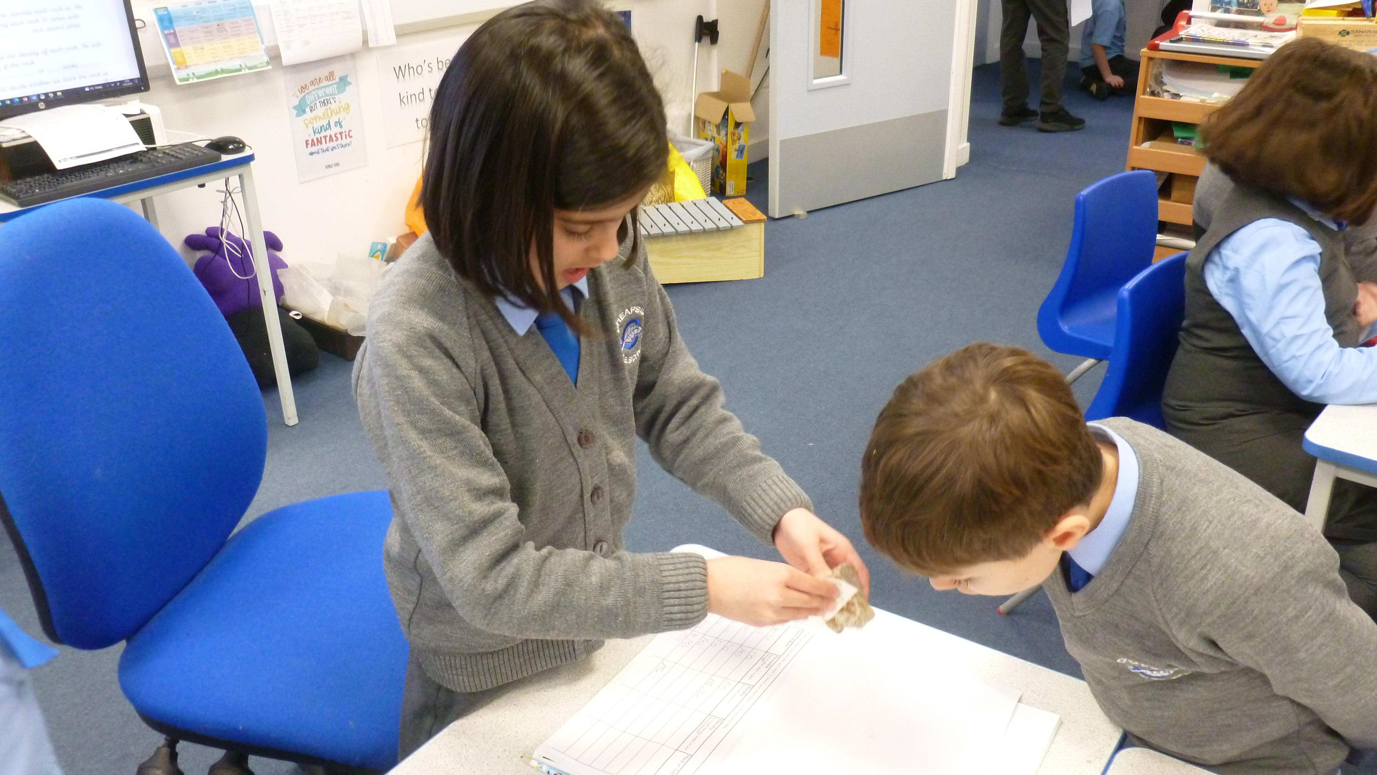 Today, we embarked on a full-scale investigation of grouping Rocks according to their properties. Before starting the experiment, the children made predictions and thought about their method. We also talked about what a 'Fair Test' is. They then worked in small groups with 7 different types of rock to determine the permeability, the durability and the density of each. The children did brilliantly learning all this new scientific vocabulary! They then decided whether each rock was hard or soft. Please look at the slideshow of photos below to see how brilliantly the children worked together in their groups, as they made their discoveries!