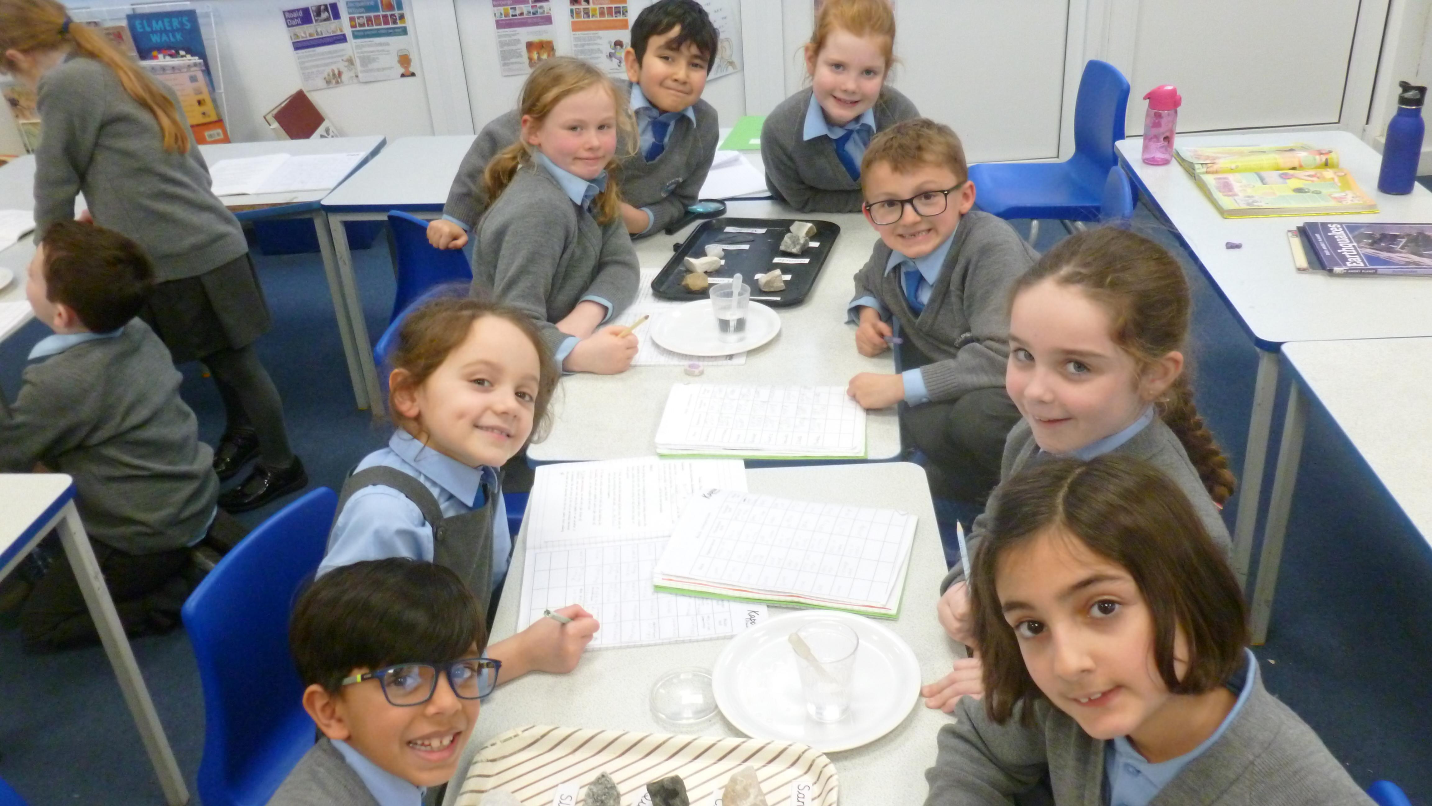 We embarked on a full-scale investigation of grouping Rocks according to their properties. Before starting the experiment, the children made predictions and thought about their method. We also talked about what a 'Fair Test' is. They then worked in small groups with 8 different types of rock to determine the appearance, the permeability, the durability (using vinegar to replicate acid rain) and the hardness of each one (by scratching the surface with a nail). The children did brilliantly learning all this new scientific vocabulary! Please enjoy the slideshow of photos below to see how brilliantly the children worked together in their groups, as they made their discoveries!