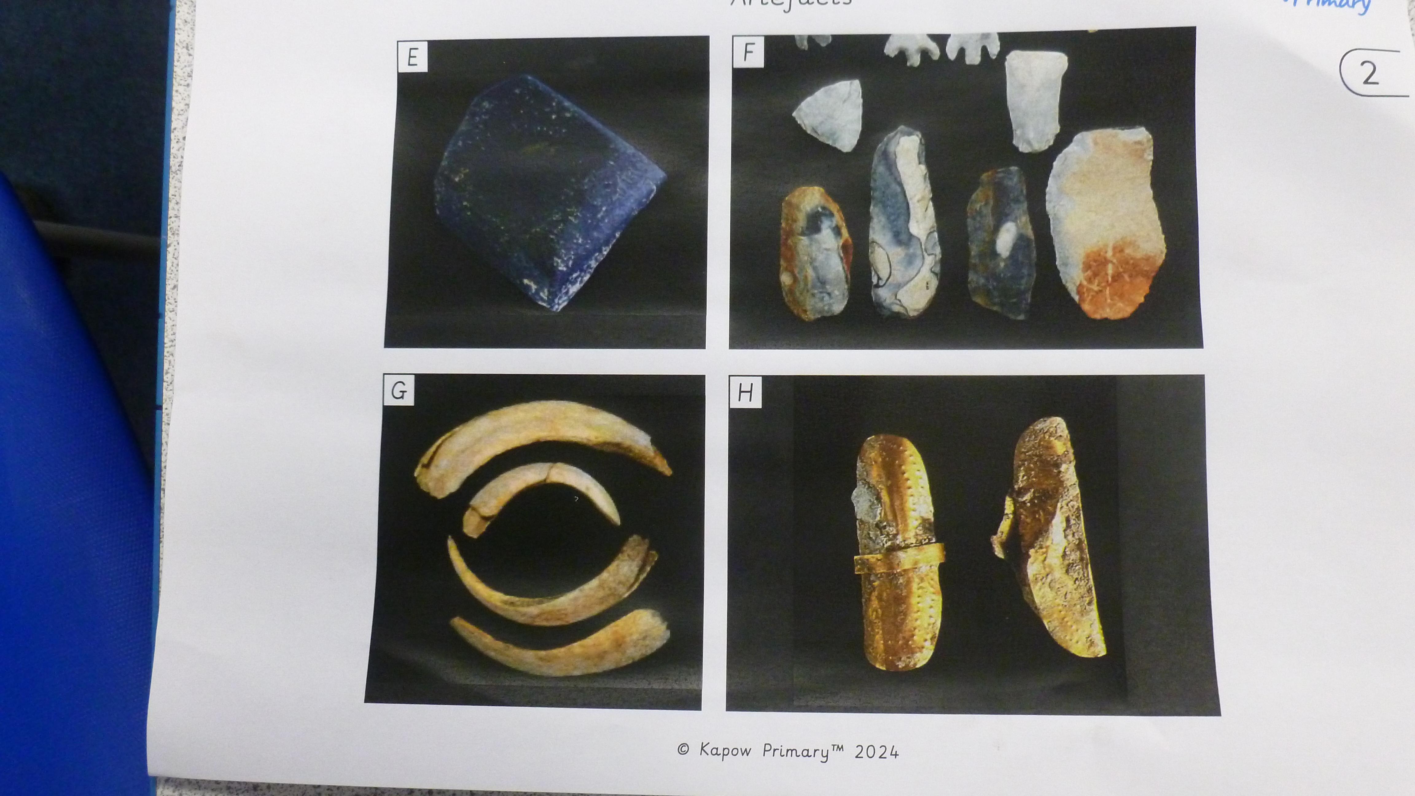In this session, the children explored artefacts found buried in the grave of 'The Amesbury Archer' and thought about what they thought the objects were, what they were used for, what they were made from and what they could tell us about the man himself!