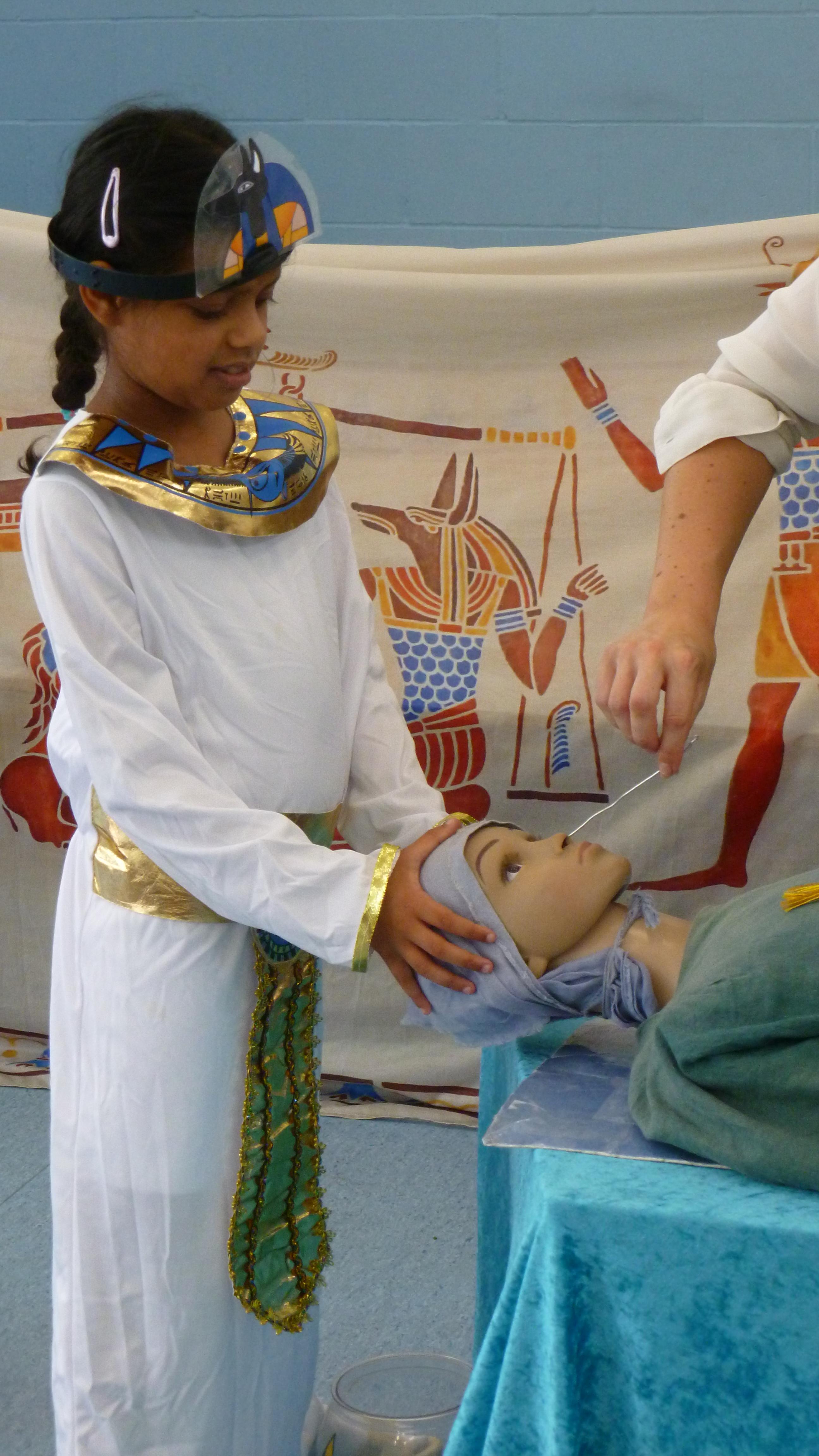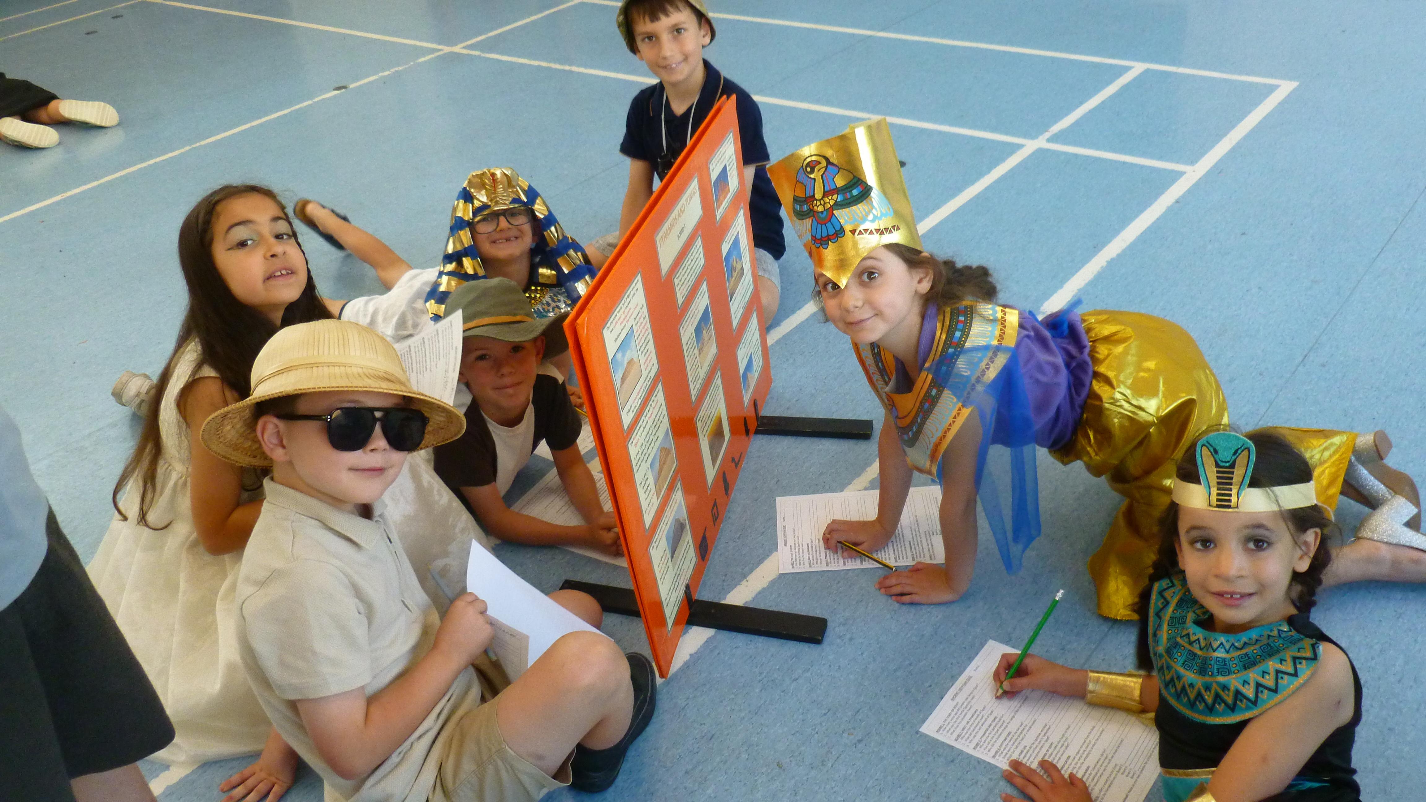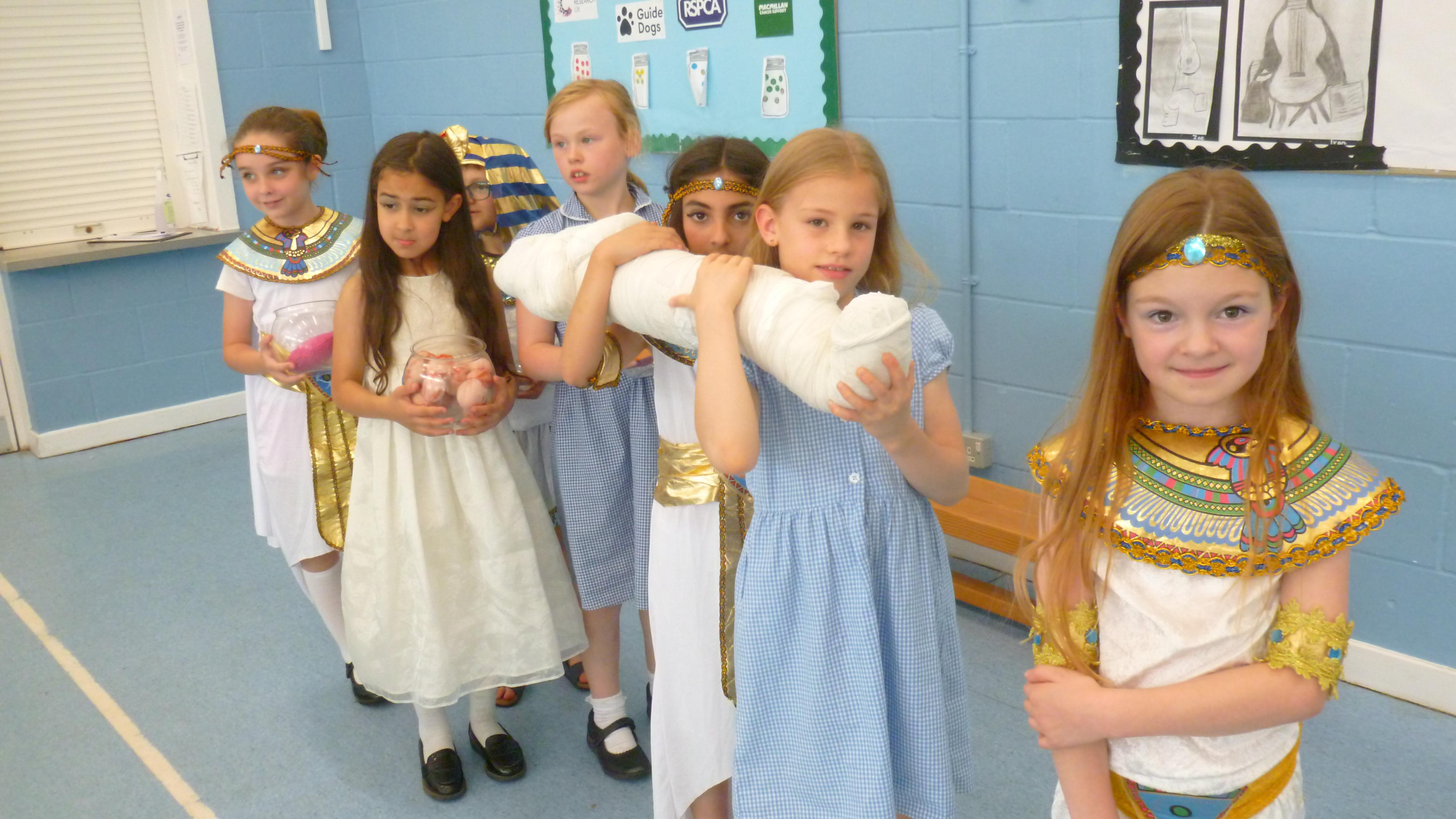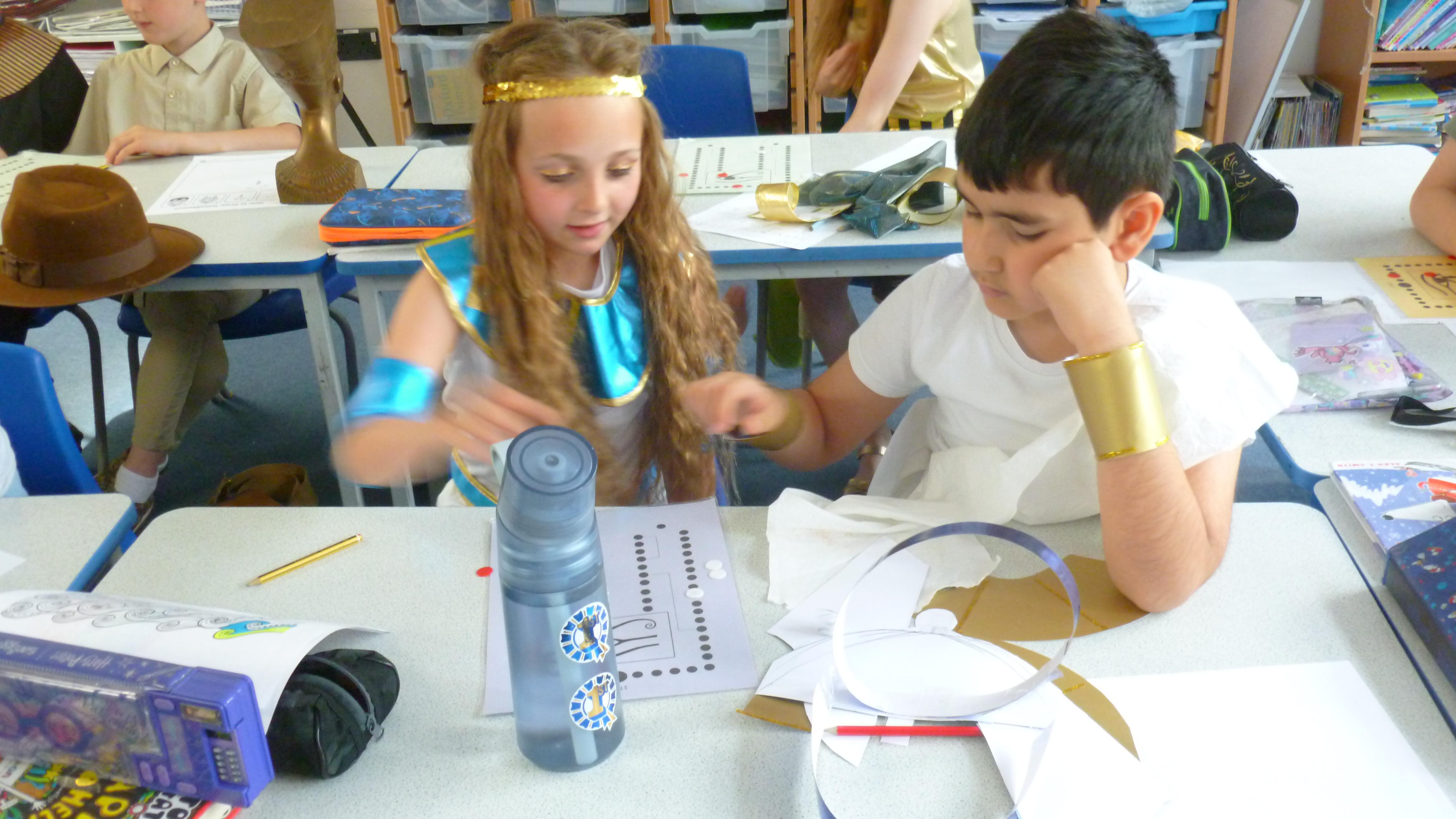 First the children heard all about the beginnings of Ancient Egypt, including fascinating facts about the pharaoh and gods and goddesses. They then enjoyed a fantastic fact-finding quiz, working with a partner. There were lots of hands-on activities including some ancient maths! This involved deciphering some tricky questions in the form of hieroglyphics and then measuring with cubits. The children also enjoyed the ancient game of Hounds and Jackals which is a bit like Snakes and Ladders. After lunch, there was lots of interaction and role play while performing mummification and re-enacting a pharaoh’s funeral. The day concluded with the story of Cleopatra, again with lots of fine acting from the children. This was a really amazing way to finish off our brilliant topic!