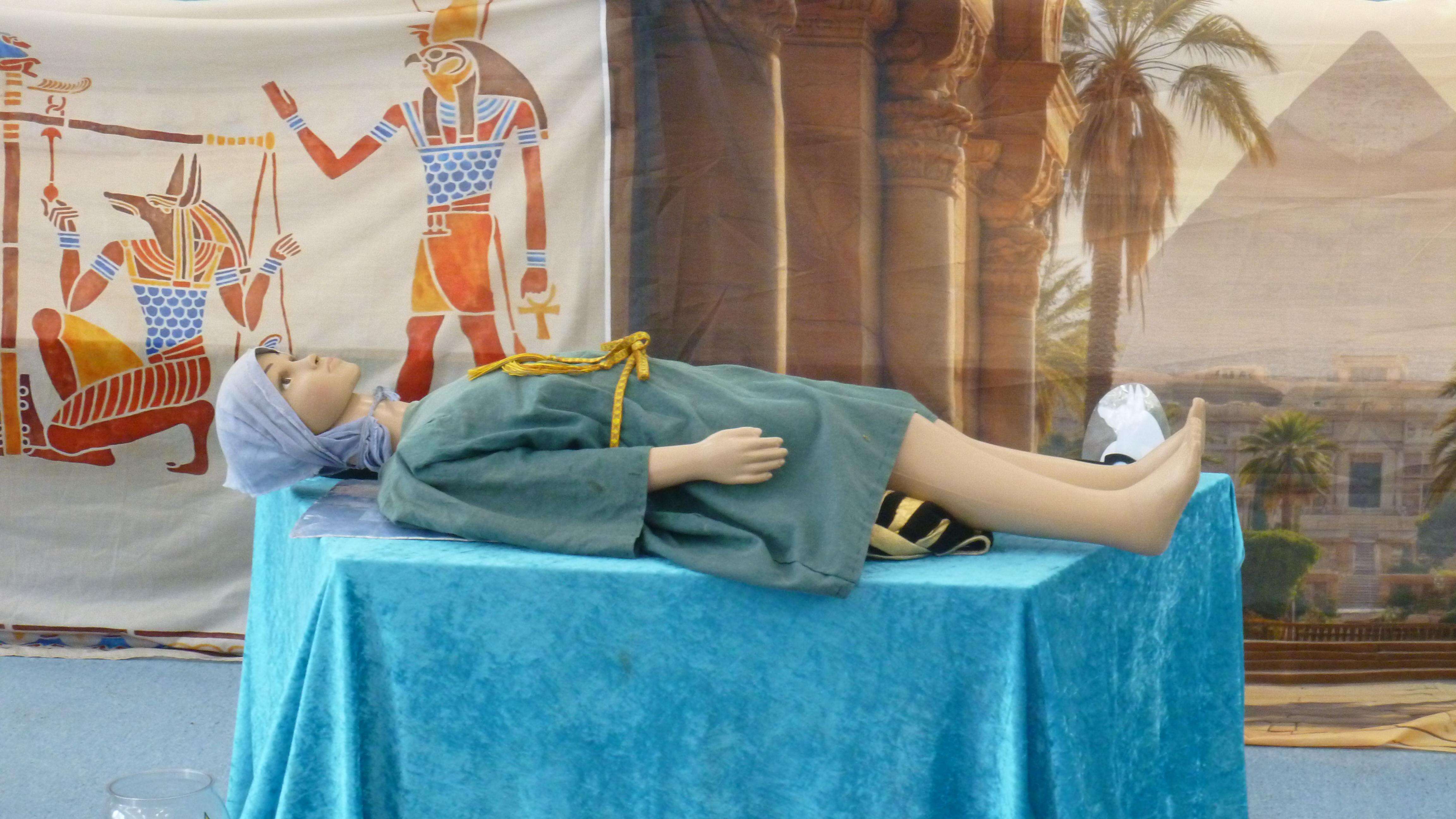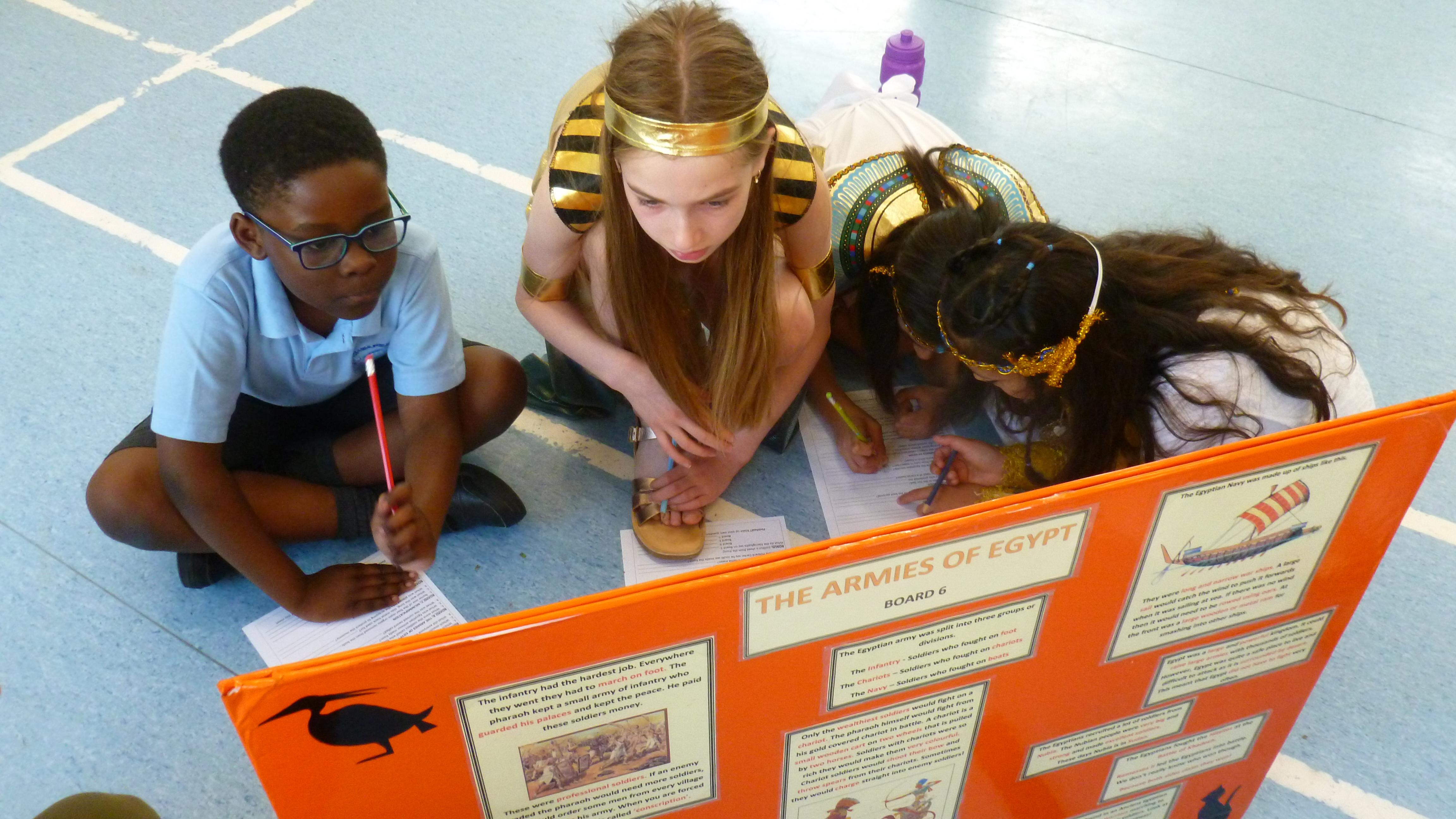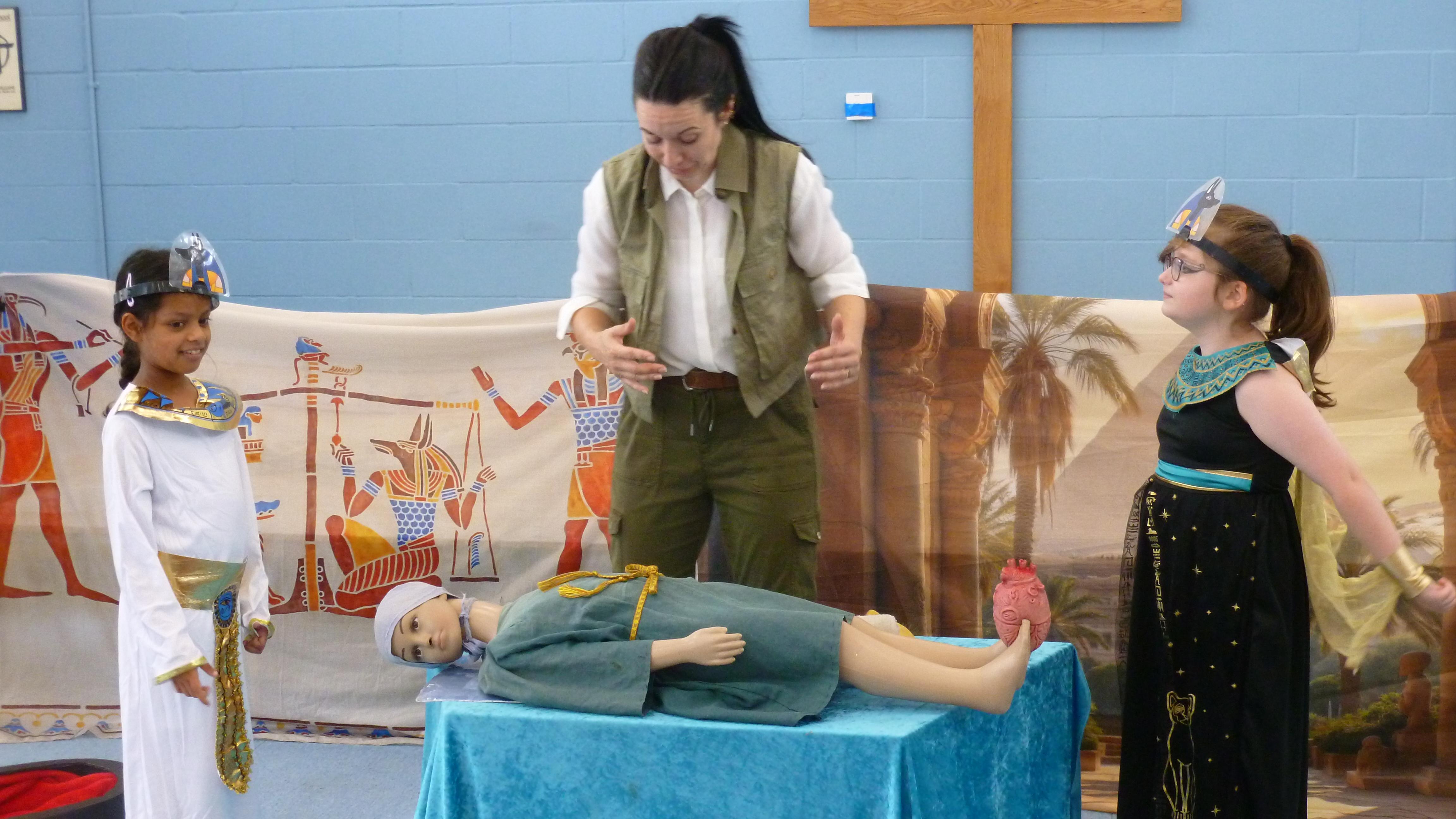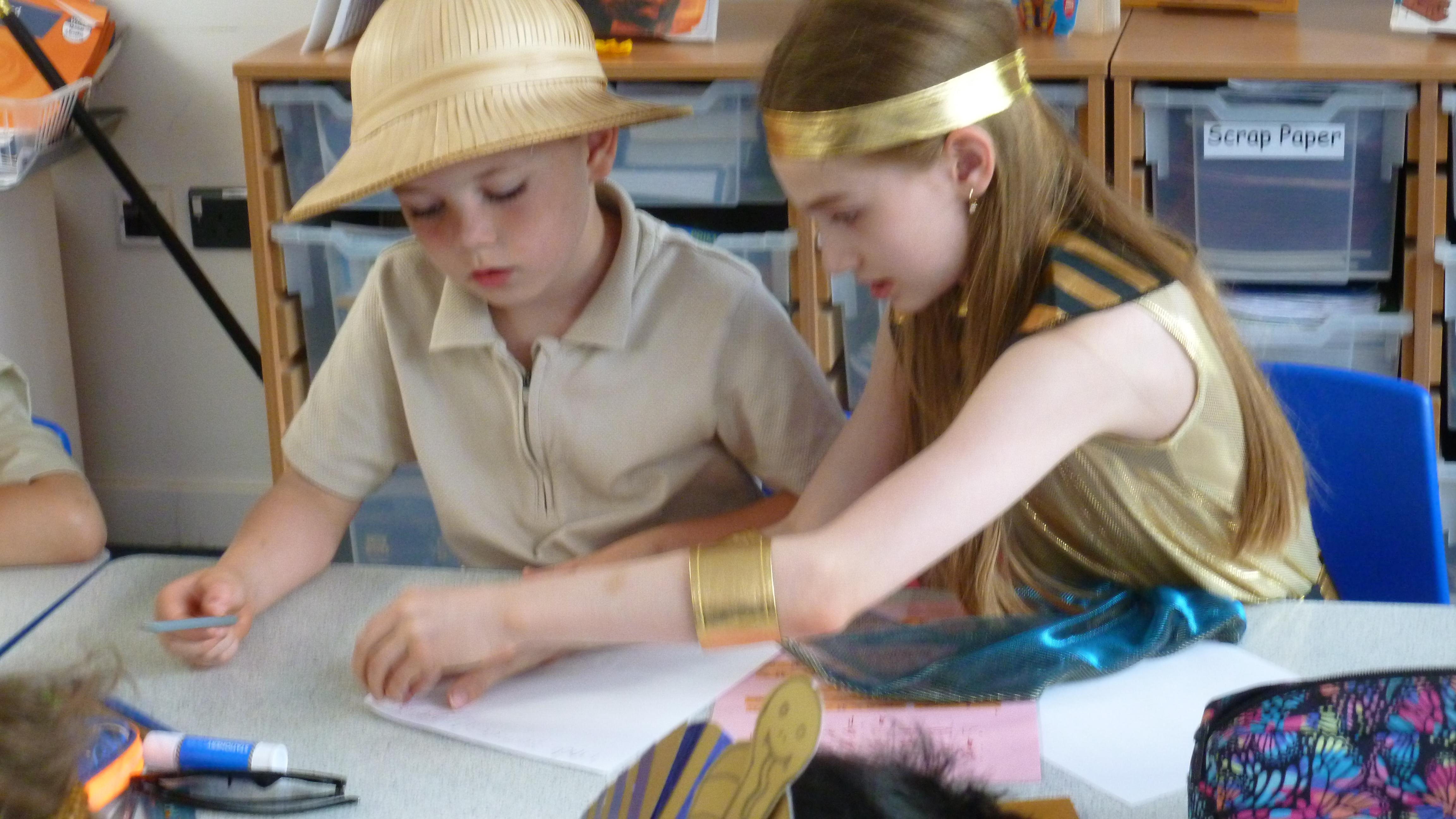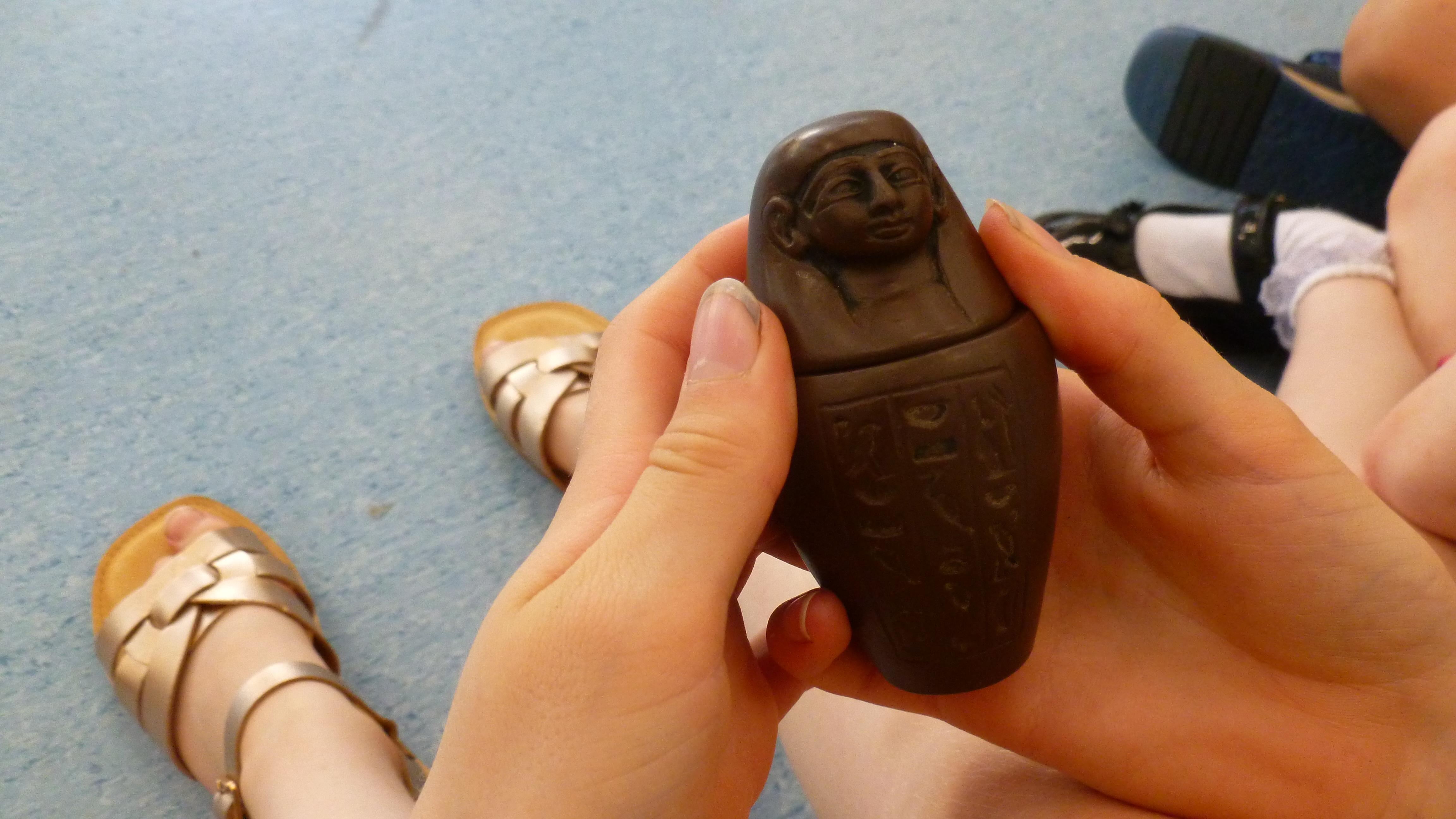 First the children heard all about the beginnings of Ancient Egypt, including fascinating facts about the pharaoh and gods and goddesses. They then enjoyed a fantastic fact-finding quiz, working with a partner. There were lots of hands-on activities including some ancient maths! This involved deciphering some tricky questions in the form of hieroglyphics and then measuring with cubits. The children also enjoyed the ancient game of Hounds and Jackals which is a bit like Snakes and Ladders. After lunch, there was lots of interaction and role play while performing mummification and re-enacting a pharaoh’s funeral. The day concluded with the story of Cleopatra, again with lots of fine acting from the children. This was a really amazing way to finish off our brilliant topic!