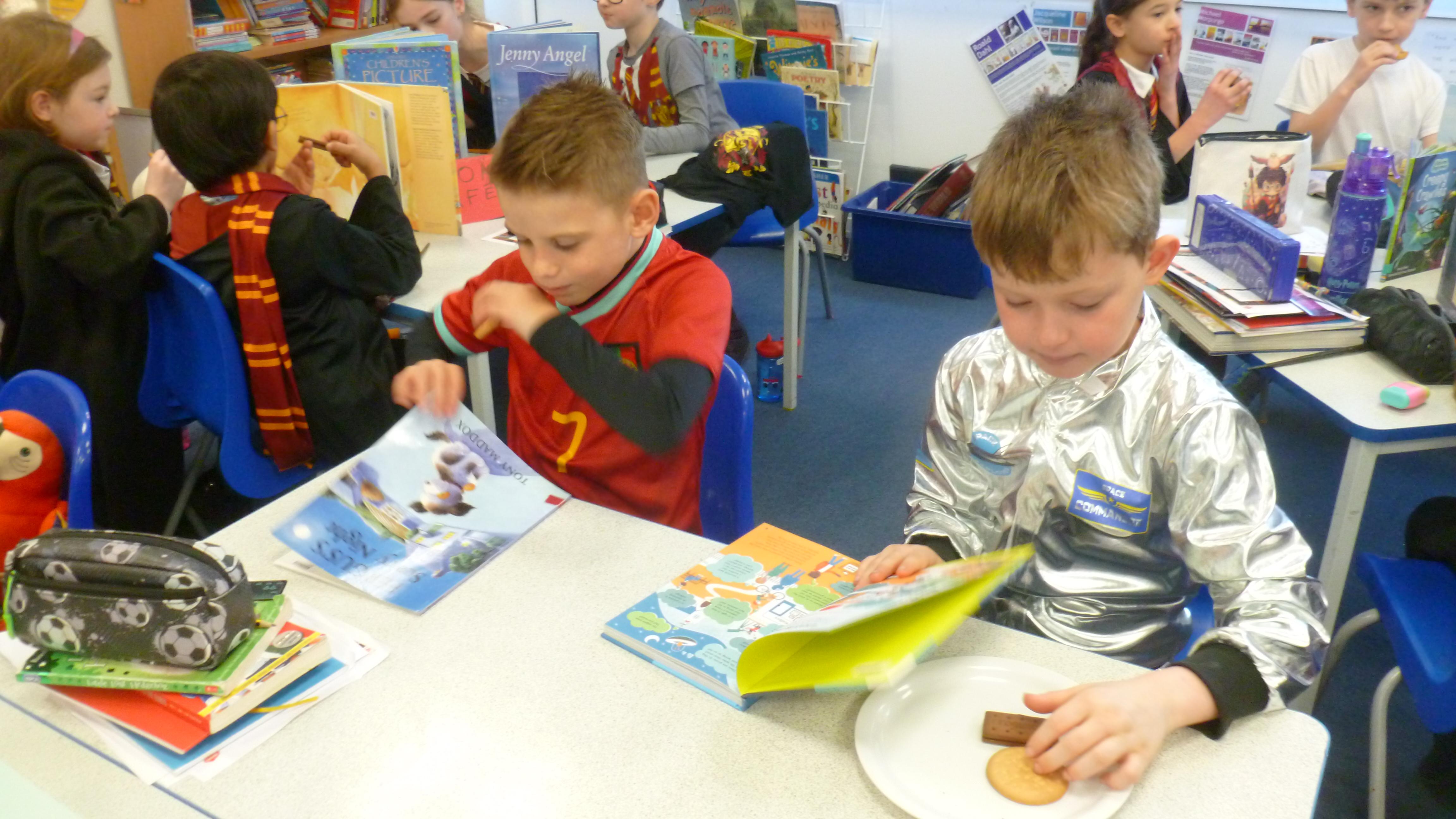 As ever in Nightingale Class, we really got into the spirit of World Book Day. Thank you so much to all parents, carers and children for making such a wonderful effort with costumes! Appearing exclusively were book characters such as: Harry Potter, Hermione and a very dapper Willy Wonka, Also featured were: a couple of BFGs, Gangsta Granny, Dogman, The Worst Witch, Spaceboy, a sneaky burglar, a fabulous unicorn, Isadora Moon, Danny the Champion of the World, a soldier and some footballers. An adorable Paddington was also in attendance! The children enjoyed lots of fun book-related activities, including watching a BBC Live Lesson. The Year 6 children paired up with the Year 3 for some paired reading which was much enjoyed. The children also enjoyed the ‘Book Café’, where the children sat together at tables with some books from the library, both fiction and non-fiction. A couple of biscuits were nibbled on during this too! It was fantastic to see the children finding pleasure in books that they may not yet have experienced.