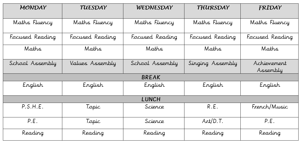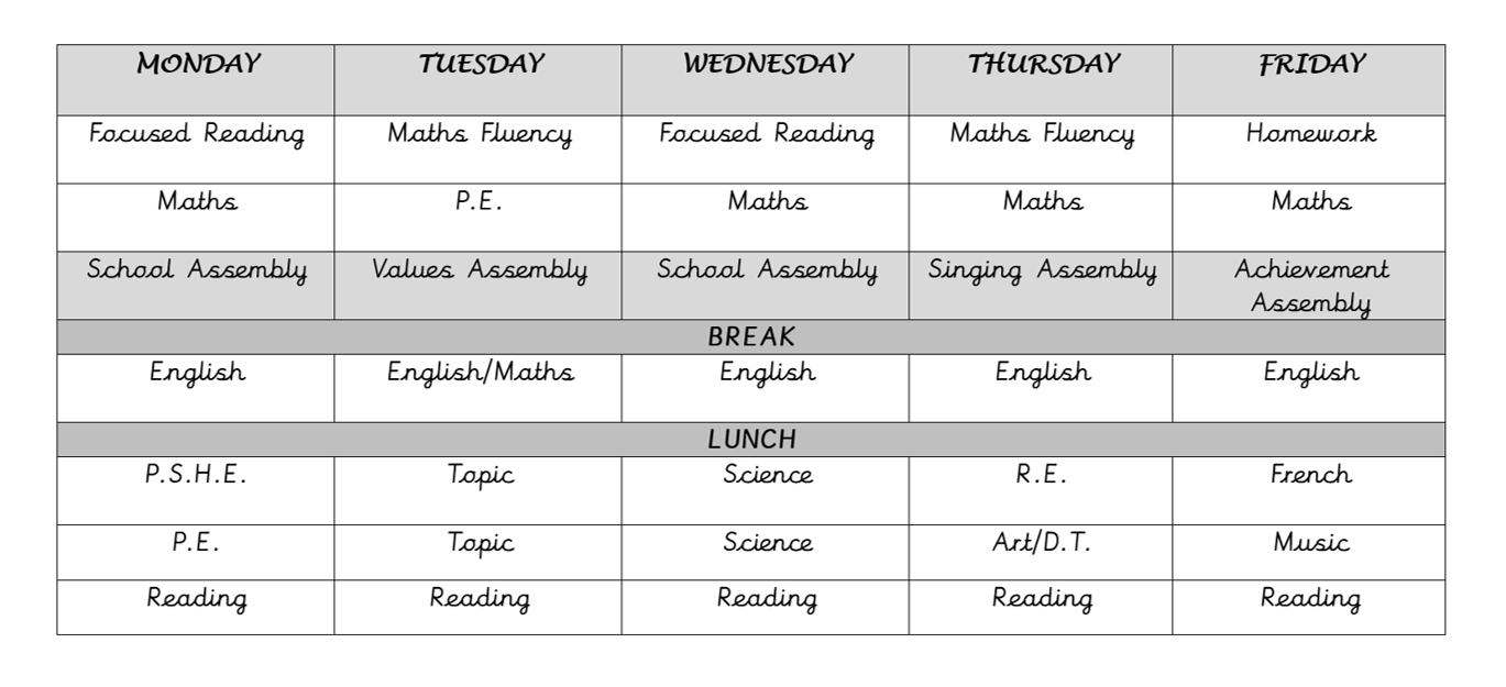 English/topic and maths homework will be set on a Friday and will be due in the following Friday, ready to be marked in class, going through any issues that have arisen.