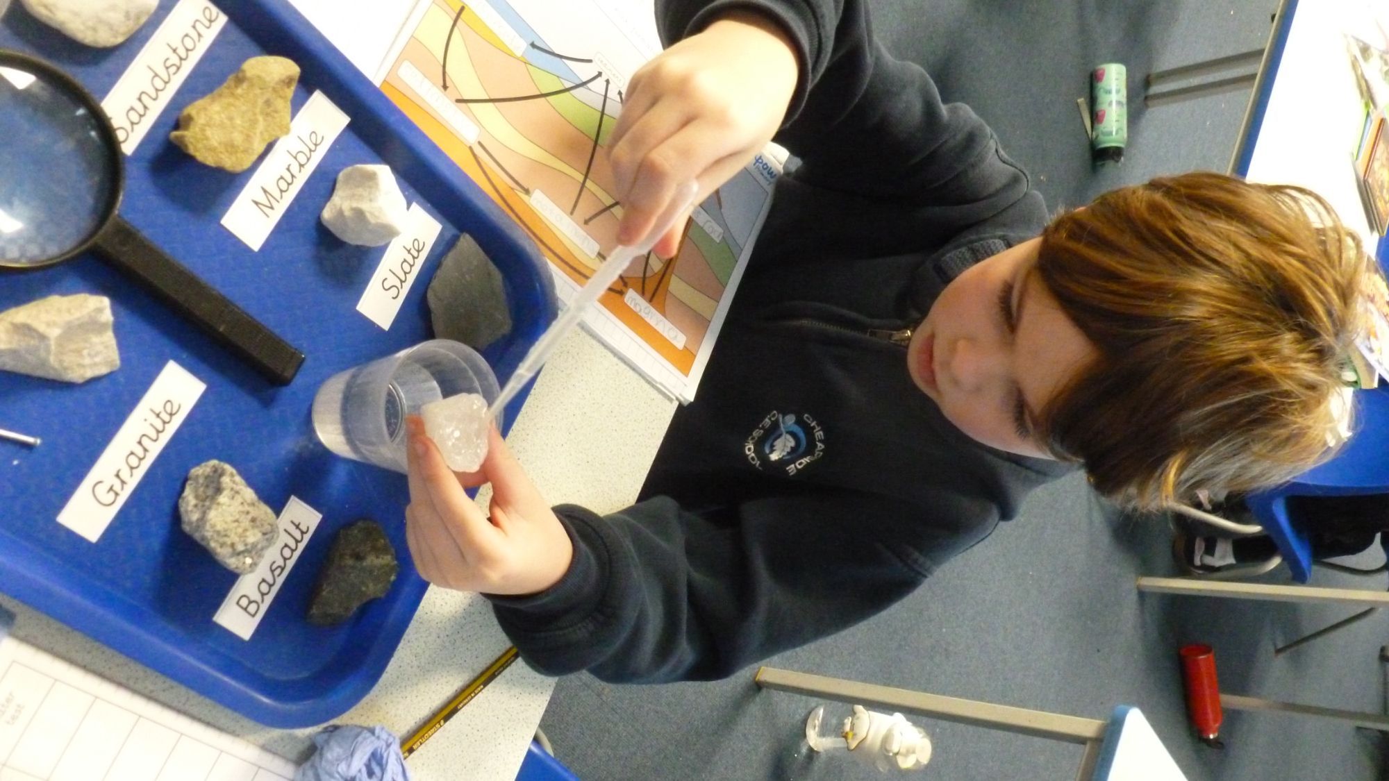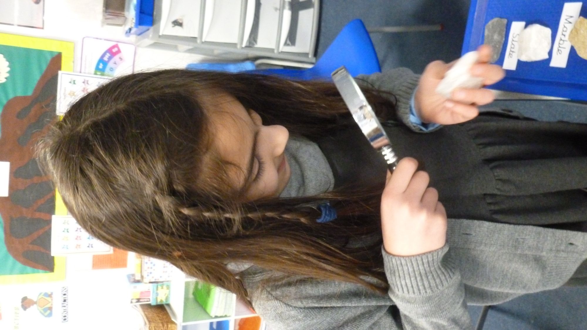 We embarked on a full-scale investigation of grouping Rocks according to their properties. Before starting the experiment, the children made predictions and thought about their method. We also talked about what a 'Fair Test' is. They then worked in small groups with 8 different types of rock to determine the appearance, the permeability, the durability (using vinegar to replicate acid rain) and the hardness of each one (by scratching the surface with a nail). The children did really well learning all this new scientific vocabulary! Please enjoy the slideshow of photos below to see how brilliantly the children worked together in their groups, as they made their discoveries!